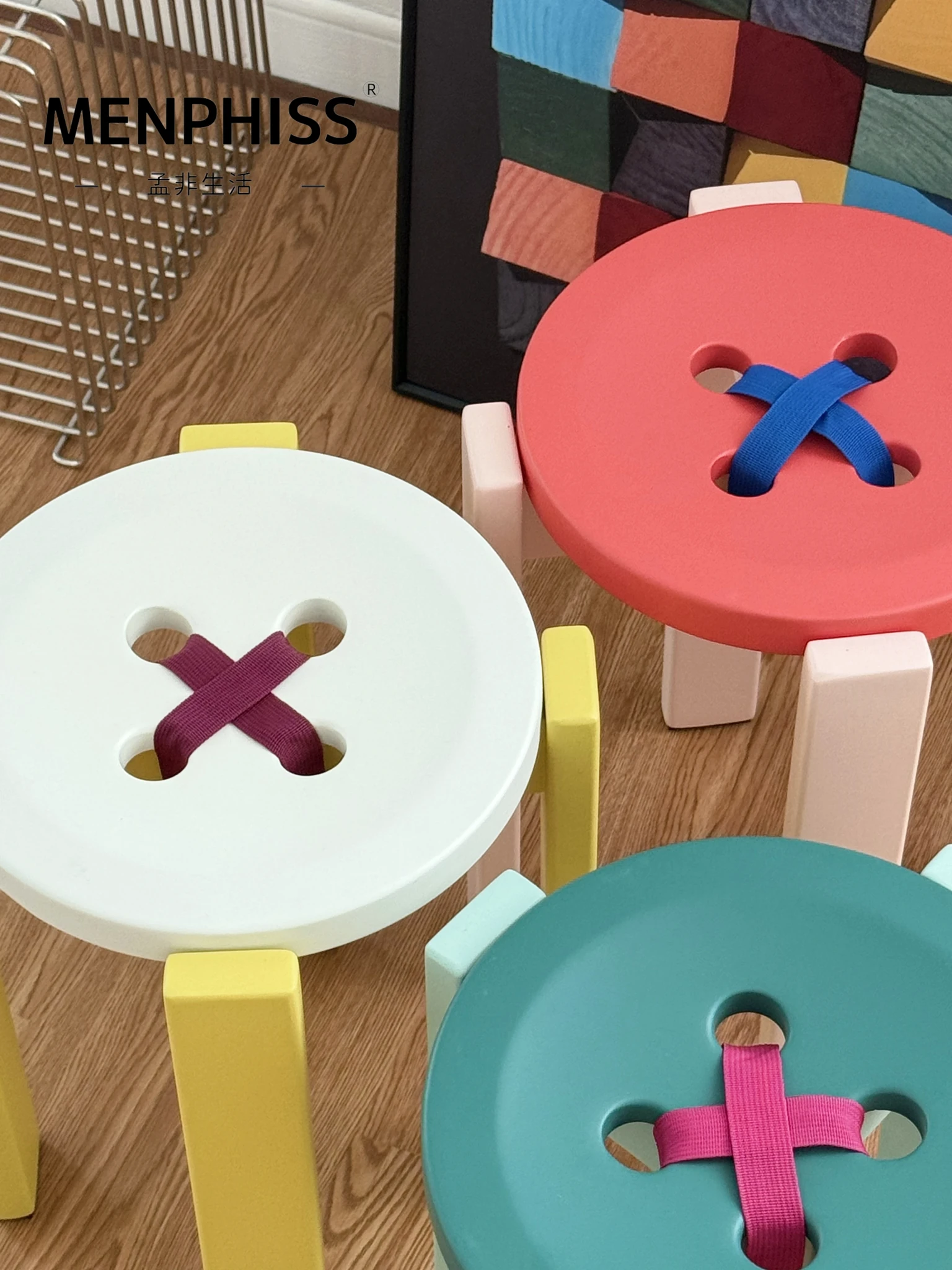 孟非デザインの木製クリエイティブボタンスツール - スタッキング可能な多用途ダイニングチェア!おしゃれで実用的なインテリアアイテム、あなたの生活空間を明るく彩ります。