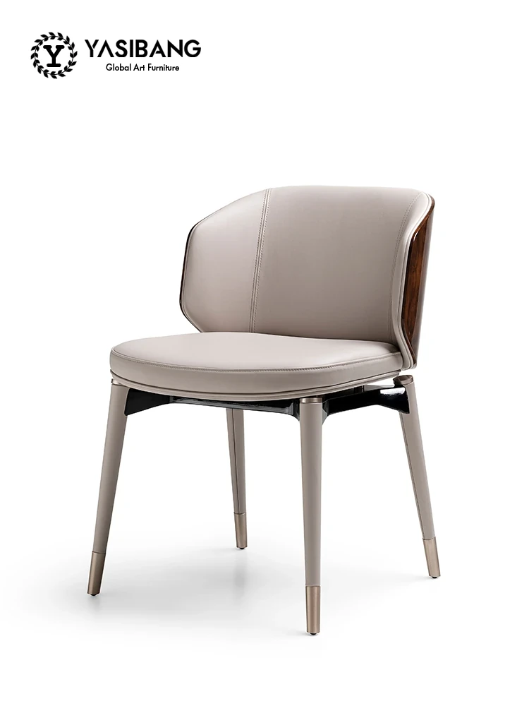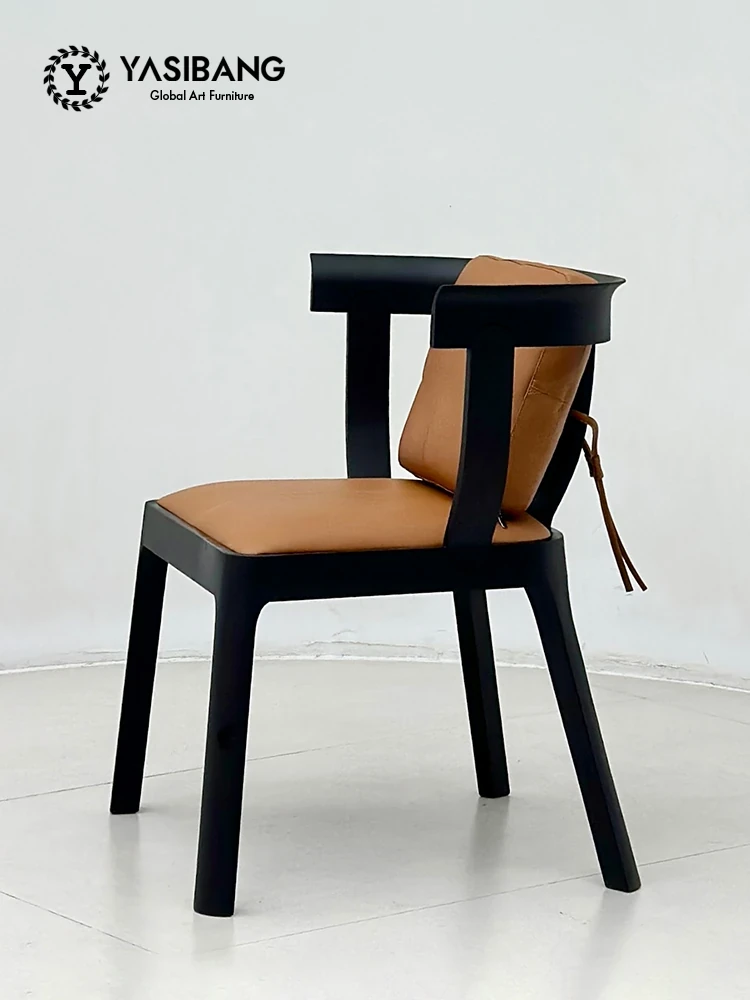 イタリアンデザイン本革ダイニングチェア|スタイリッシュなリビング用ラウンジチェア|シンプルでラグジュアリーなレザー製|ヴィラにぴったりな背もたれ付きメイクアップチェアで、優雅なひとときをお楽しみください。