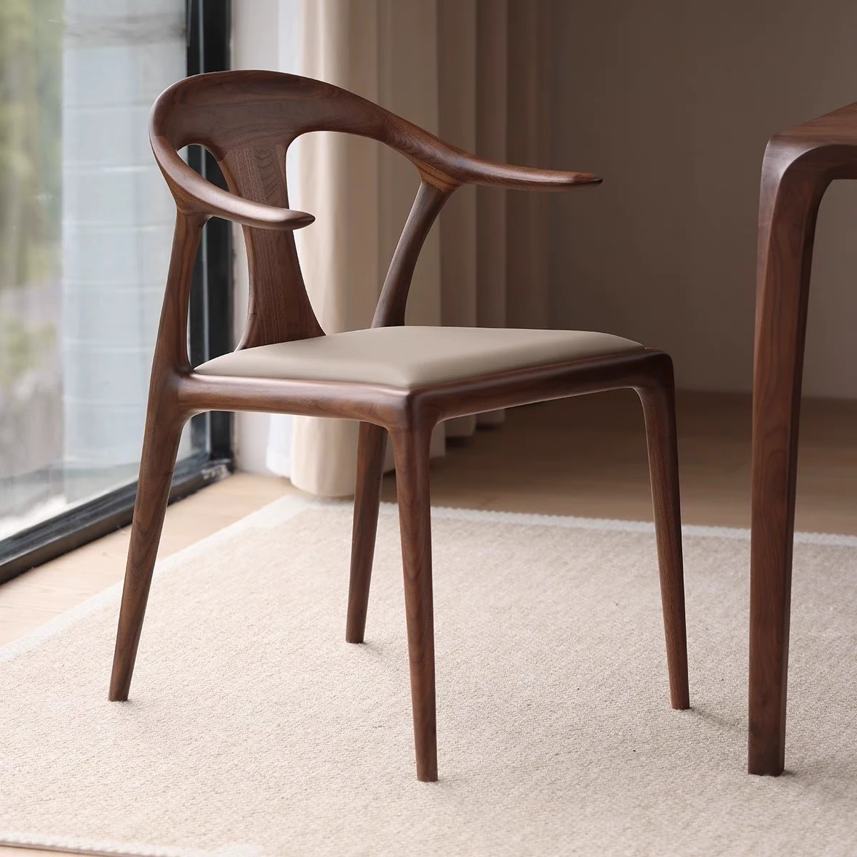 北米産ブラックウォールナットのダックビルチェア、ホワイトアッシュ無垢材の中華風ダイニングチェア、ラバーウッド製のリラックスバックレスト付きアームチェア、書斎にも最適!豪華でスタイリッシュなデザインで、あなたの空間を引き立てます。