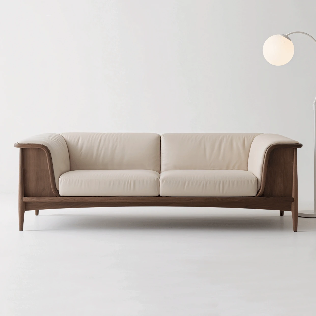 Modern Minimalist Zen-Style Sofa in White Ash Wood with Direct Layout - Luxurious Living Room Furniture Crafted from North American Walnut Hardwood