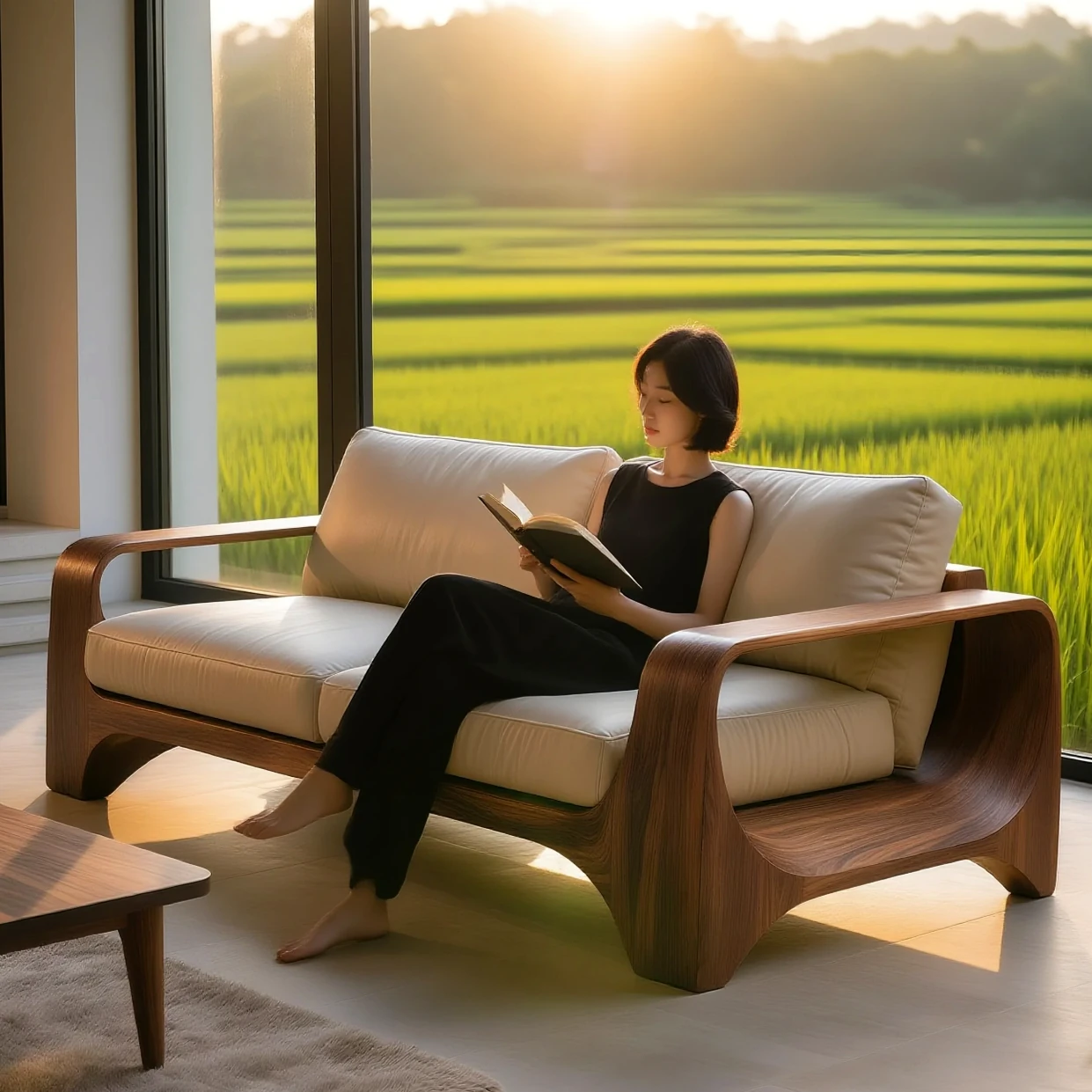 Elegant Zen-Style Black Walnut and Ash Wood Sofa for Home, Luxury Living Room, Hotels, and Offices - Perfect High-End Furniture Choice