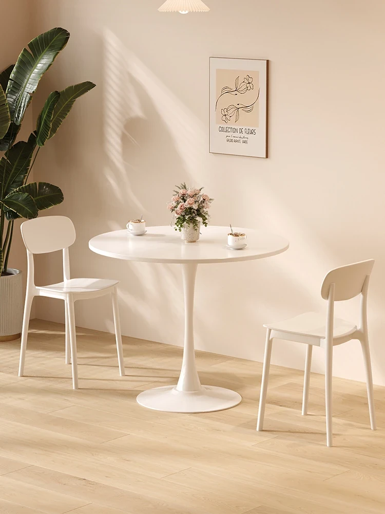 Minimalist Round Coffee Table Set - Tulip White Balcony Leisure Dining Table and Chairs for Home, Perfect for Meetings and Reception