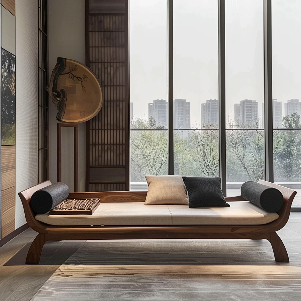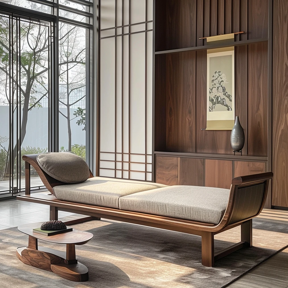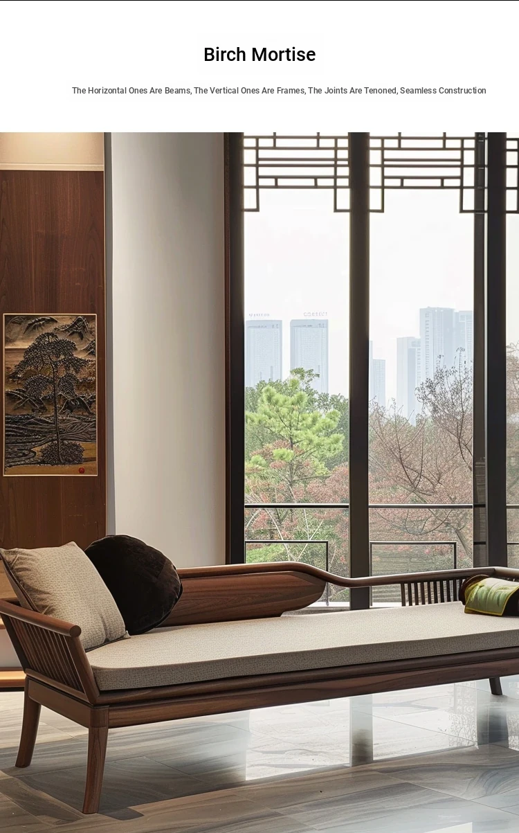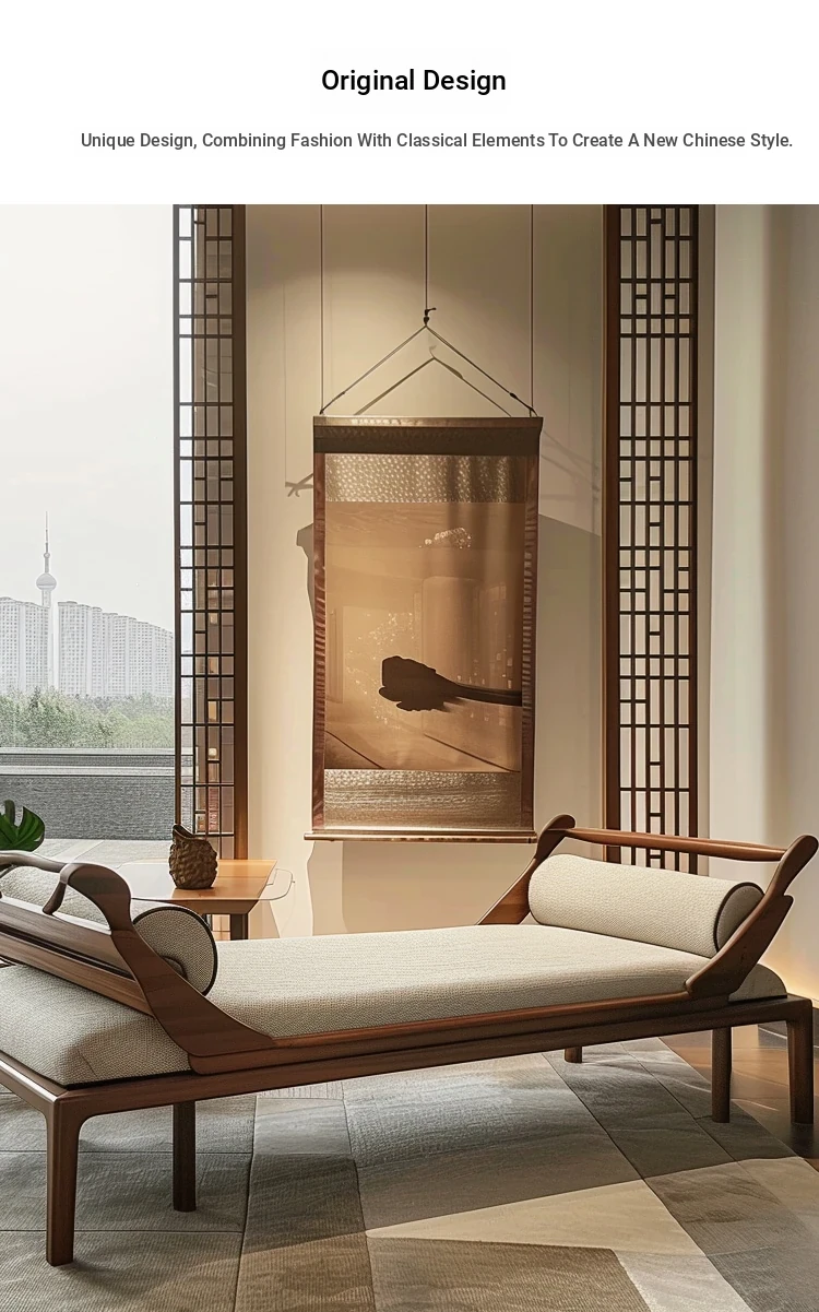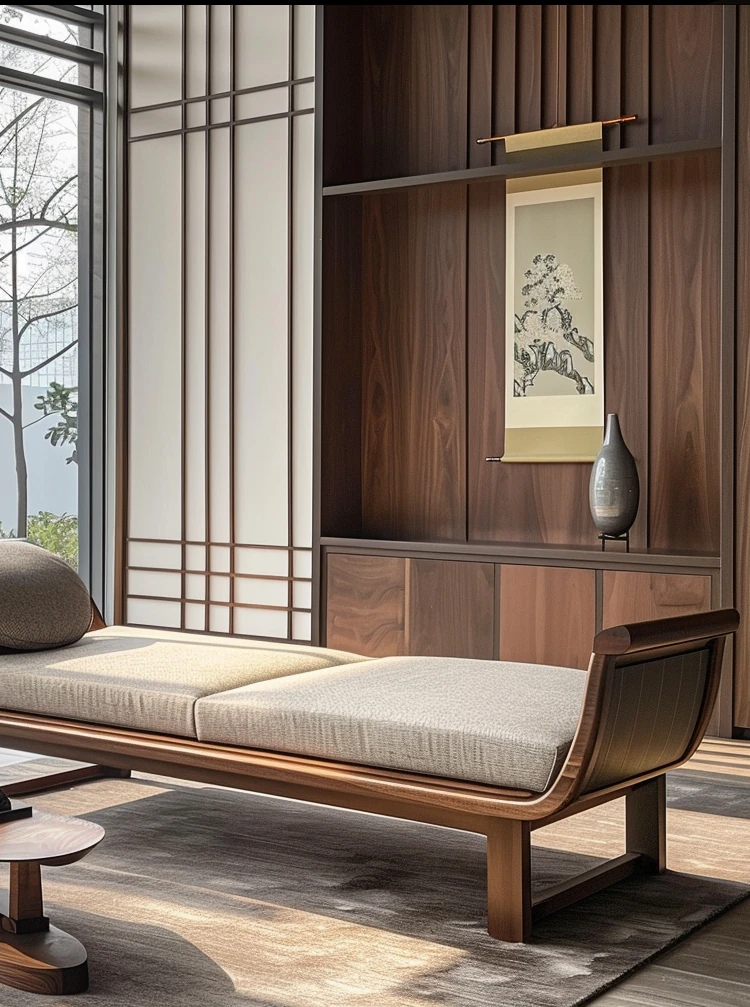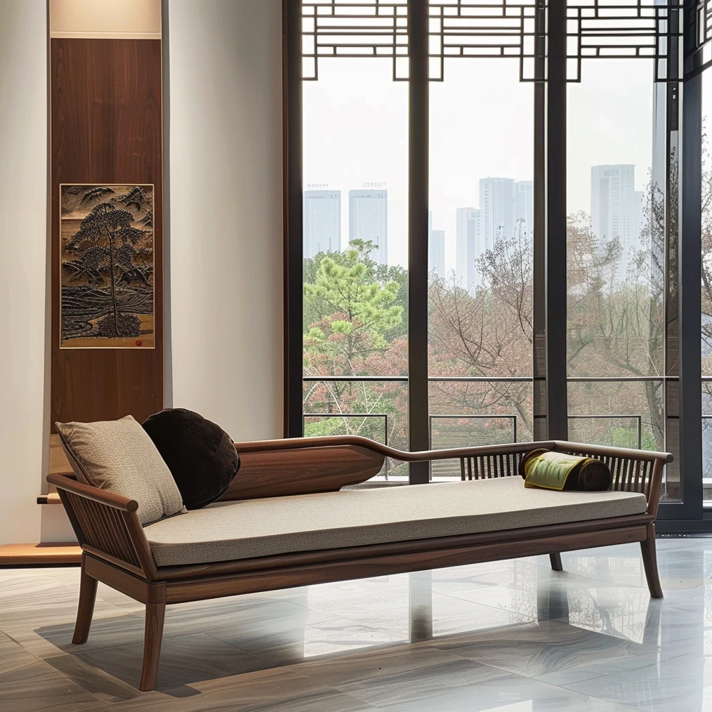 2025 Premium North American Black Walnut Furniture - Elegant New Chinese Style Lounger Bed for Modern Offices, Hotels, and Guesthouses - Luxurious Daybed for Comfort and Style