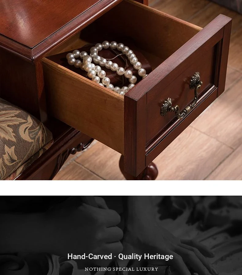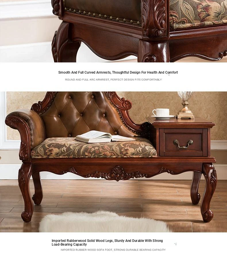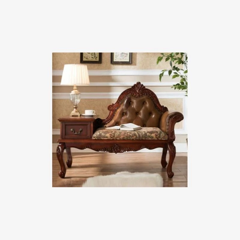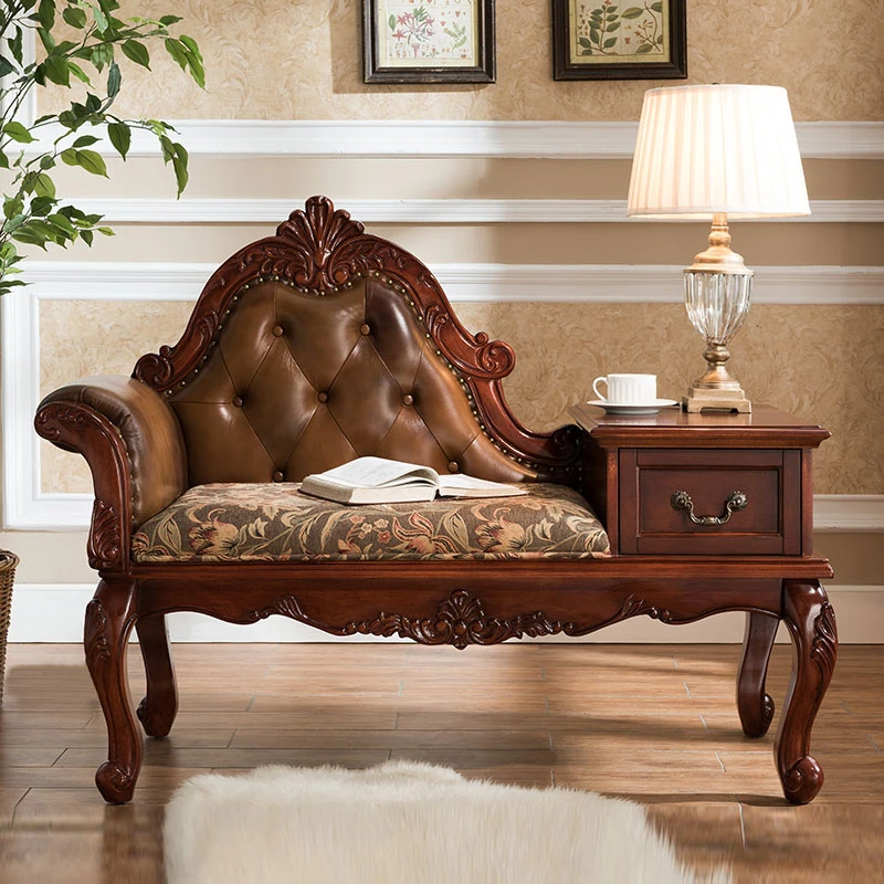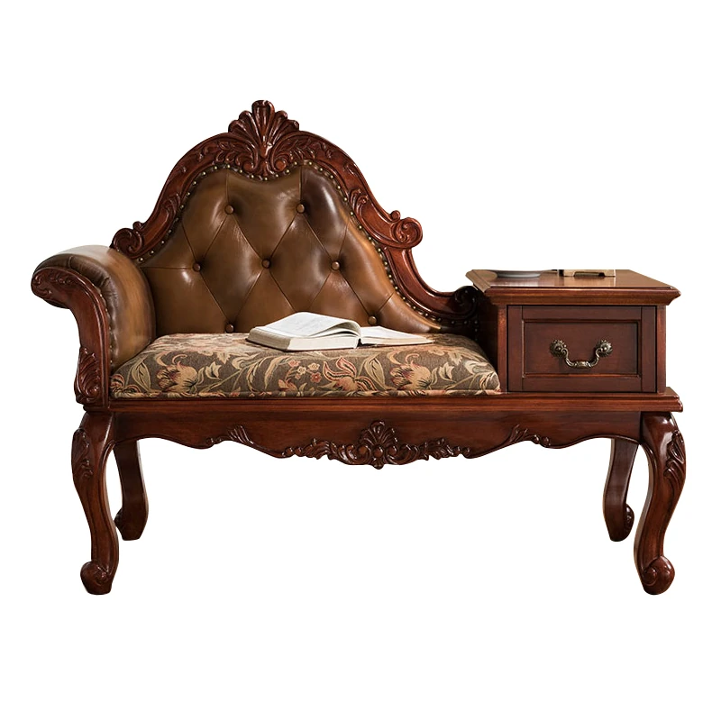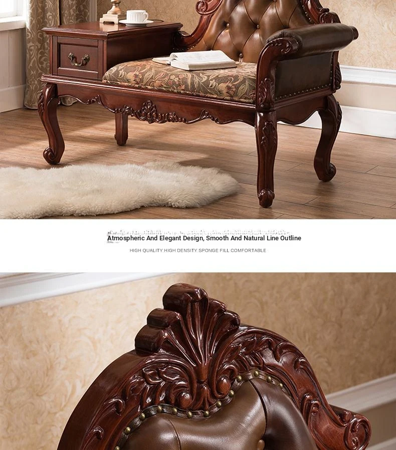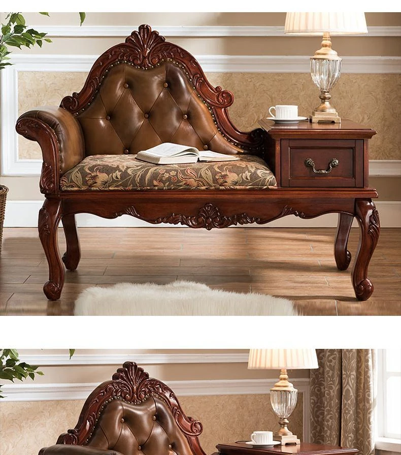 American Solid Wood Telephone Chair - European Vintage Upholstered Chaise Lounge for Bedroom - Luxurious Leisure Chair - Elegant Beauty Couch