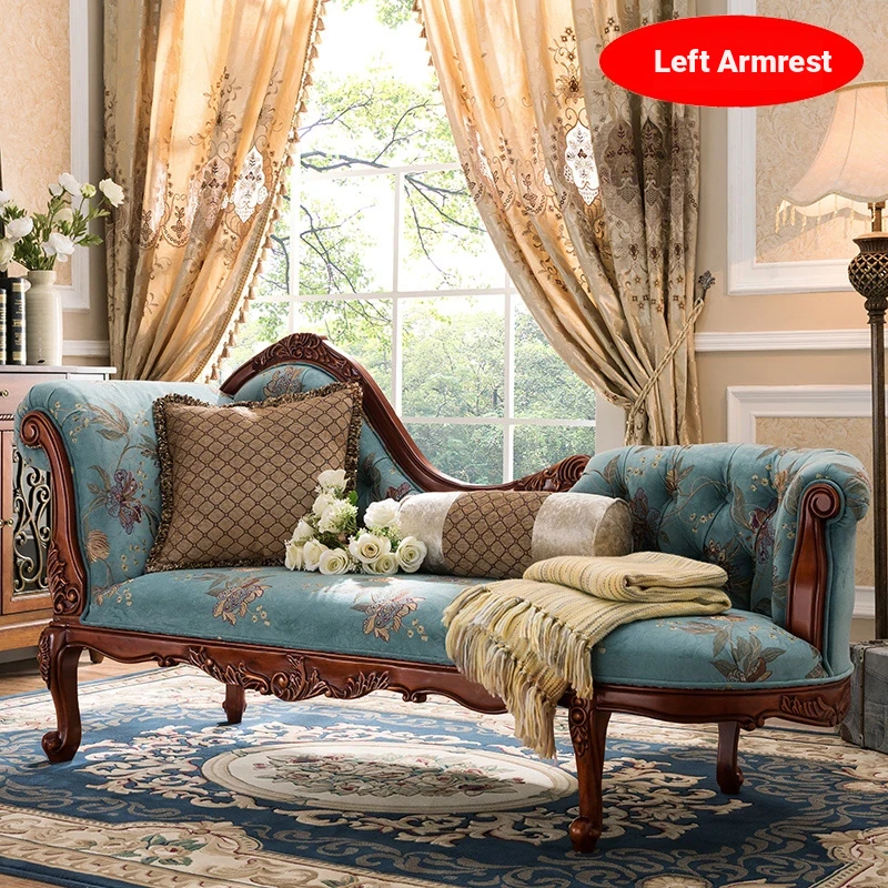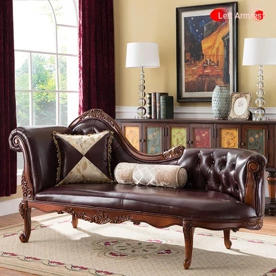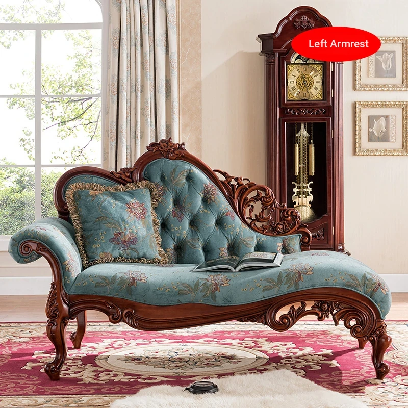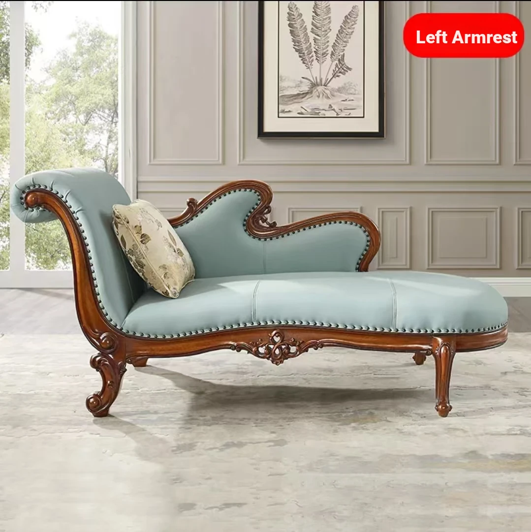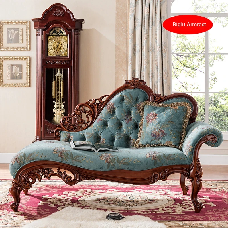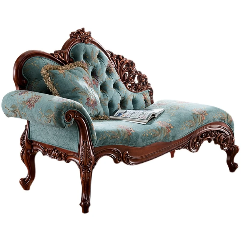 Classic American Style Solid Wood Chaise Lounge - Elegant Single Sofa for Hotels, Bedrooms, and Balconies - Perfect Blend of Luxury and Comfort for Relaxation