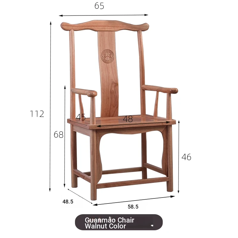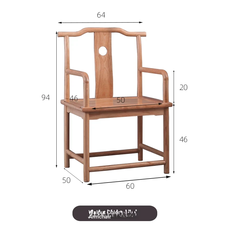 Classic Chinese Solid Wood Armchair - Elegant Walnut Taishi Chair with Armrests, Perfect for Tea Table, Minimalist Design for Your Home.