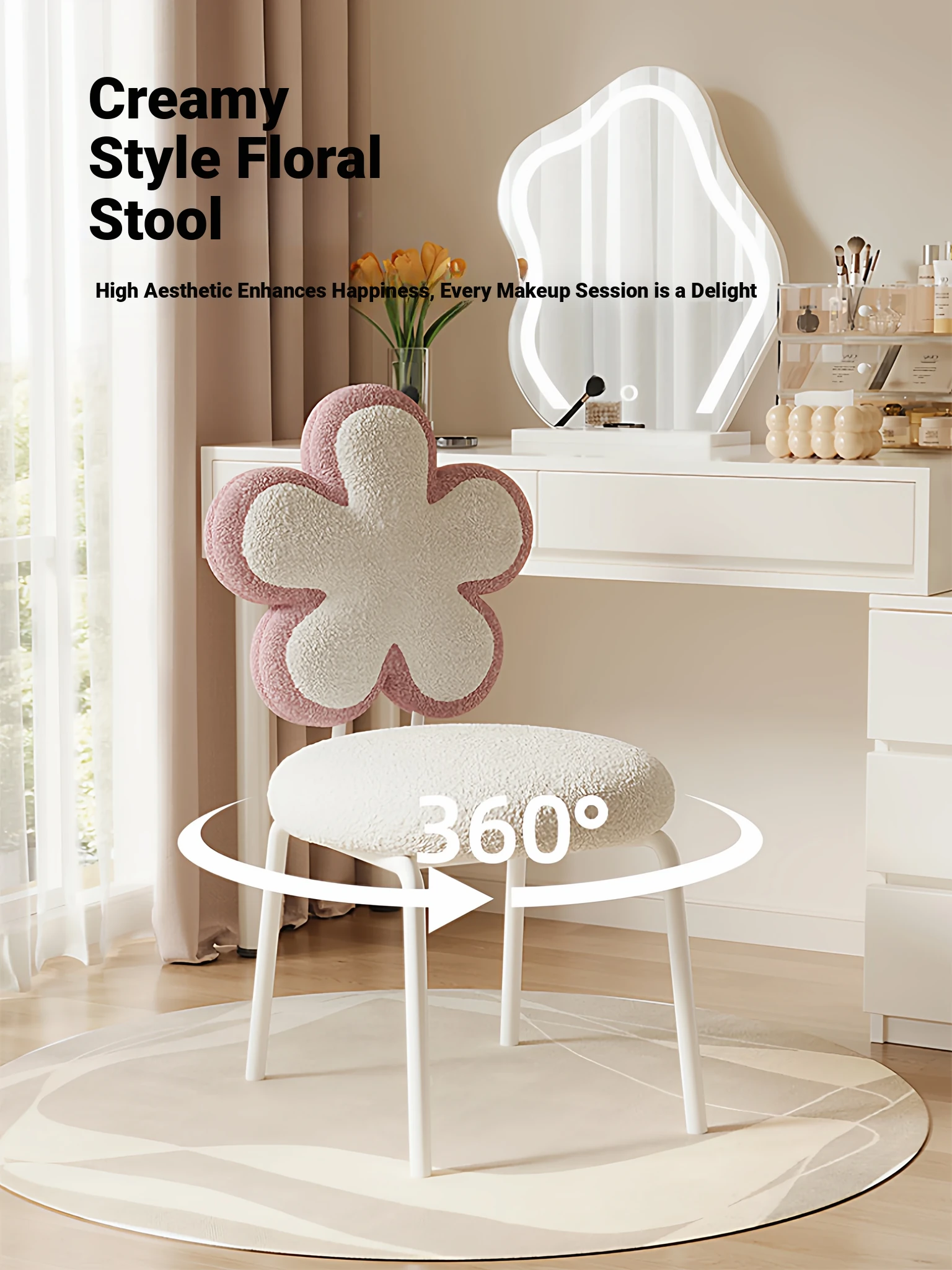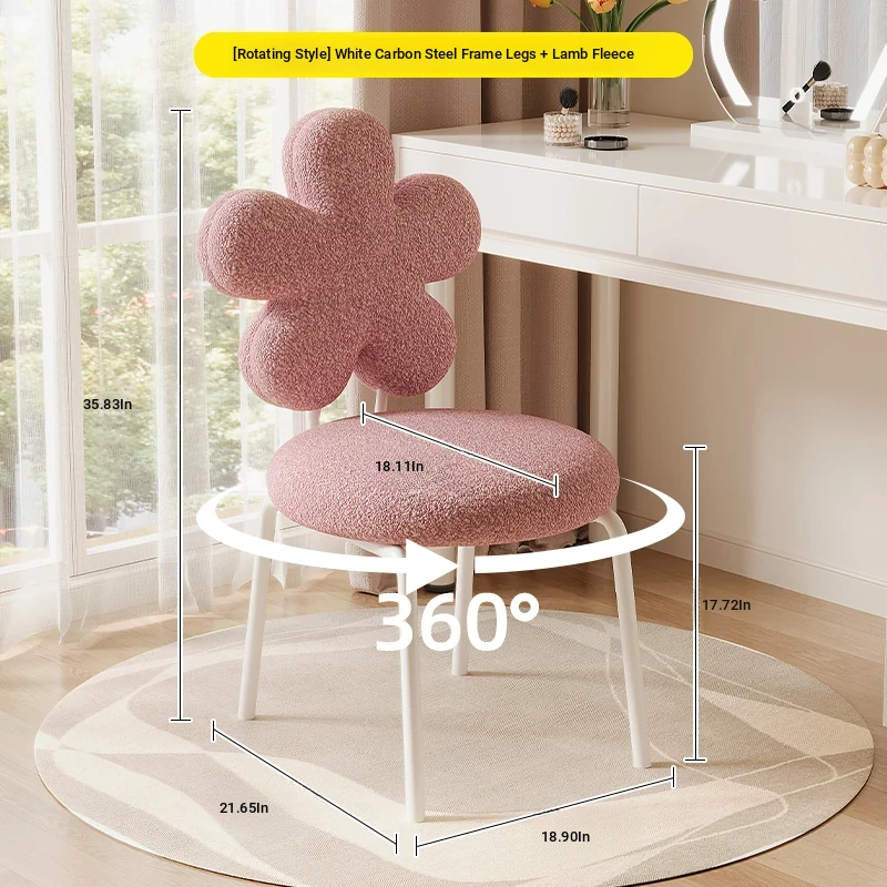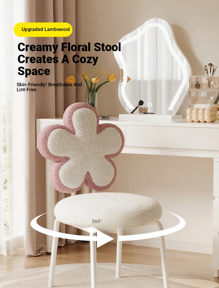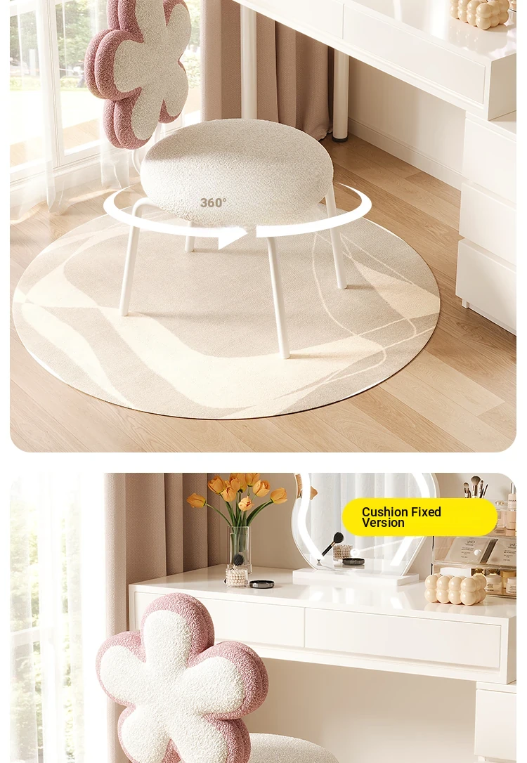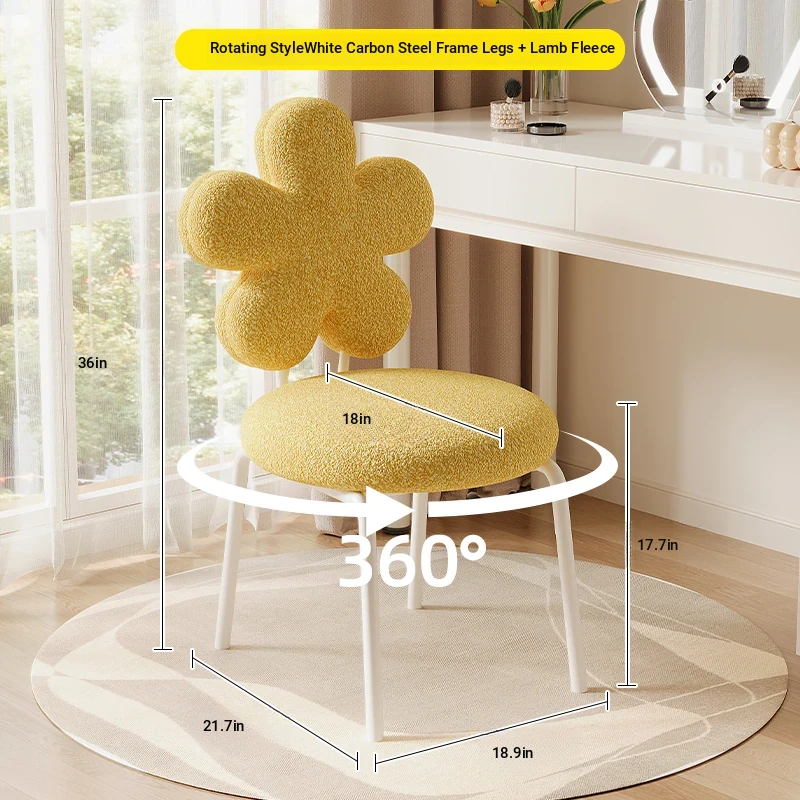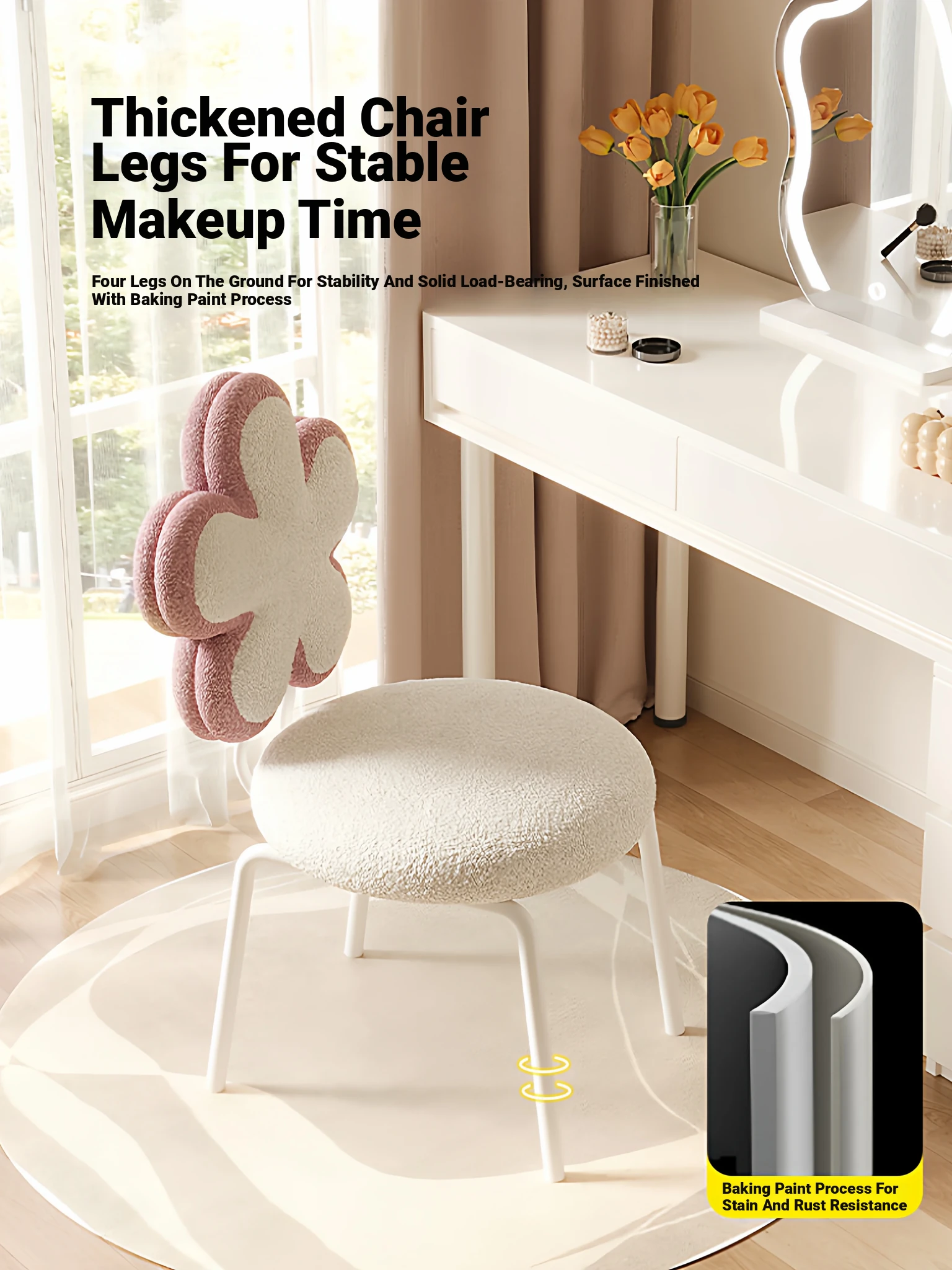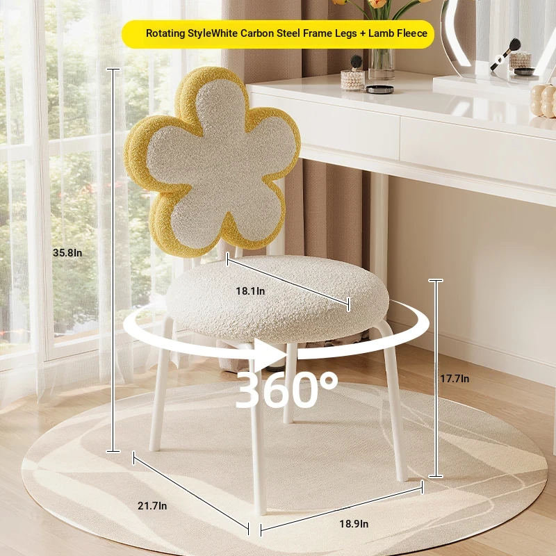 Creamy Vanity Table Stool - Elegant and Chic Makeup Chair for Girls' Bedrooms, Featuring a Stylish Rotating Design and Comfortable Backrest for Home Use. Perfect for Elevating Your Beauty Routine!