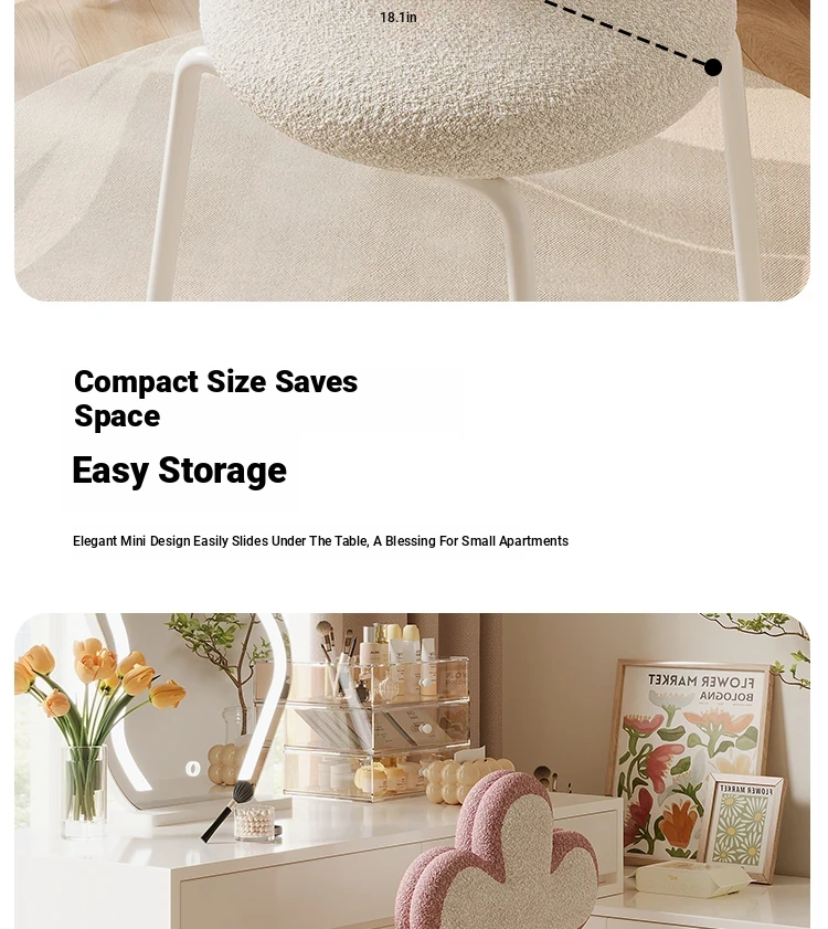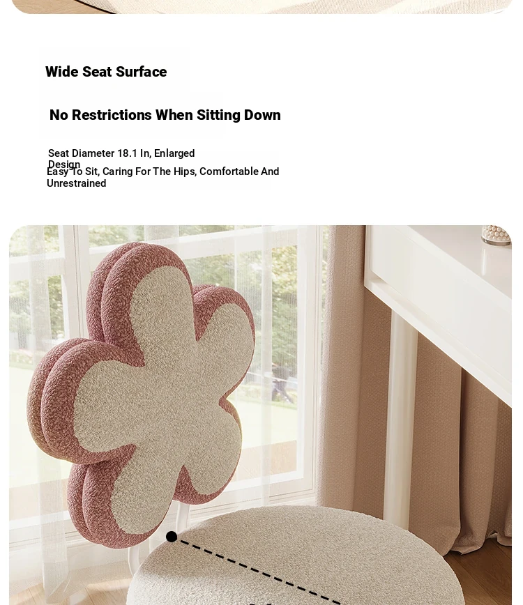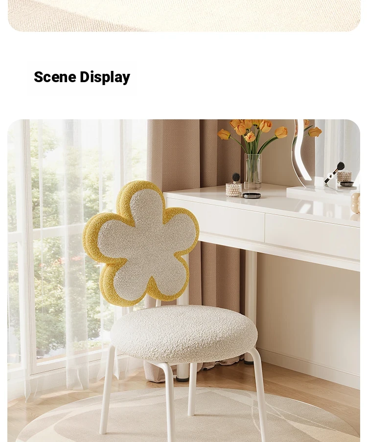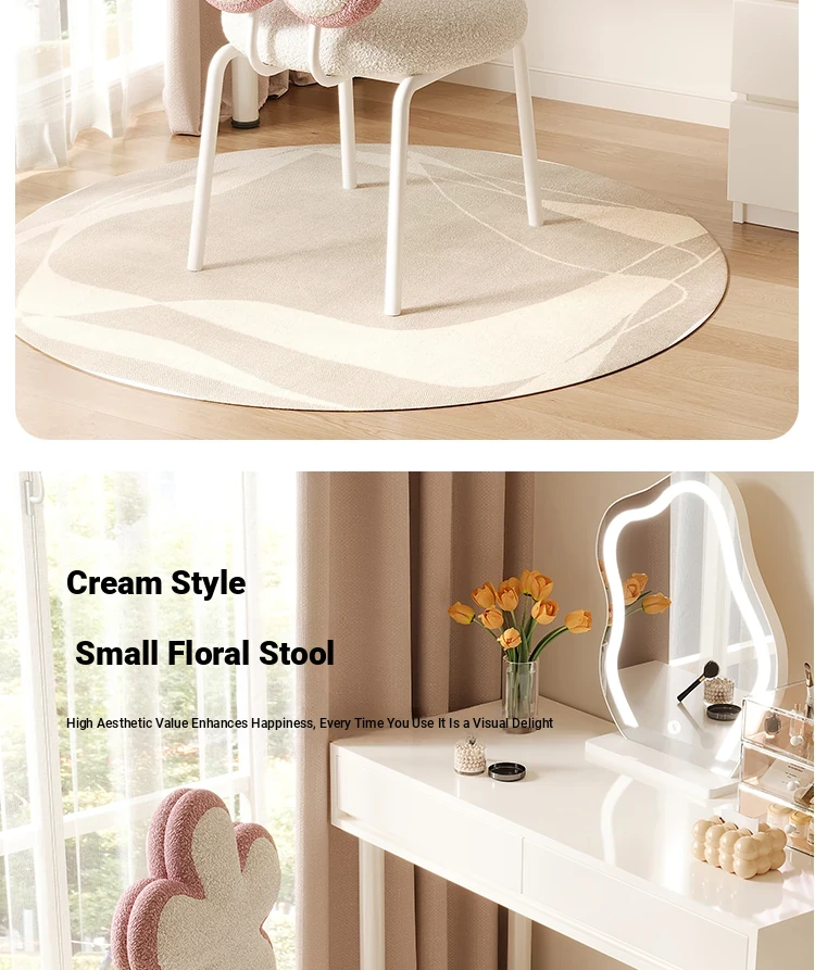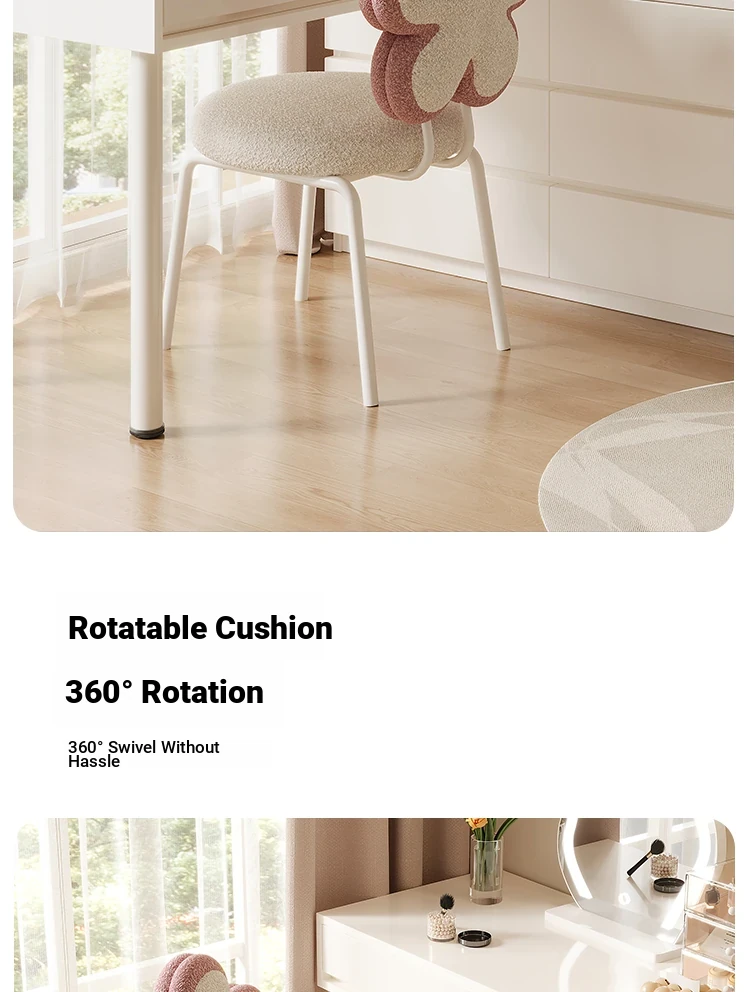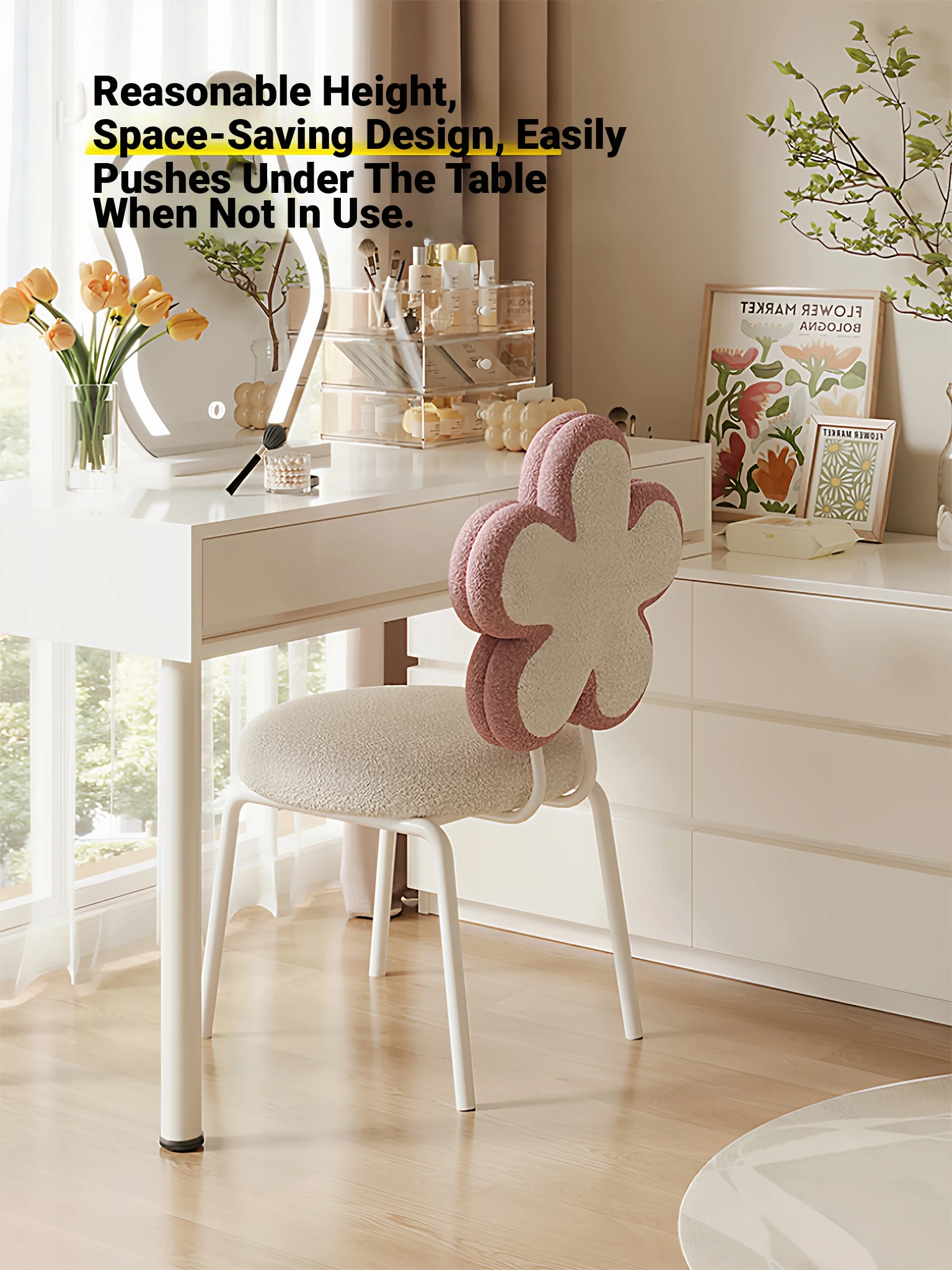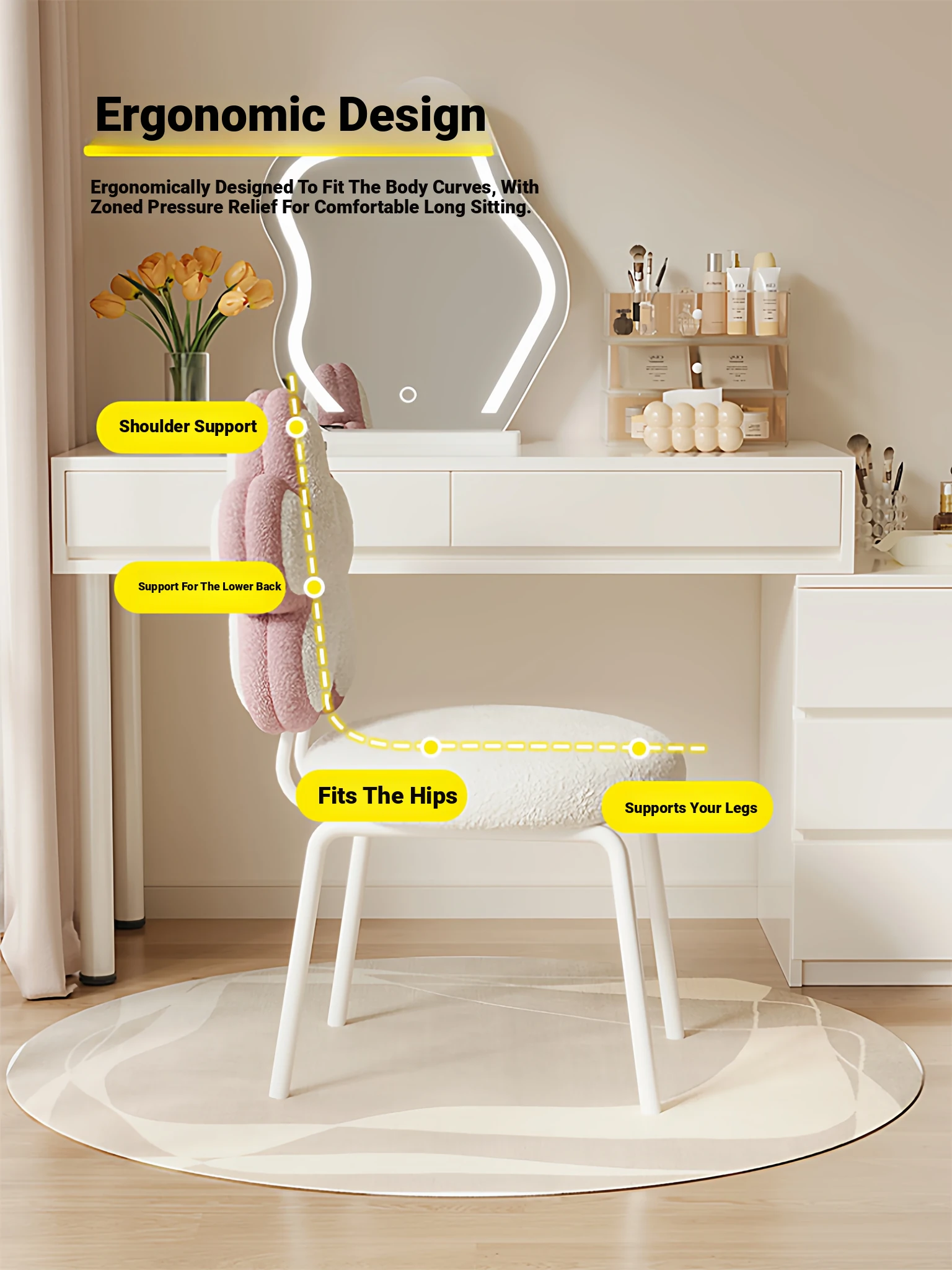 Creamy Vanity Table Stool - Elegant and Chic Makeup Chair for Girls' Bedrooms, Featuring a Stylish Rotating Design and Comfortable Backrest for Home Use. Perfect for Elevating Your Beauty Routine!