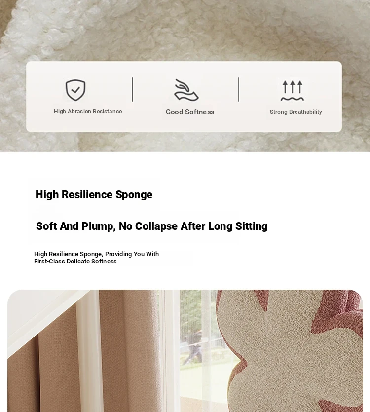 [01 Cream White Fixed] Comfortable Cashmere + Antirust Baking Paint Steel Frame + Powder-Free High Resilience Sponge