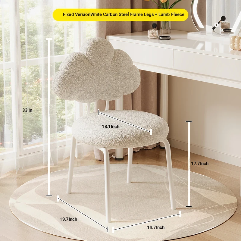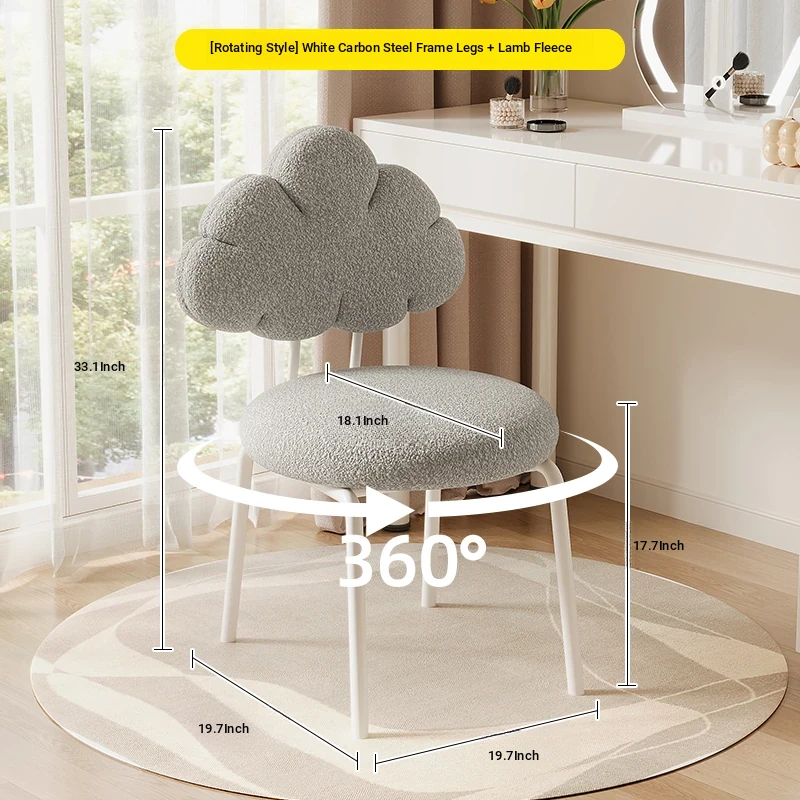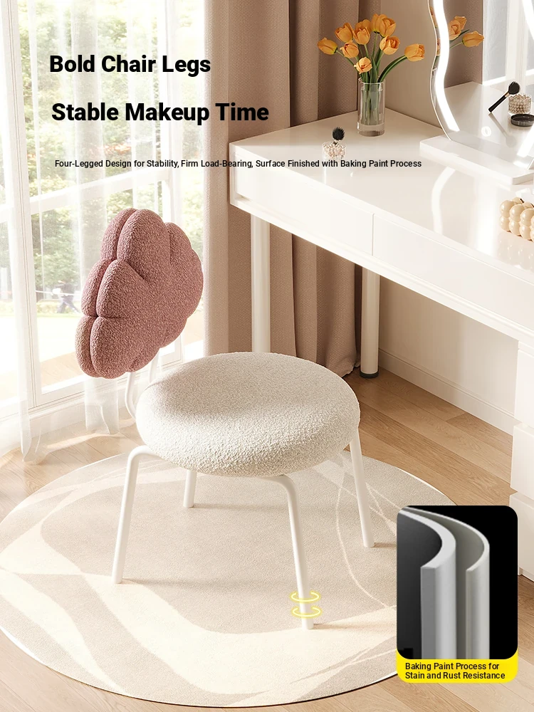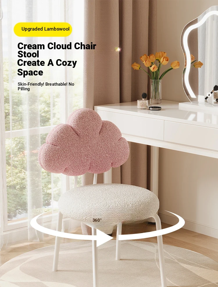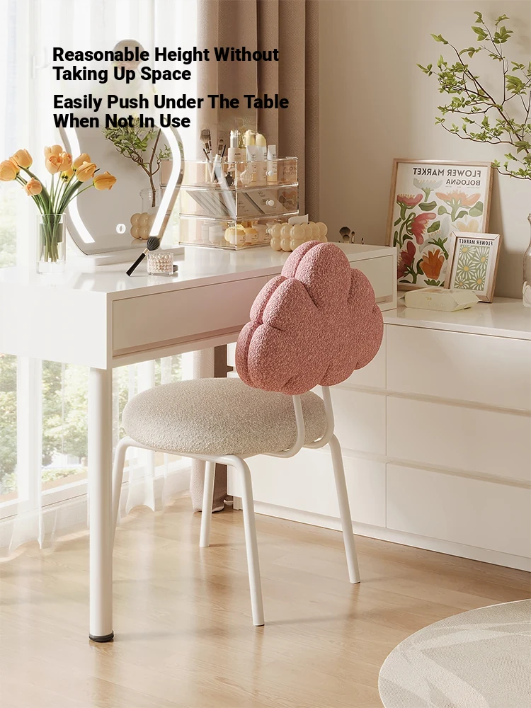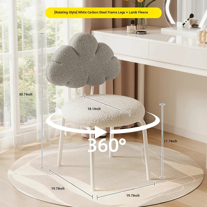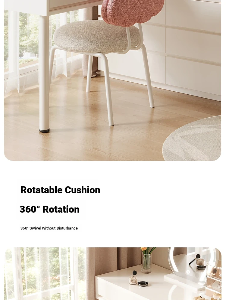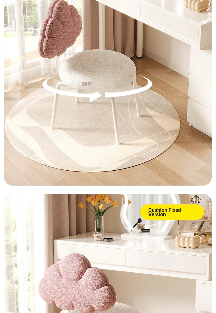 Elegant Cream Vanity Chair for Girls' Bedroom - Stylish Rotating Makeup Stool with Backrest, Perfect for Home Use and Adding a Touch of Luxury to Your Space.