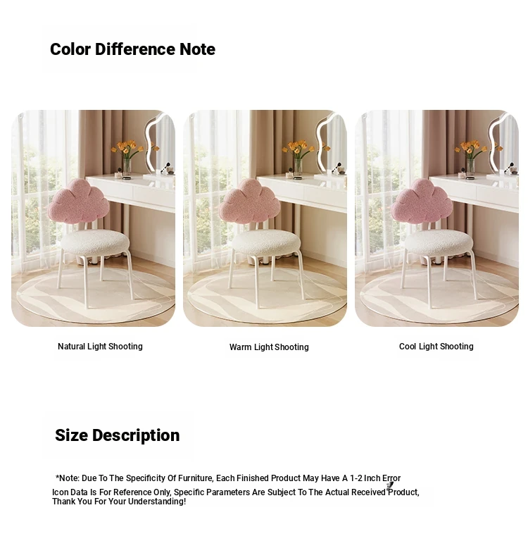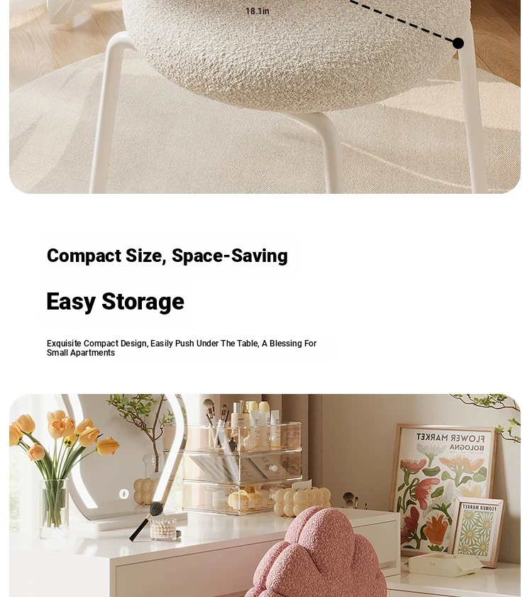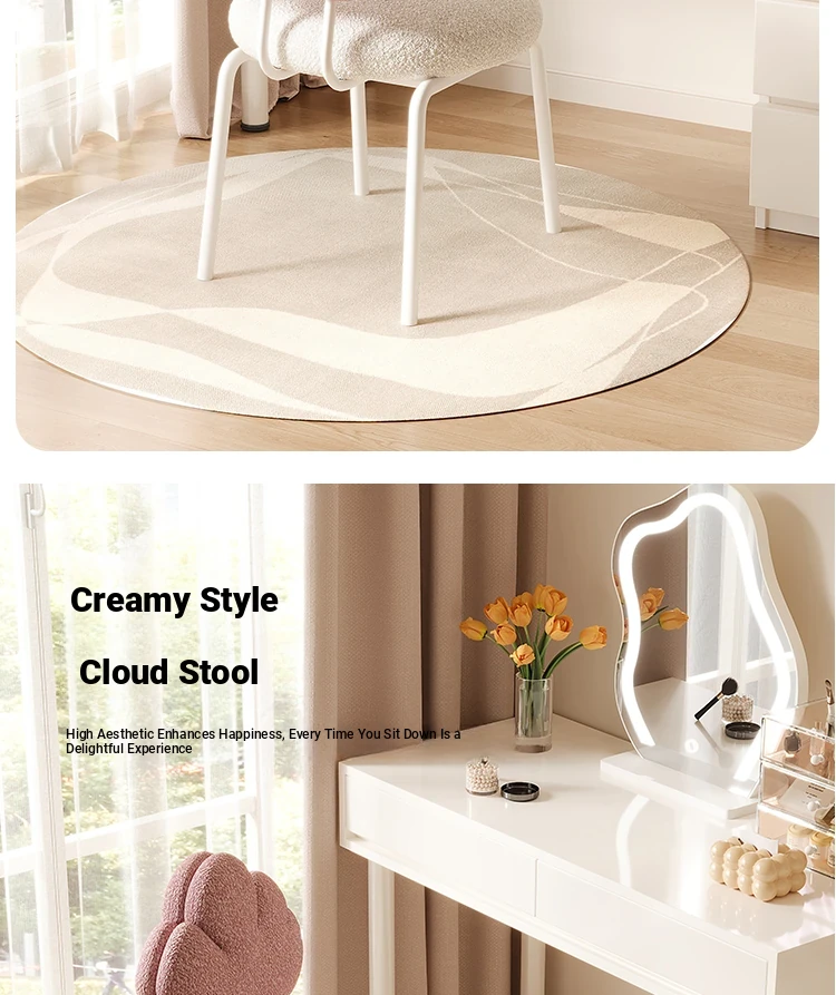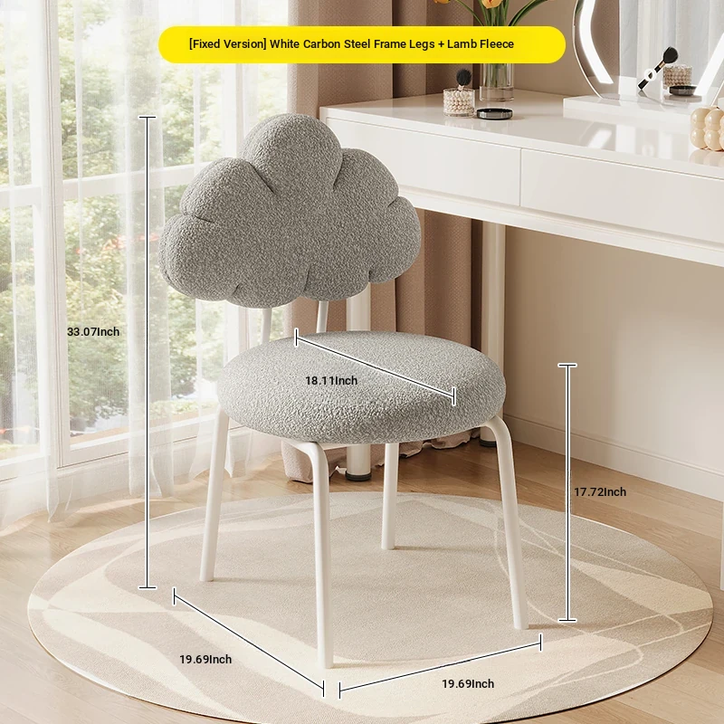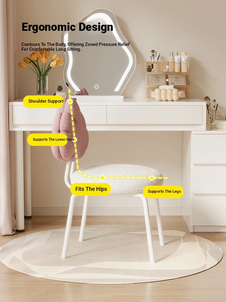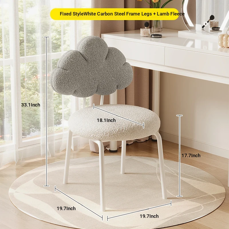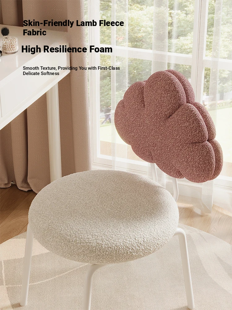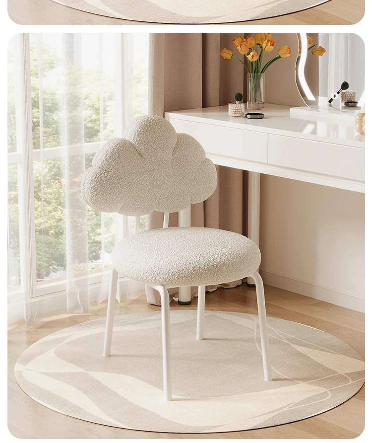 Elegant Cream Vanity Chair for Girls' Bedroom - Stylish Rotating Makeup Stool with Backrest, Perfect for Home Use and Adding a Touch of Luxury to Your Space.