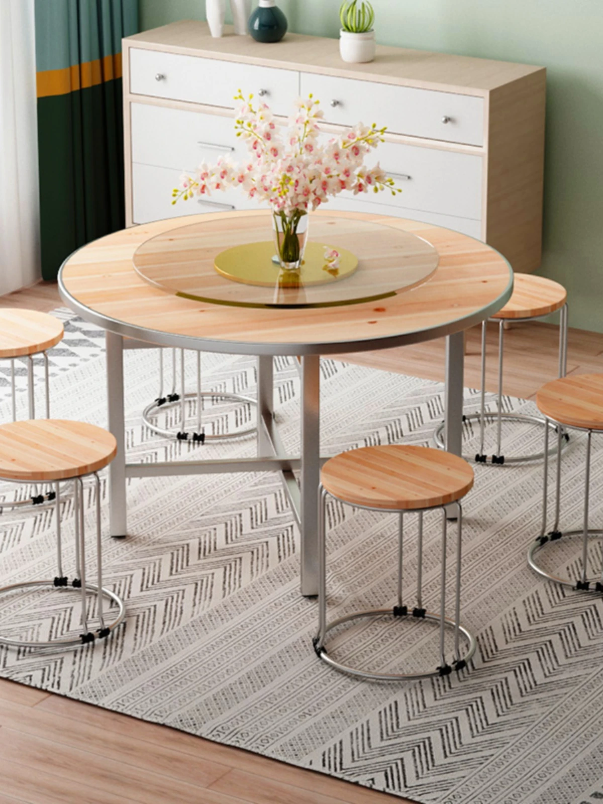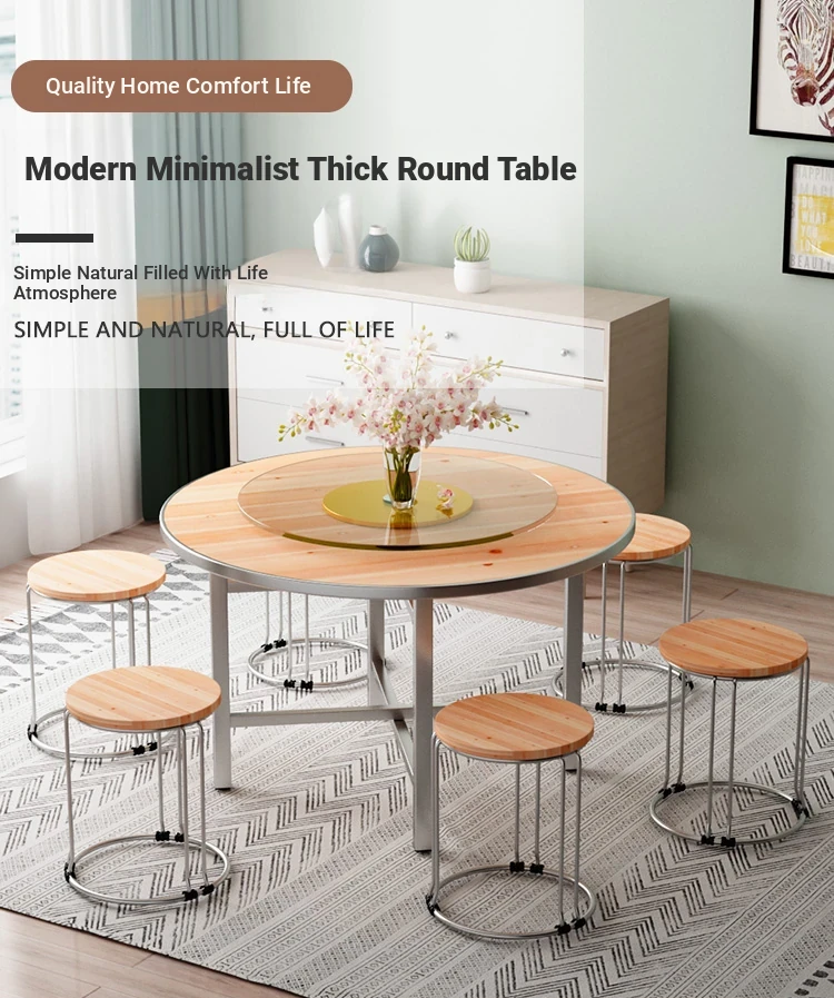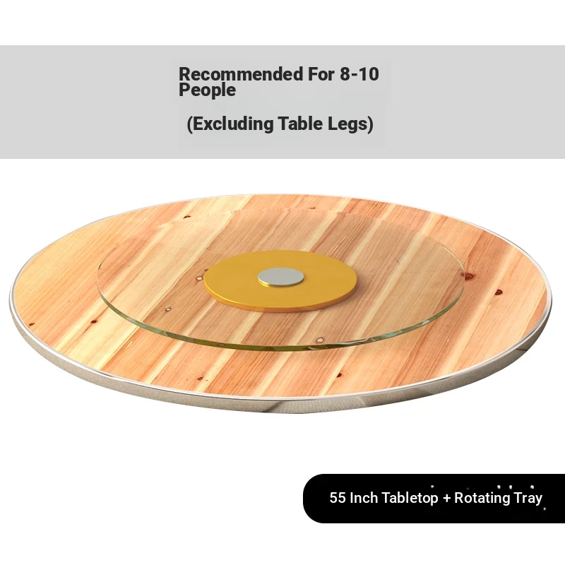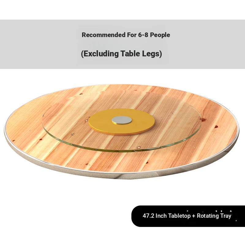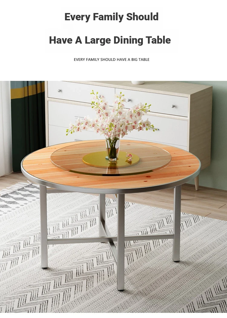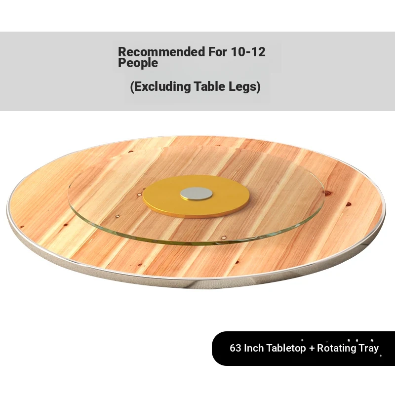 Extra Thick Solid Wood Round Dining Table with Tempered Glass Lazy Susan – Perfect for Home Use, Accommodates 10-15 People, Ideal for Restaurants and Rural Settings