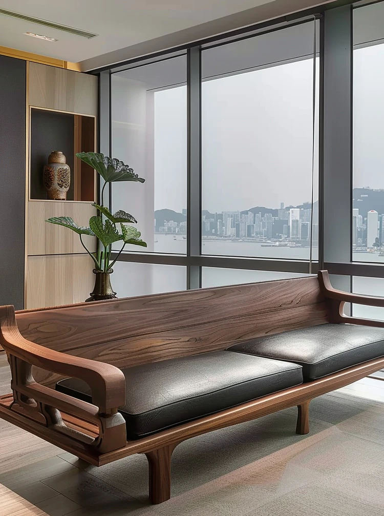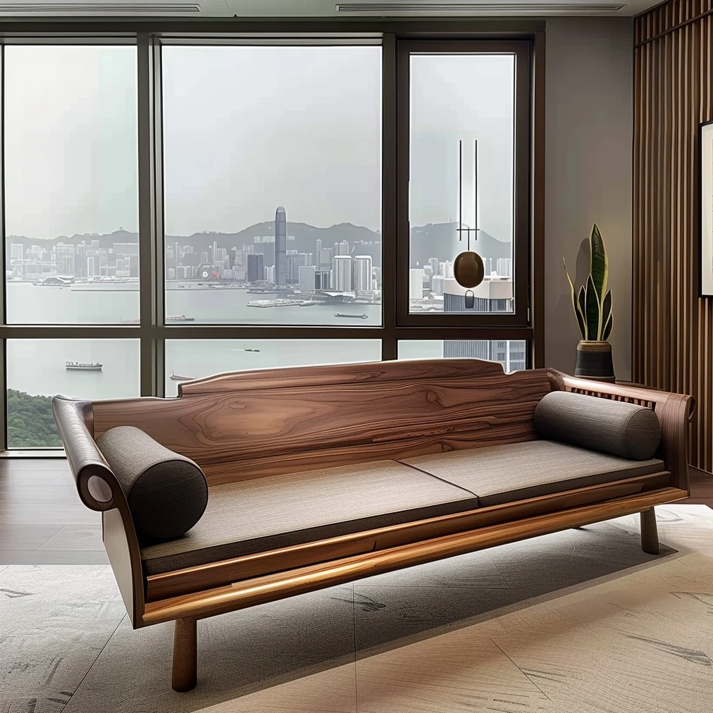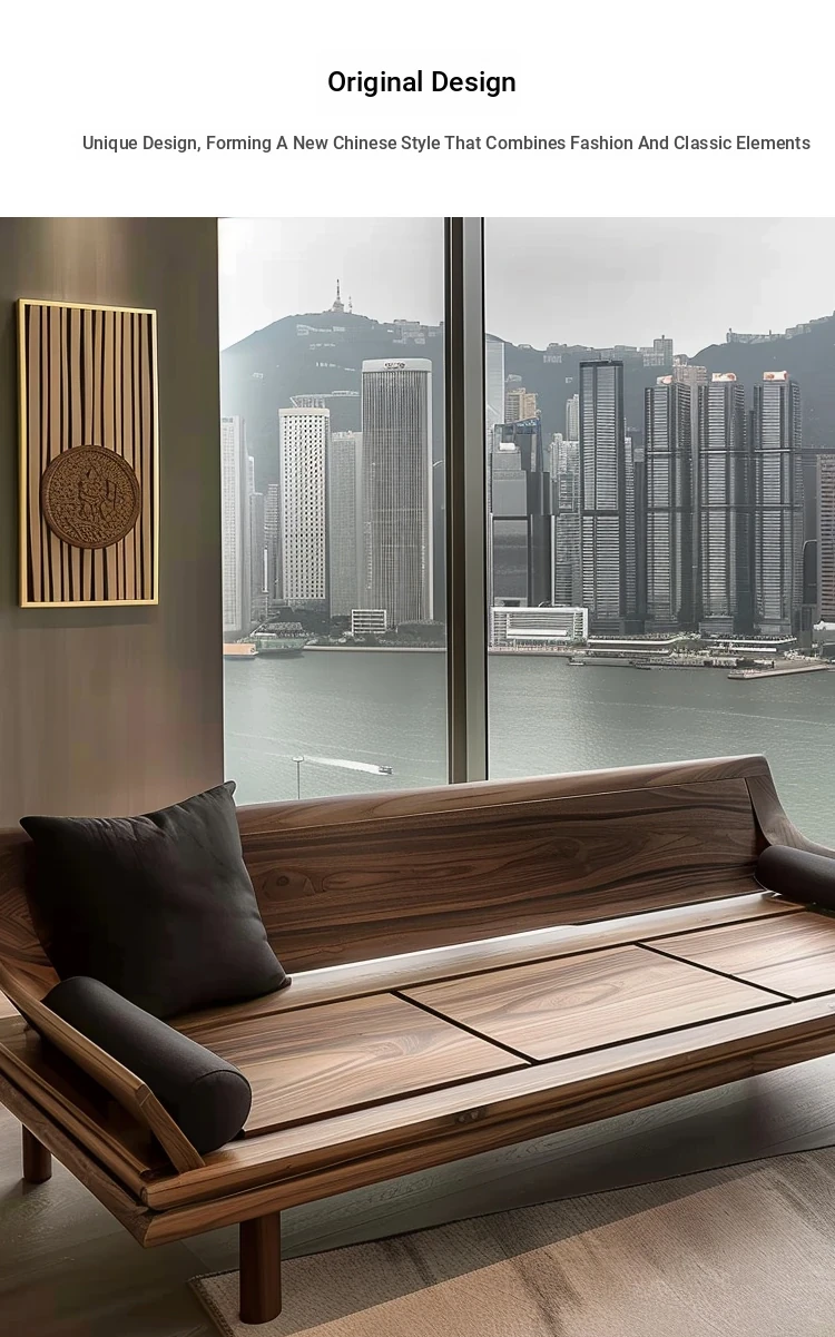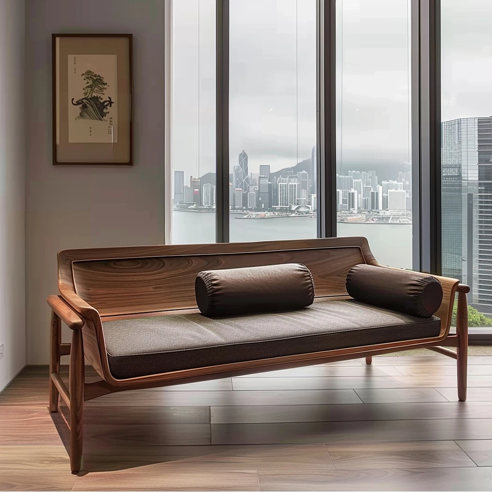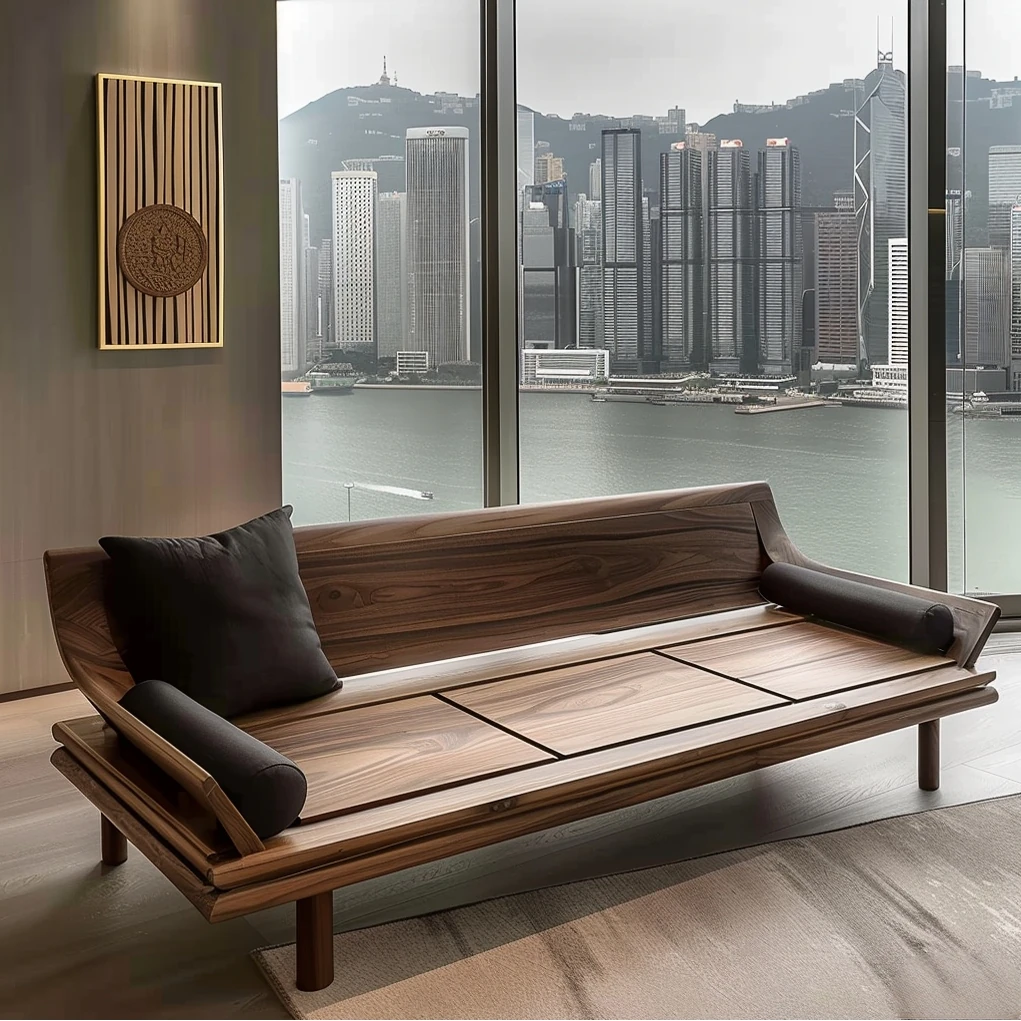 Luxurious Modern New Chinese Style Furniture: North American Black Walnut and Ash Wood Luohan Bed for Office, Hotel, and Airbnb - Exquisite Daybed