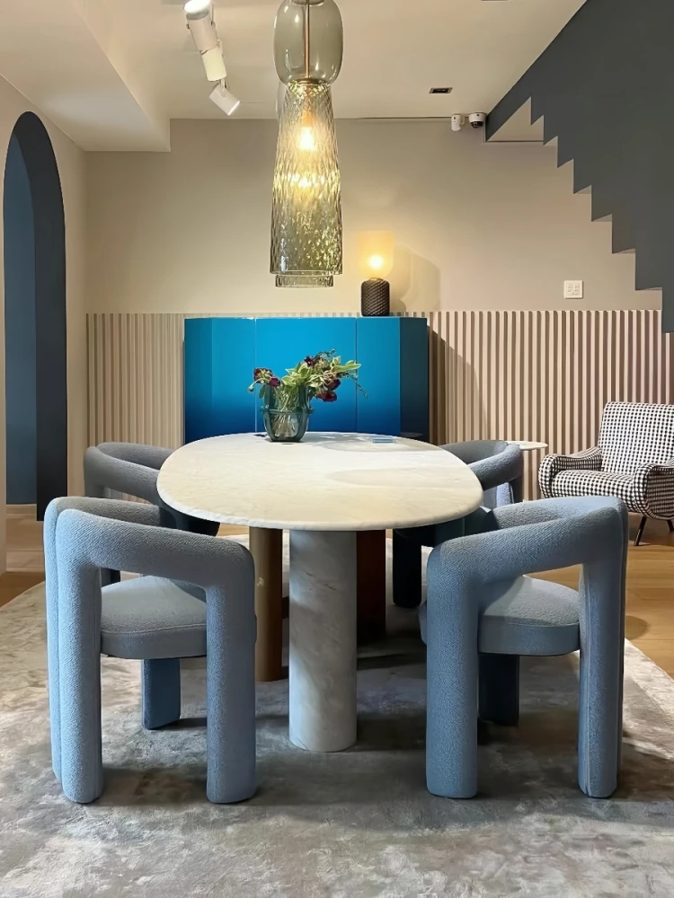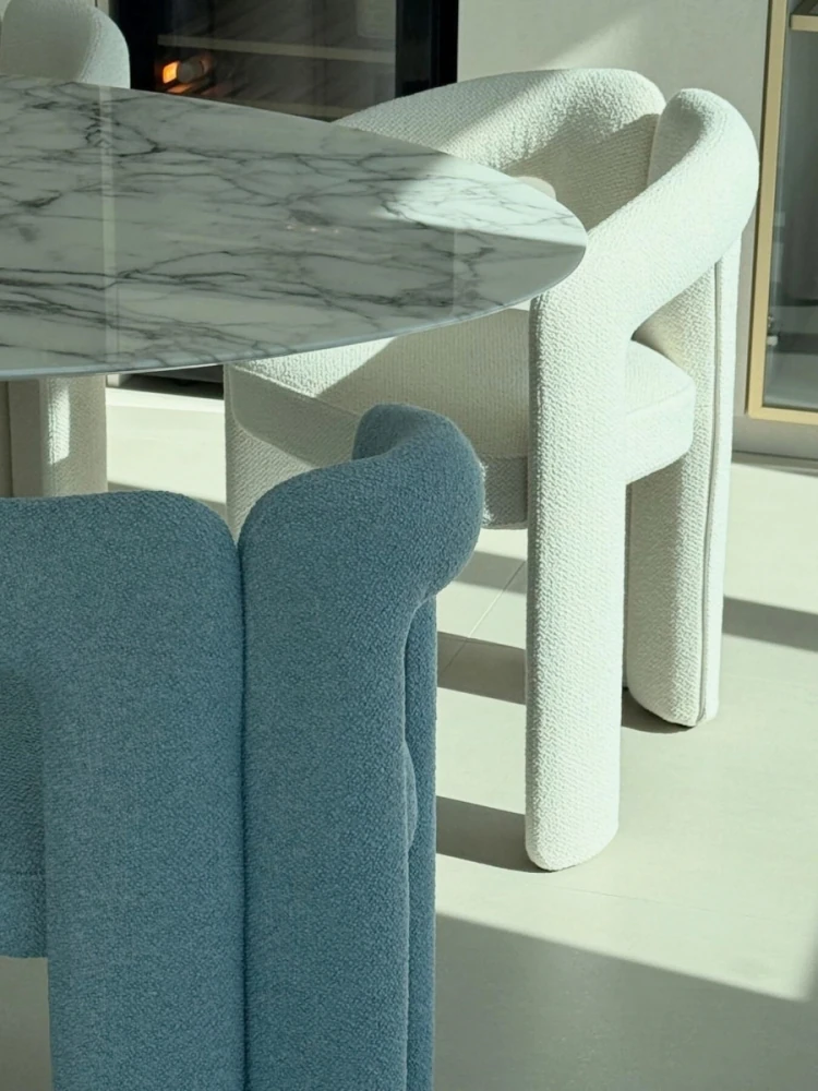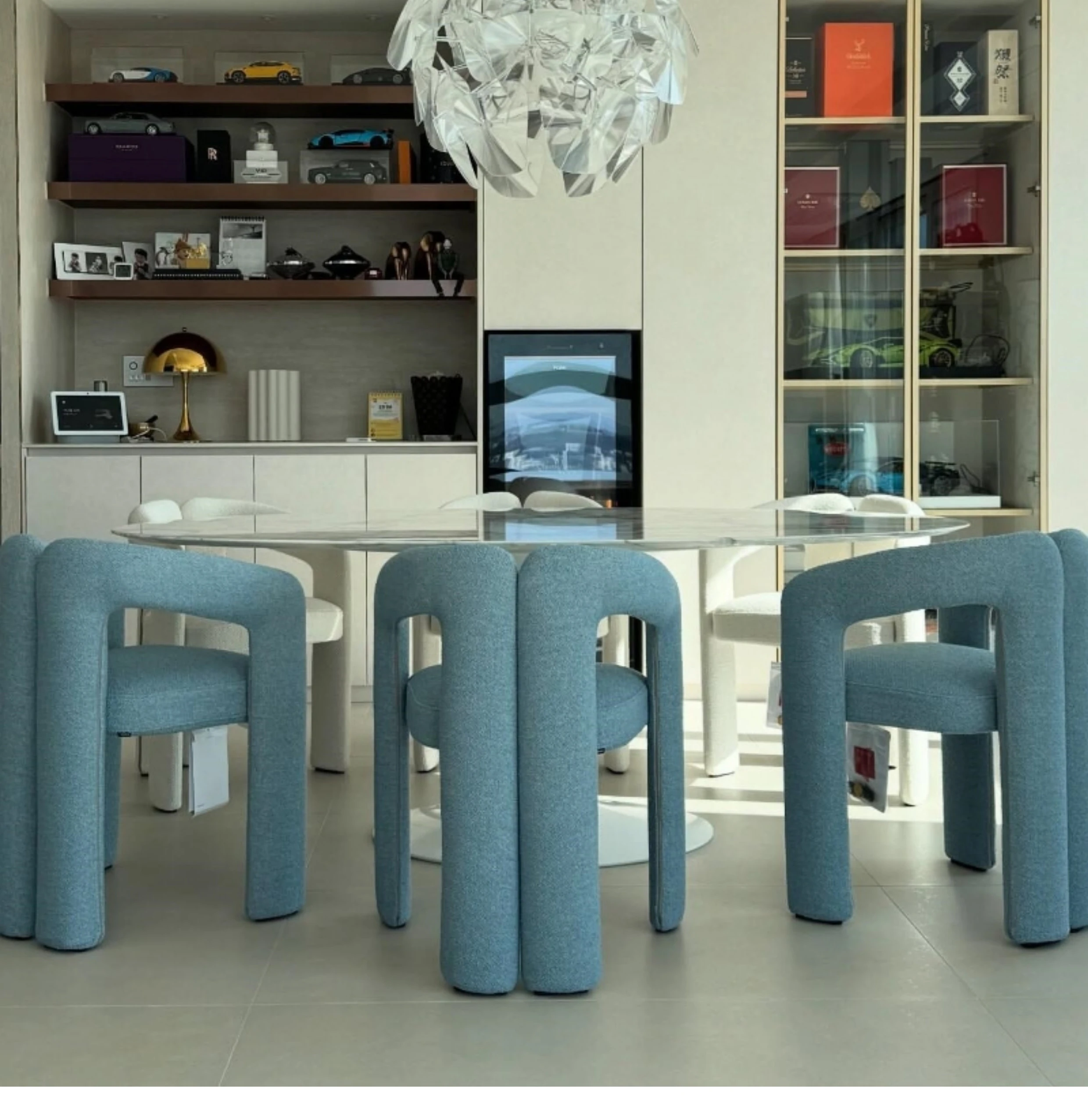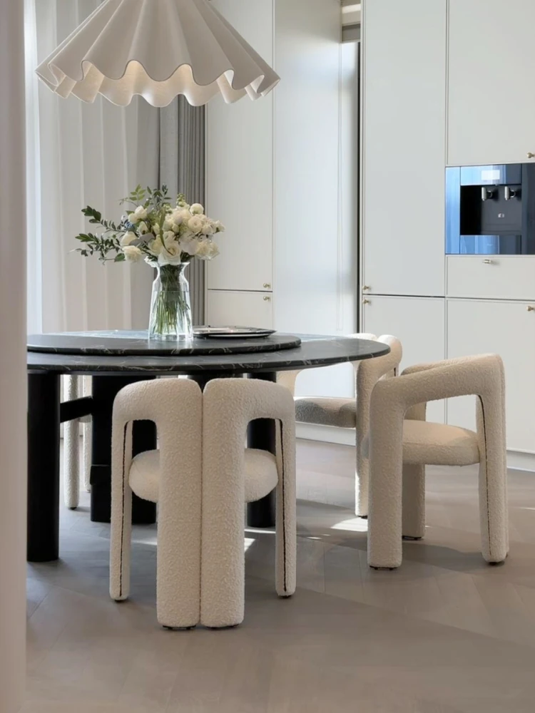 Meng Fei Minimalist Designer Dining Chair with Fabric Backrest - Stylish Sofa Chair for Dining Room, Trendy Vanity Chair for Modern Homes