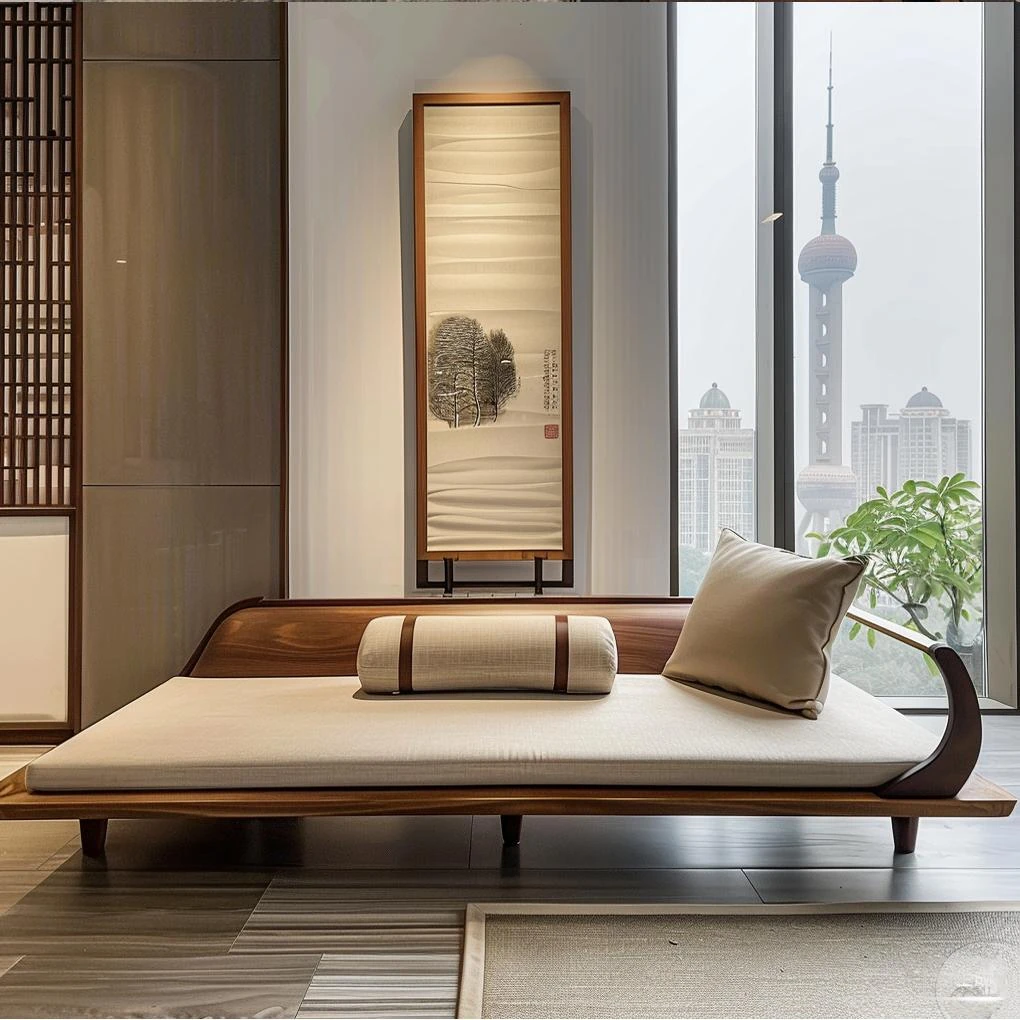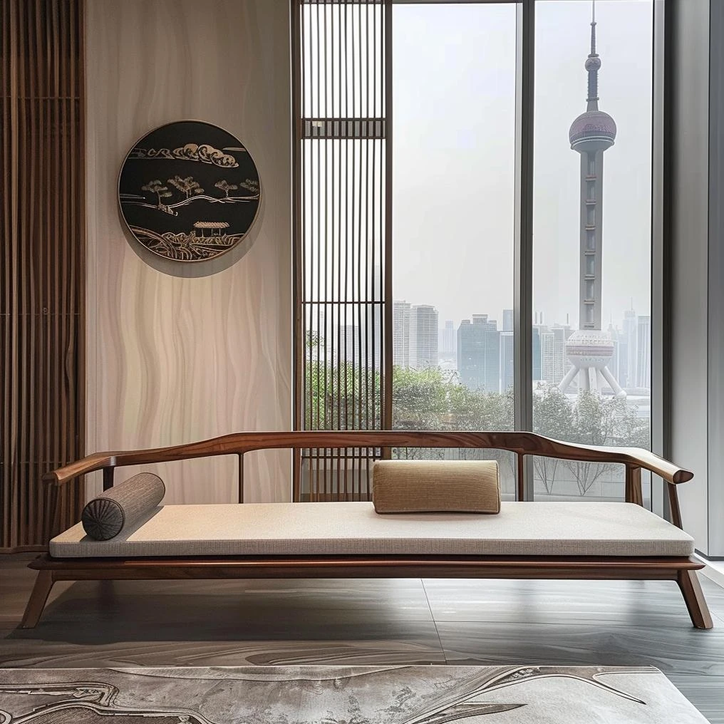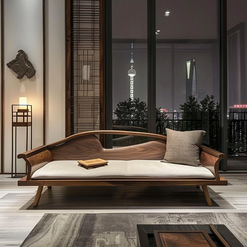 Modern Asian-style North American Black Walnut and White Ash Furniture: 2025 Elegant Daybed for Offices, Hotels, and Vacation Rentals - Perfect for Comfort and Style.