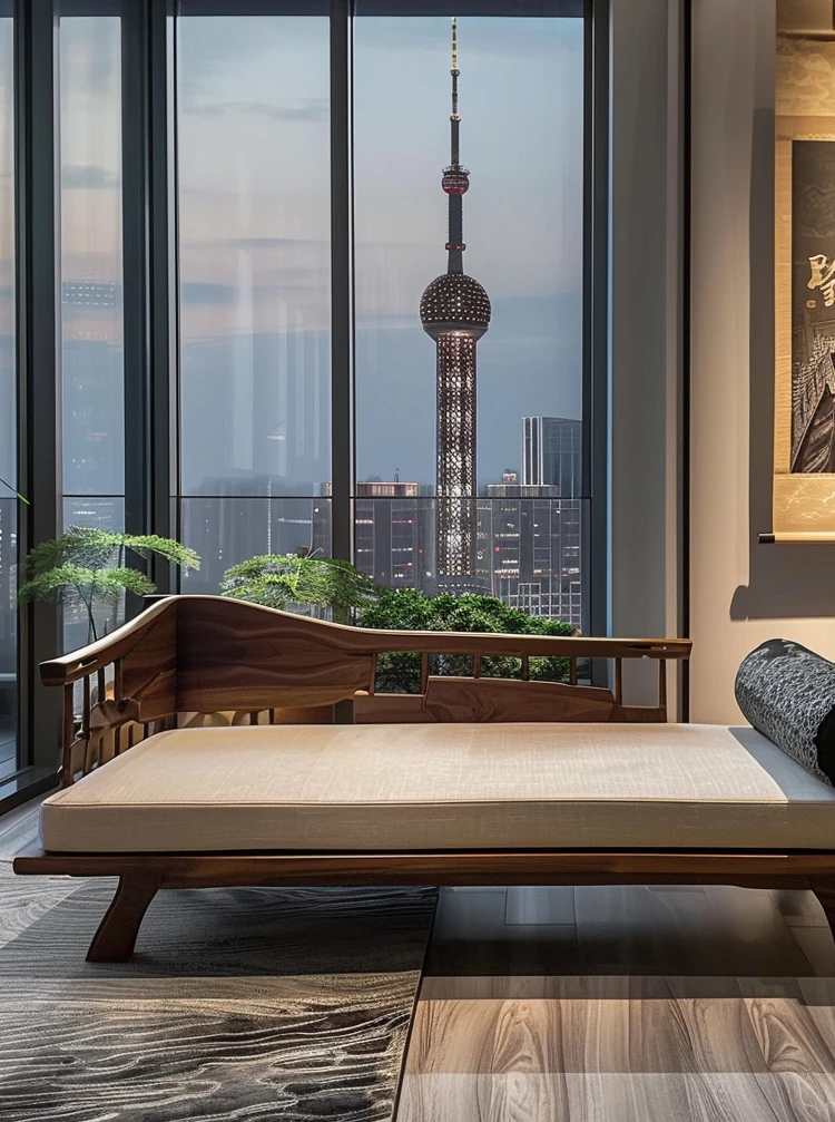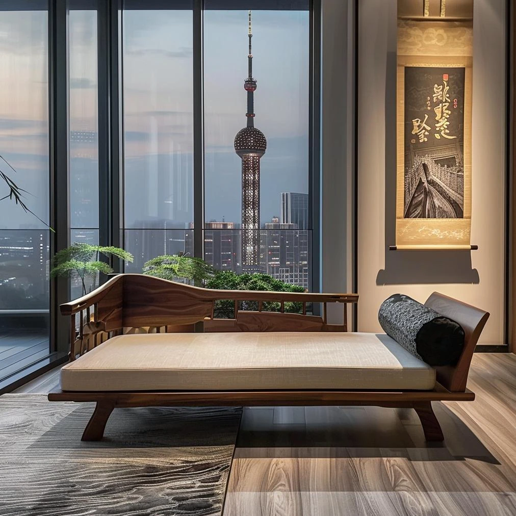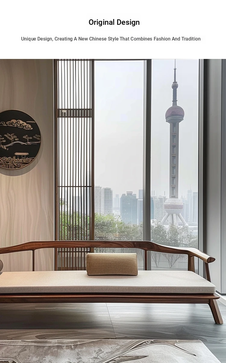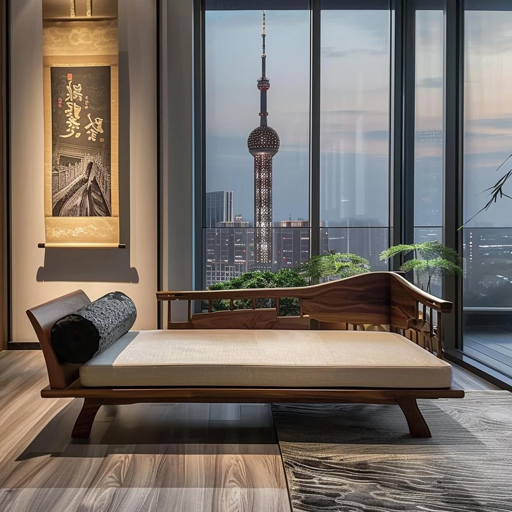 Modern Asian-style North American Black Walnut and White Ash Furniture: 2025 Elegant Daybed for Offices, Hotels, and Vacation Rentals - Perfect for Comfort and Style.