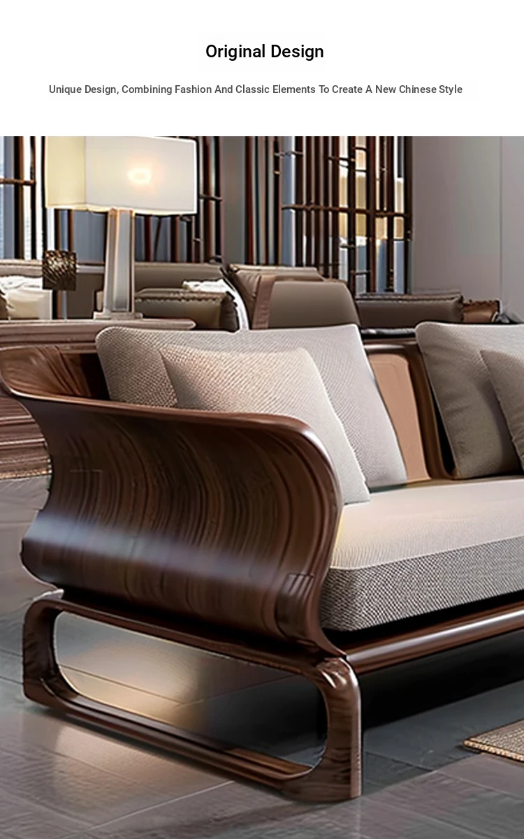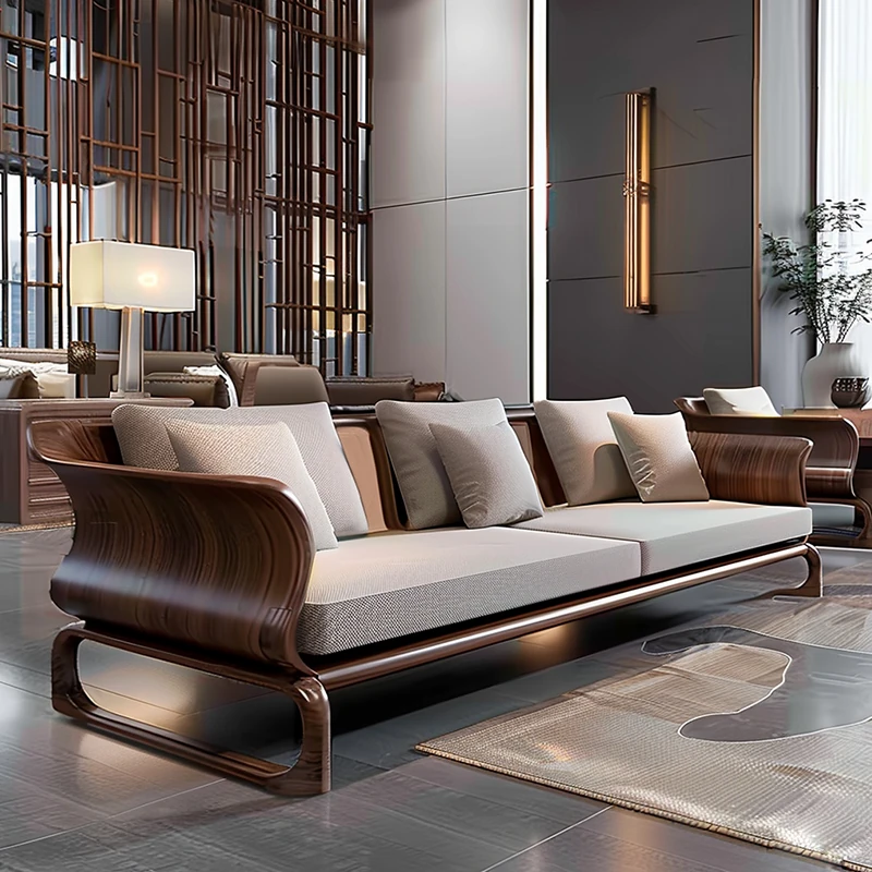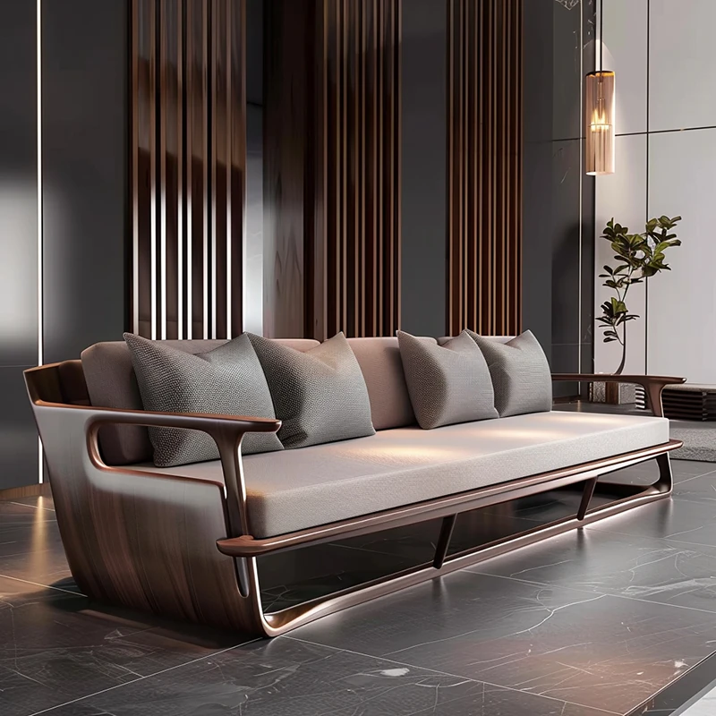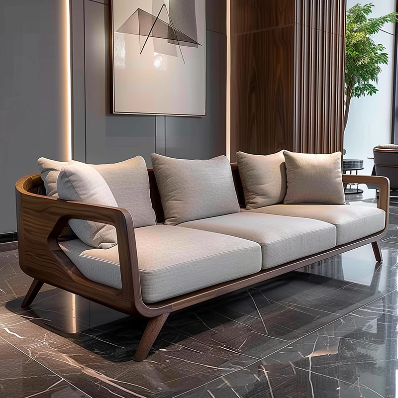 Modern Minimalist Black Walnut Sofa - Zen Style Living Room Furniture for Home and Sample Rooms, Perfect for Reception and Business Meetings.