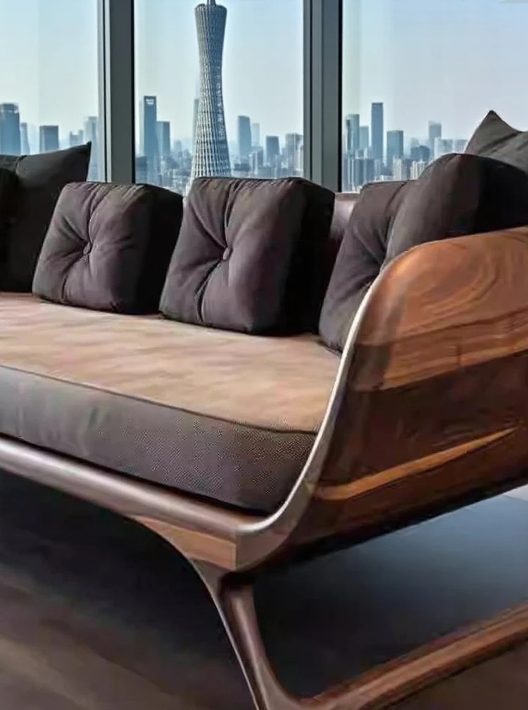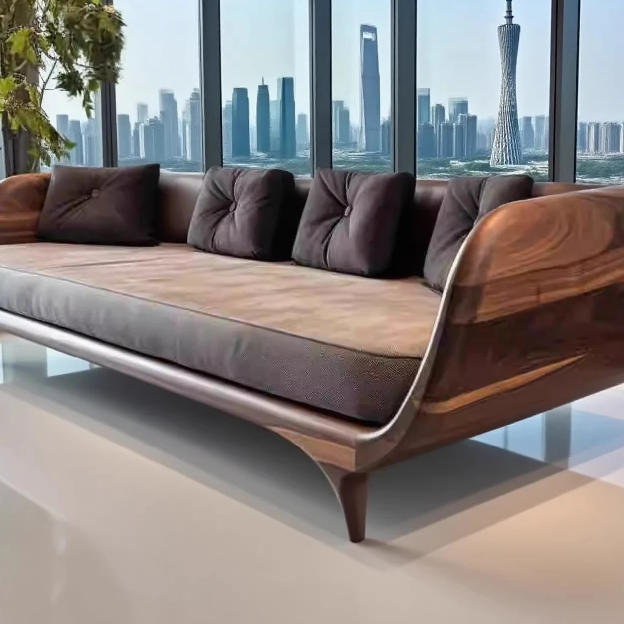 Modern Zen Style White Ash Wood Sofa and Coffee Table Set - Luxurious North American Walnut Living Room Furniture for Elegant Guest Reception