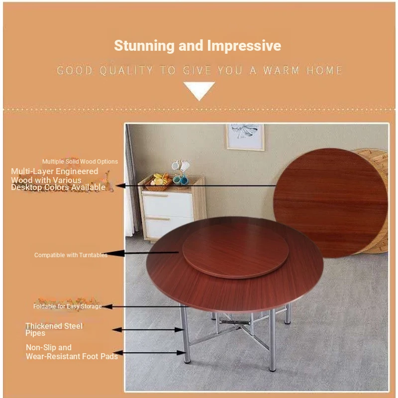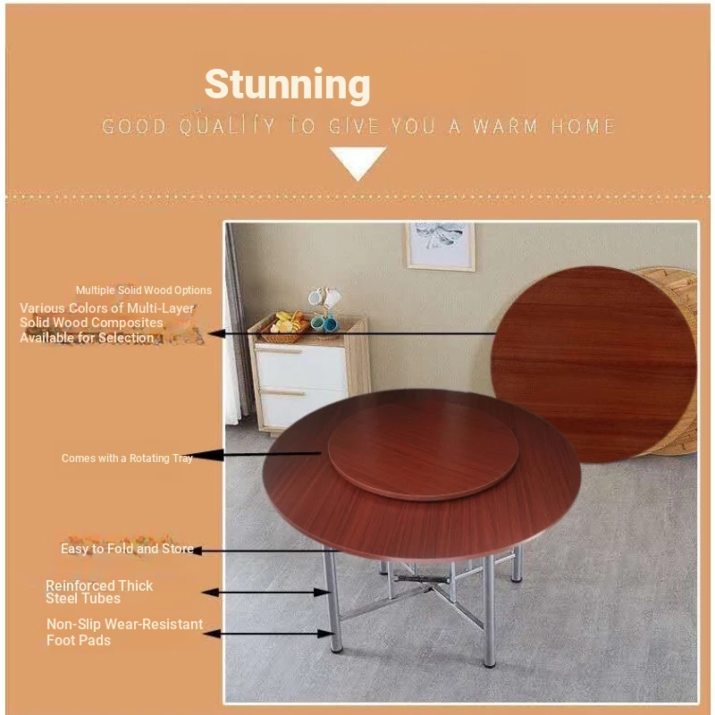 Premium Folding Round Dining Table with Rotating Tray - Ideal for Home, Hotels, and Restaurants - Perfect for Banquets and Gatherings