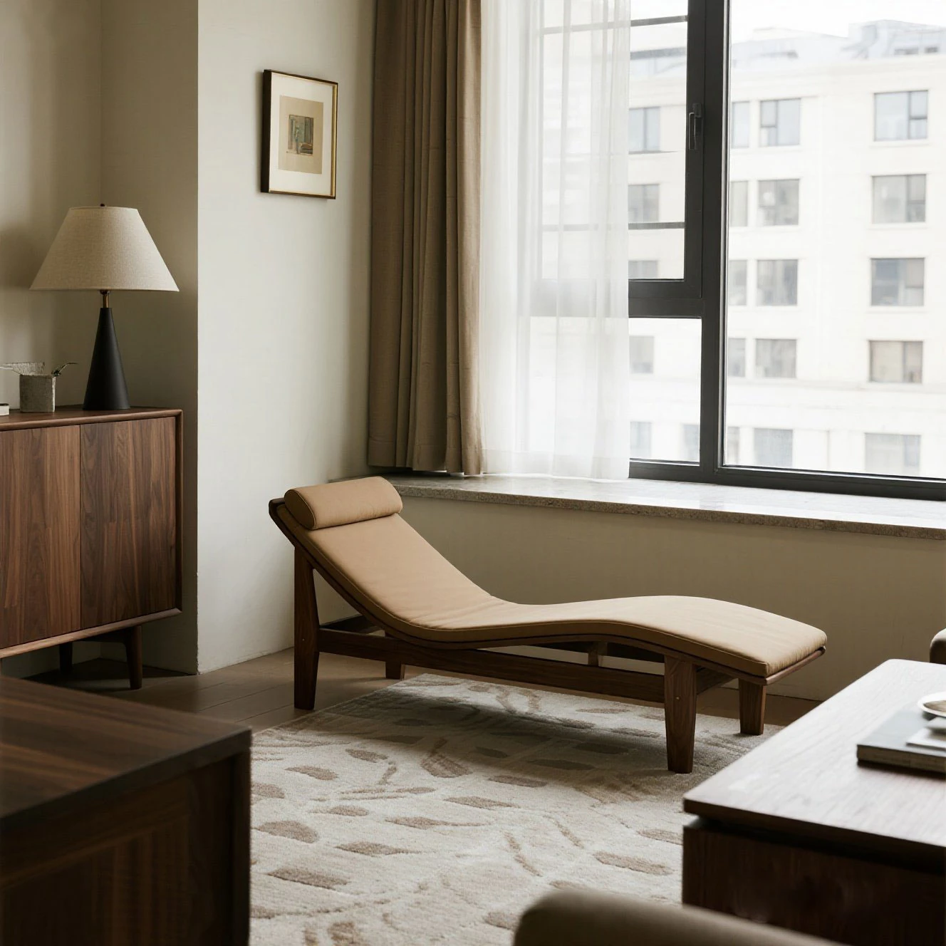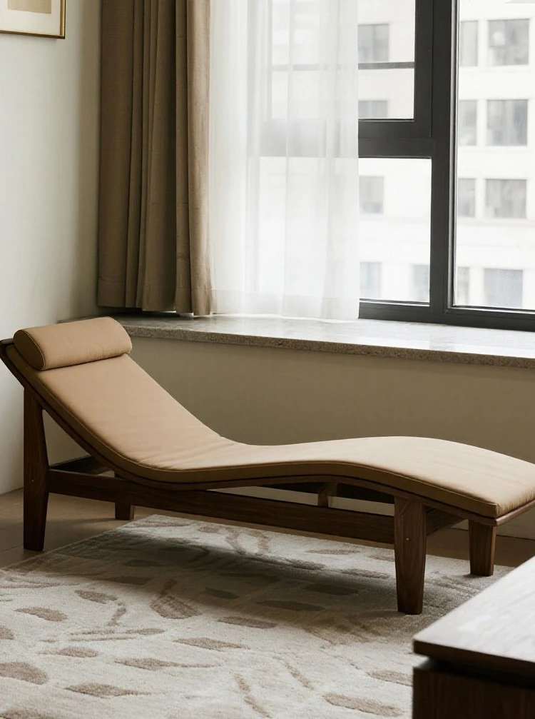 Song's Aesthetic North American Black Walnut & White Ash Furniture - 2025 Elegant Rohan Bed for Office, Hotel, and Boutique Inn, Luxurious Daybed