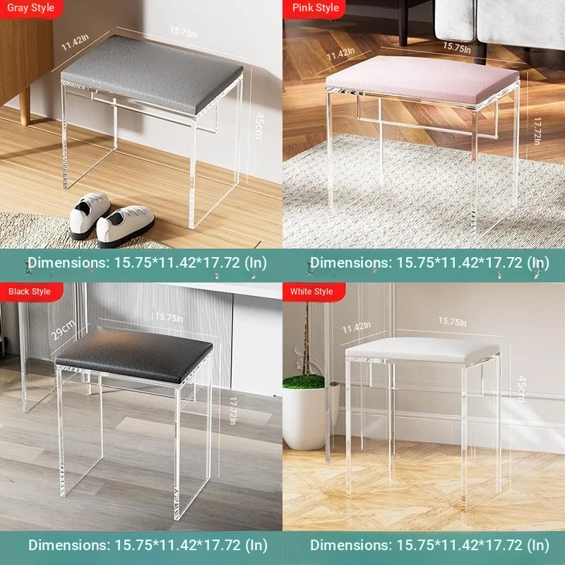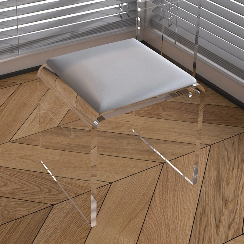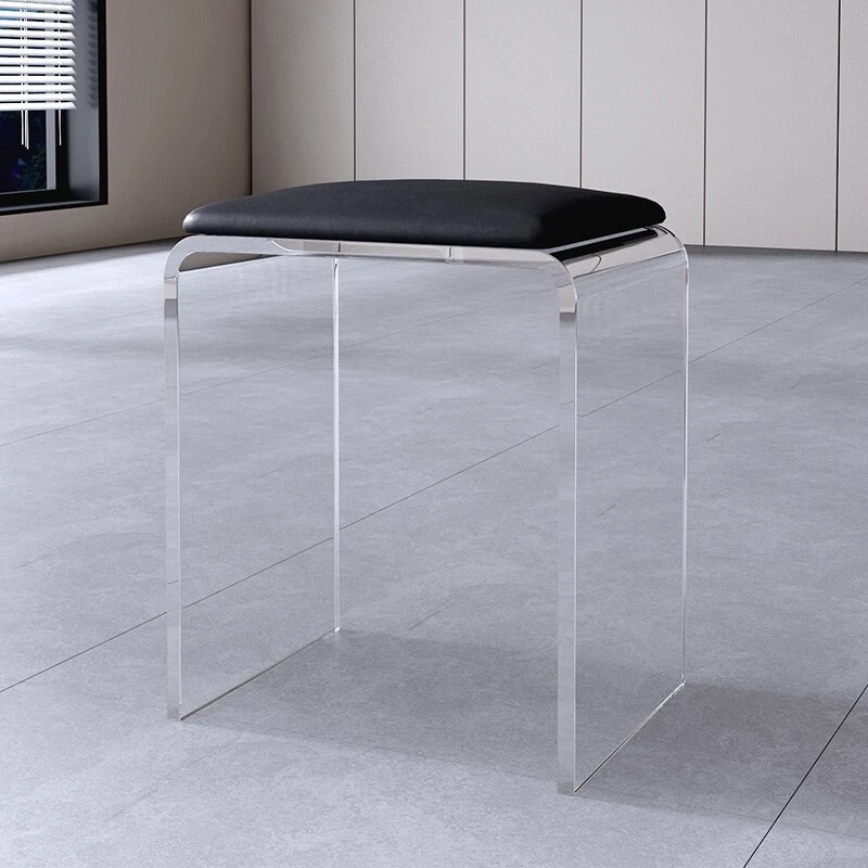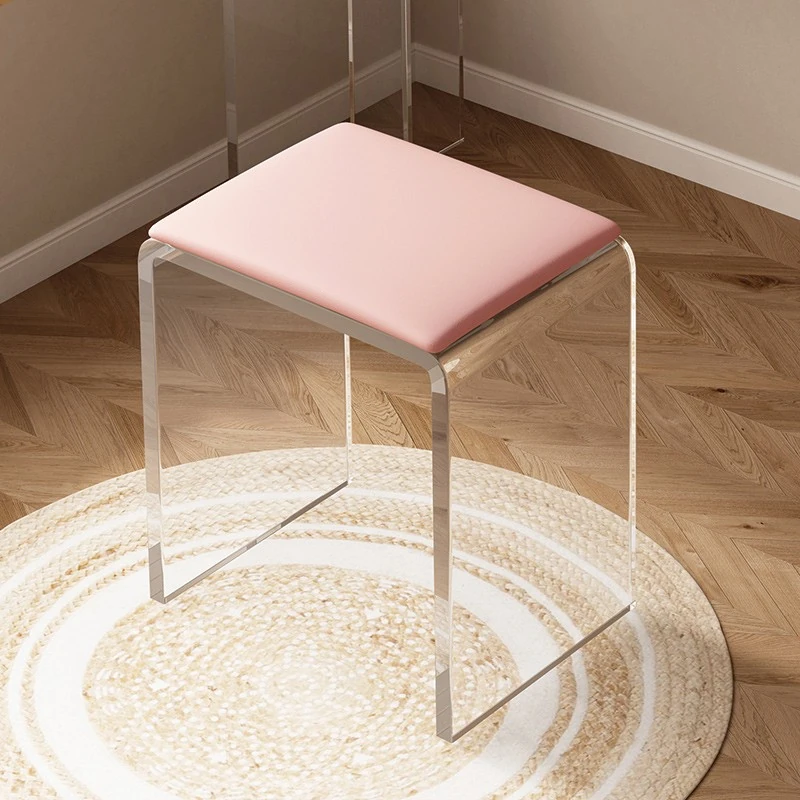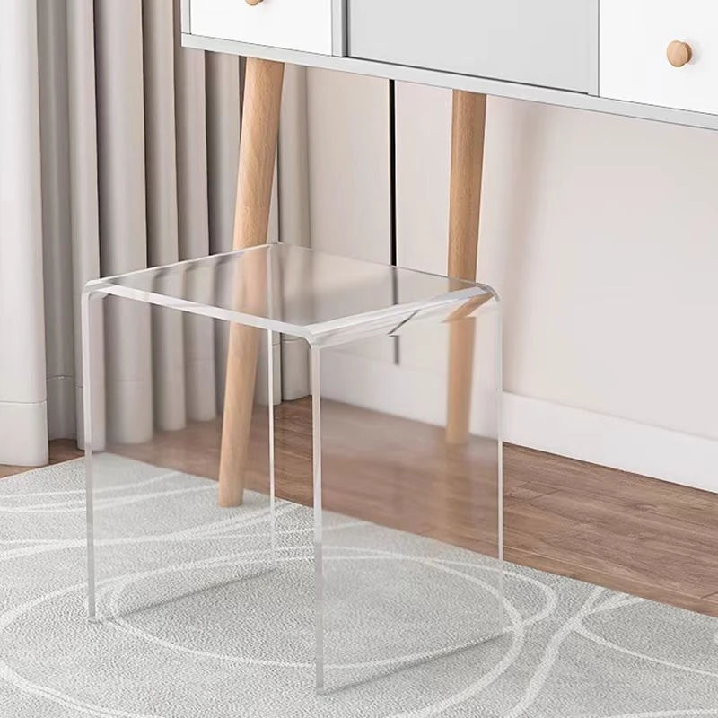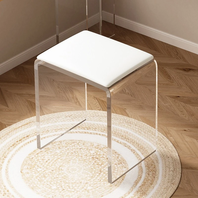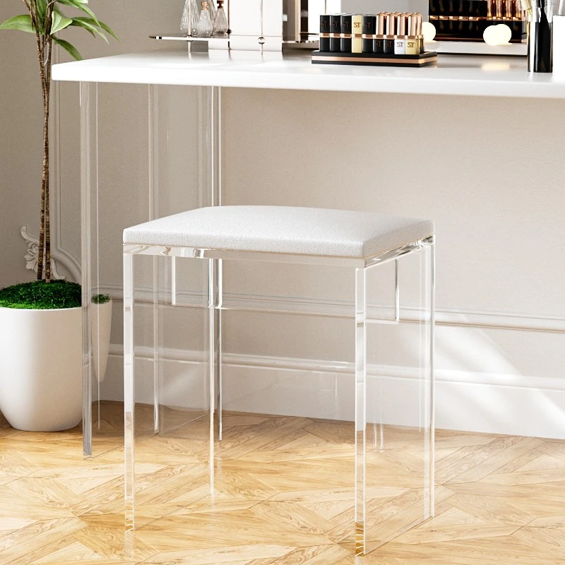 Stylish Transparent Stool for Vanity - Acrylic Makeup Chair for Girls' Bedrooms, Creamy Aesthetic Nail Art Seat, Simple and Elegant Design Ideal for Beauty Lovers