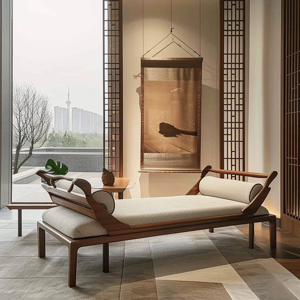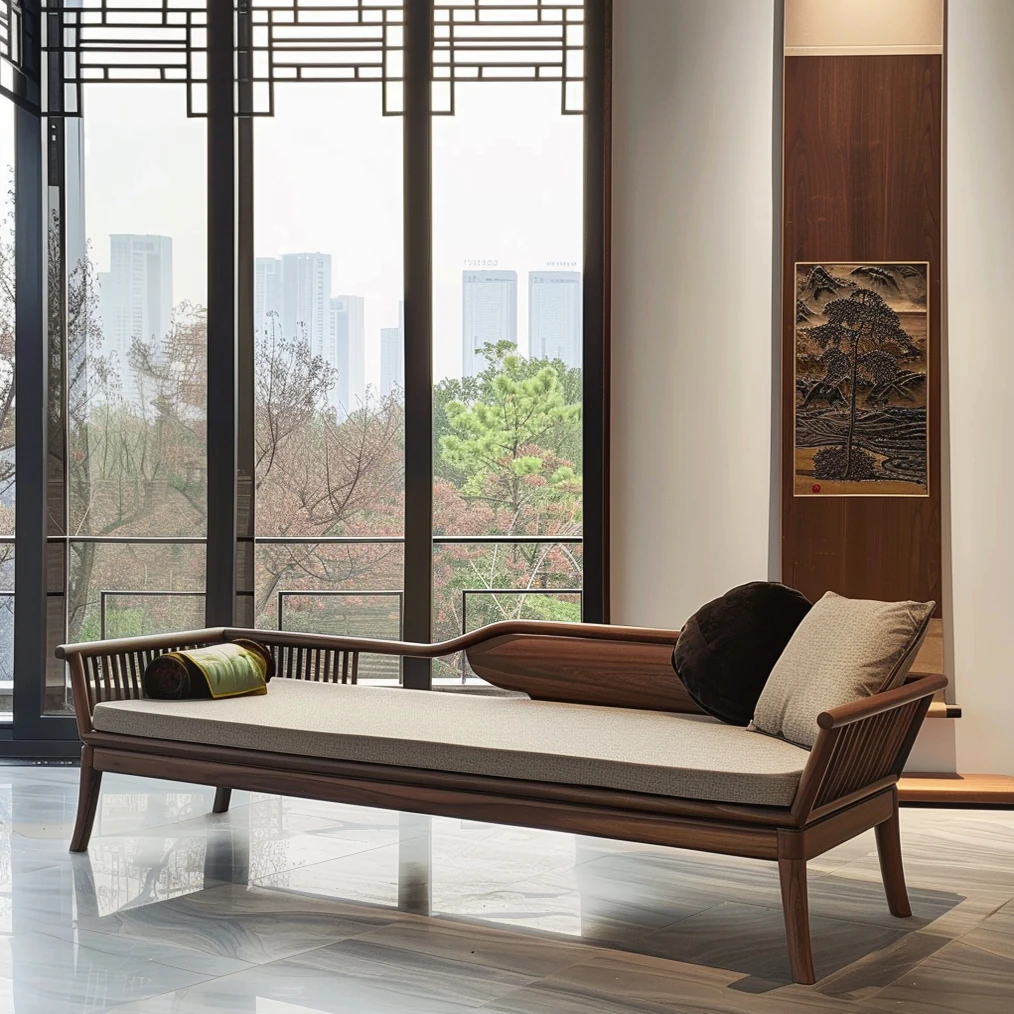 2025年北米高級ブラックウォールナット家具 ロハンベッド 新中式モダンオフィスホテル民宿用 貴妃ソファで、贅沢な佇まいを実現!