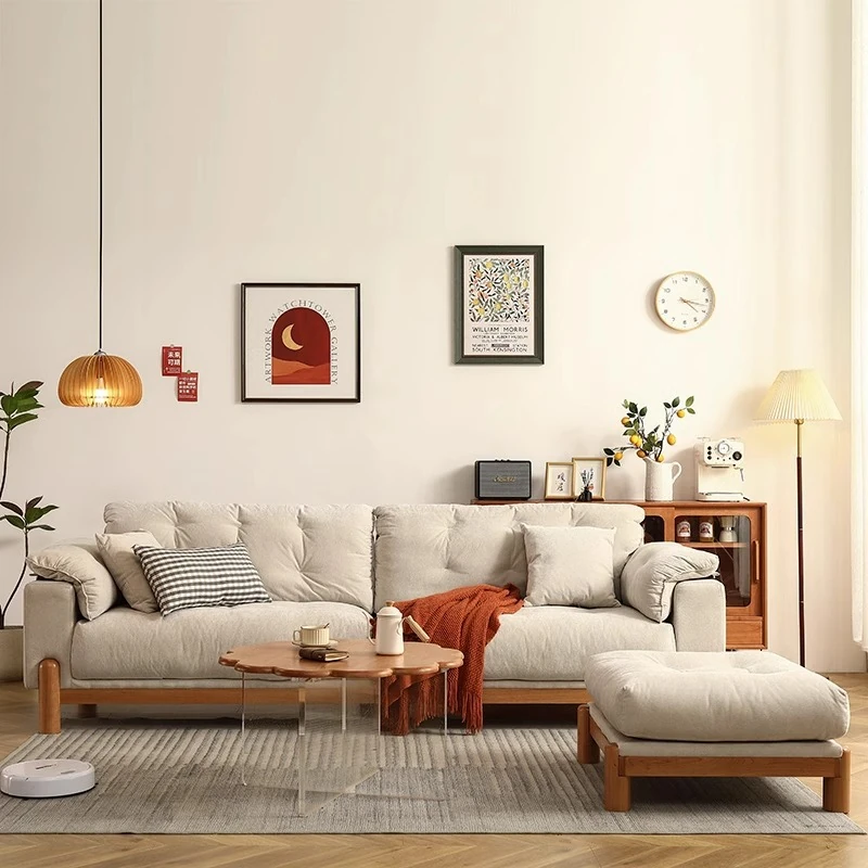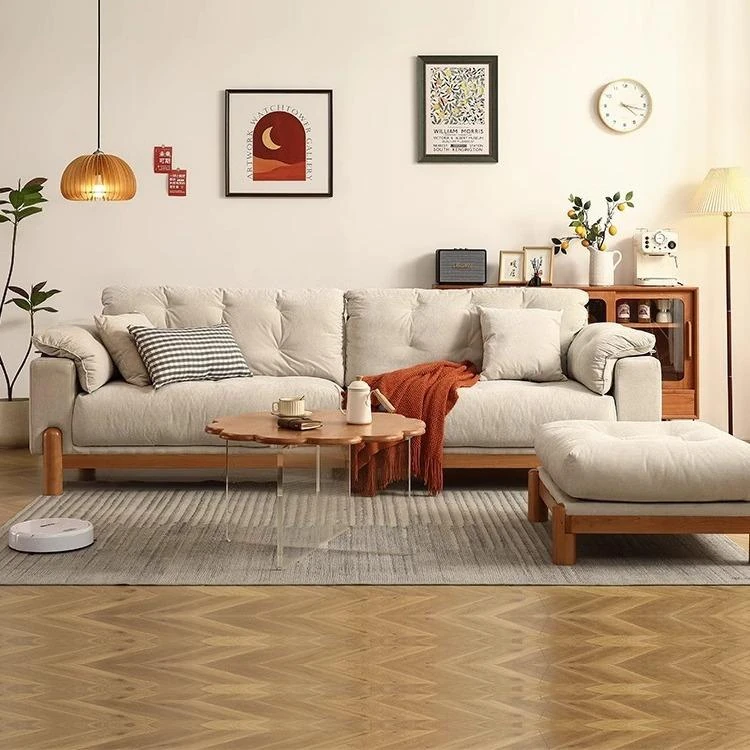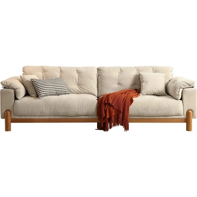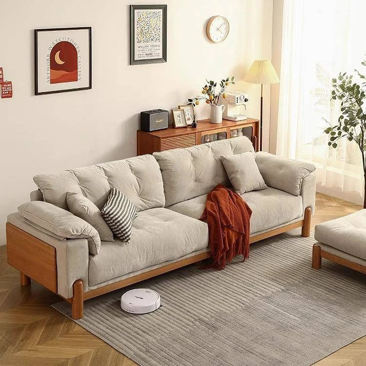 チェリーモダンソファ 3人掛け - 高級無垢材とファブリックのコンビネーション、洗えるカバー付きでメンテナンスも簡単!リビングルームにぴったりのクリーミーチェリー風デザイン。快適さとスタイルを両立した一品です。