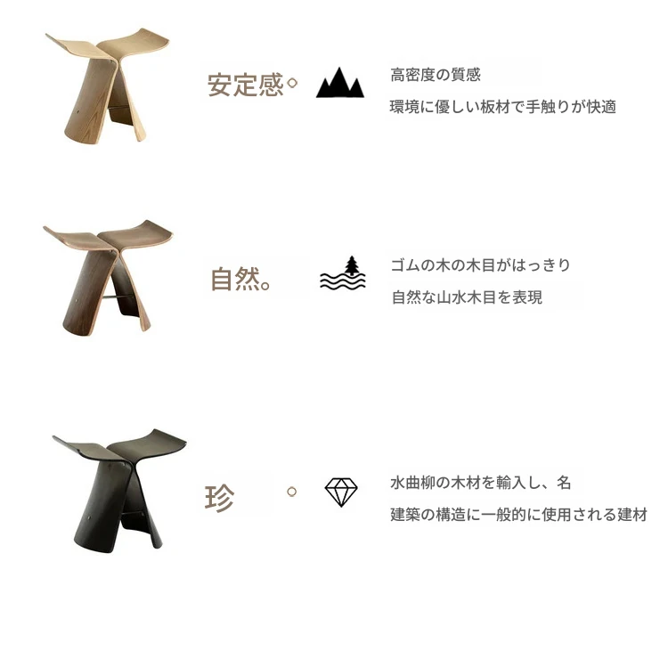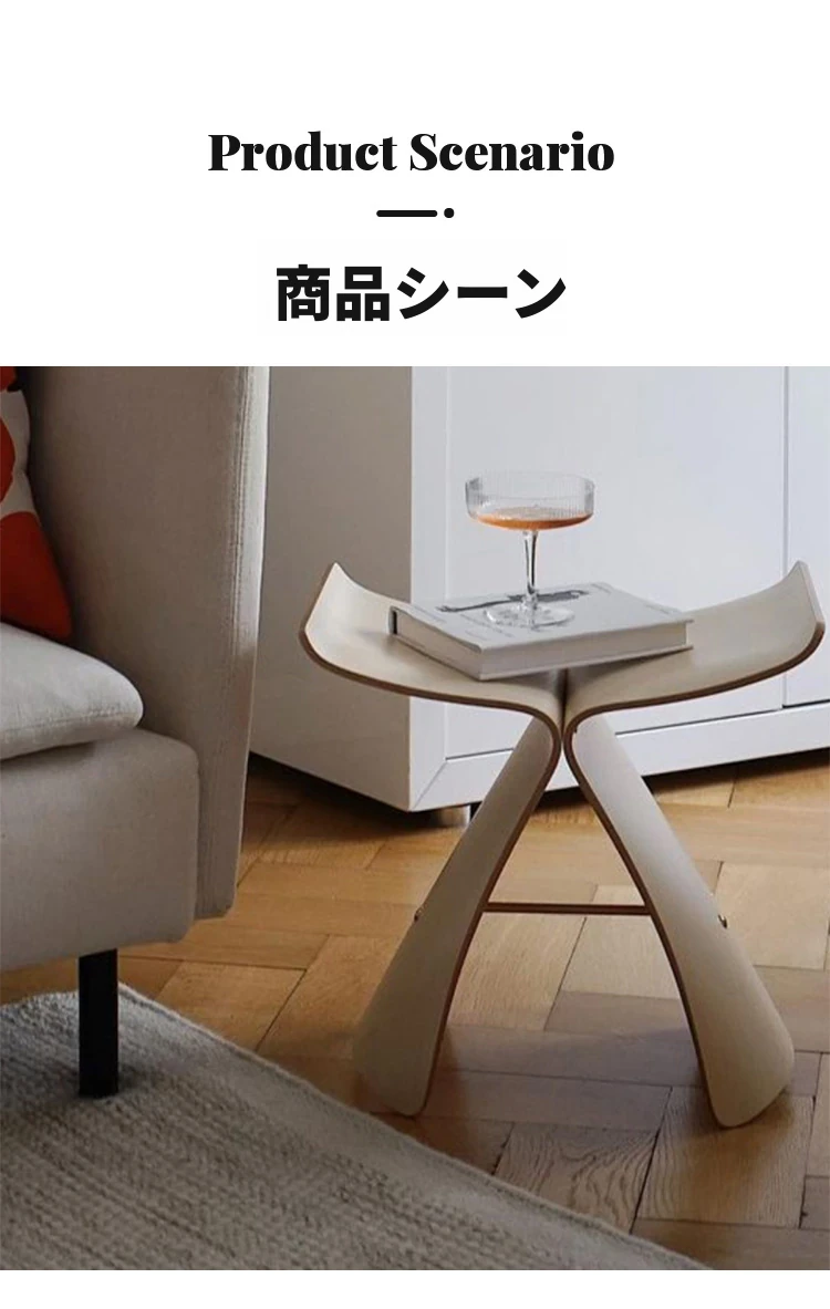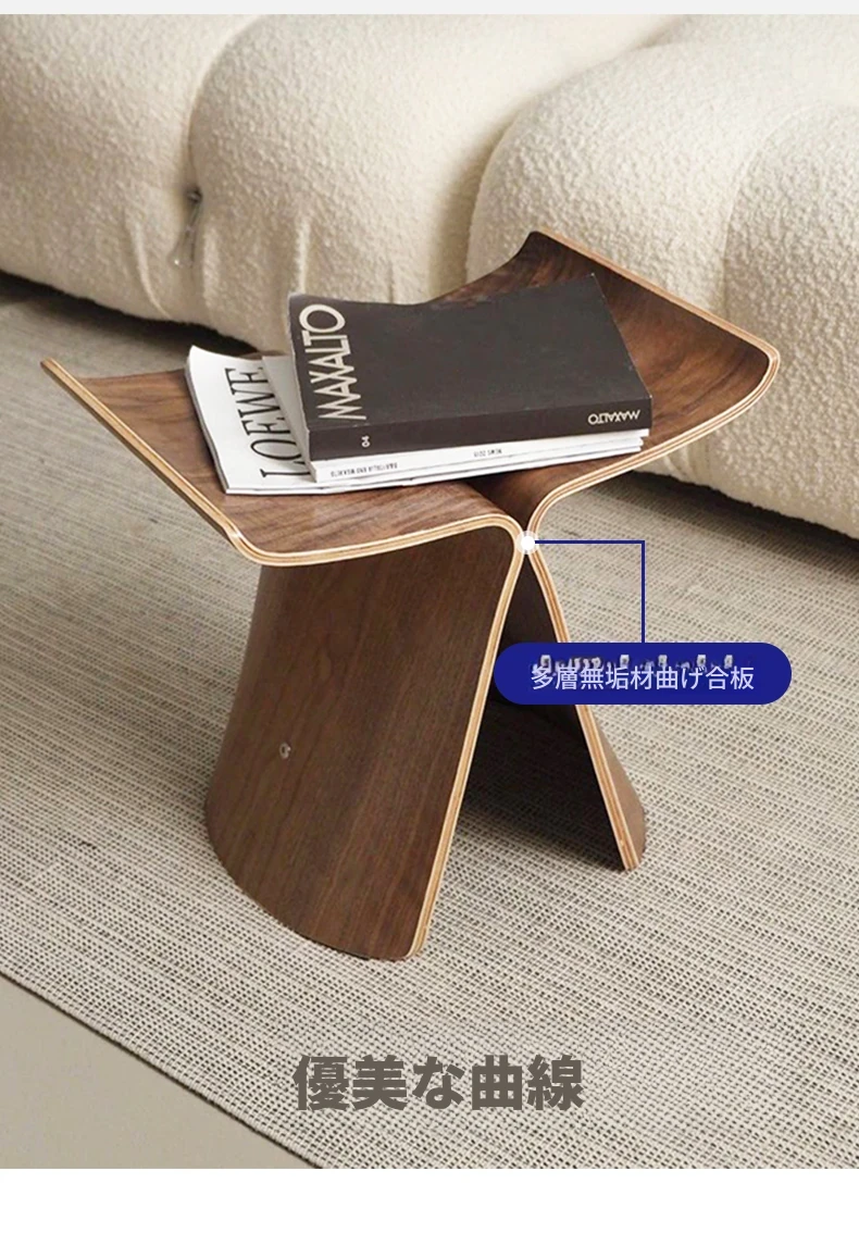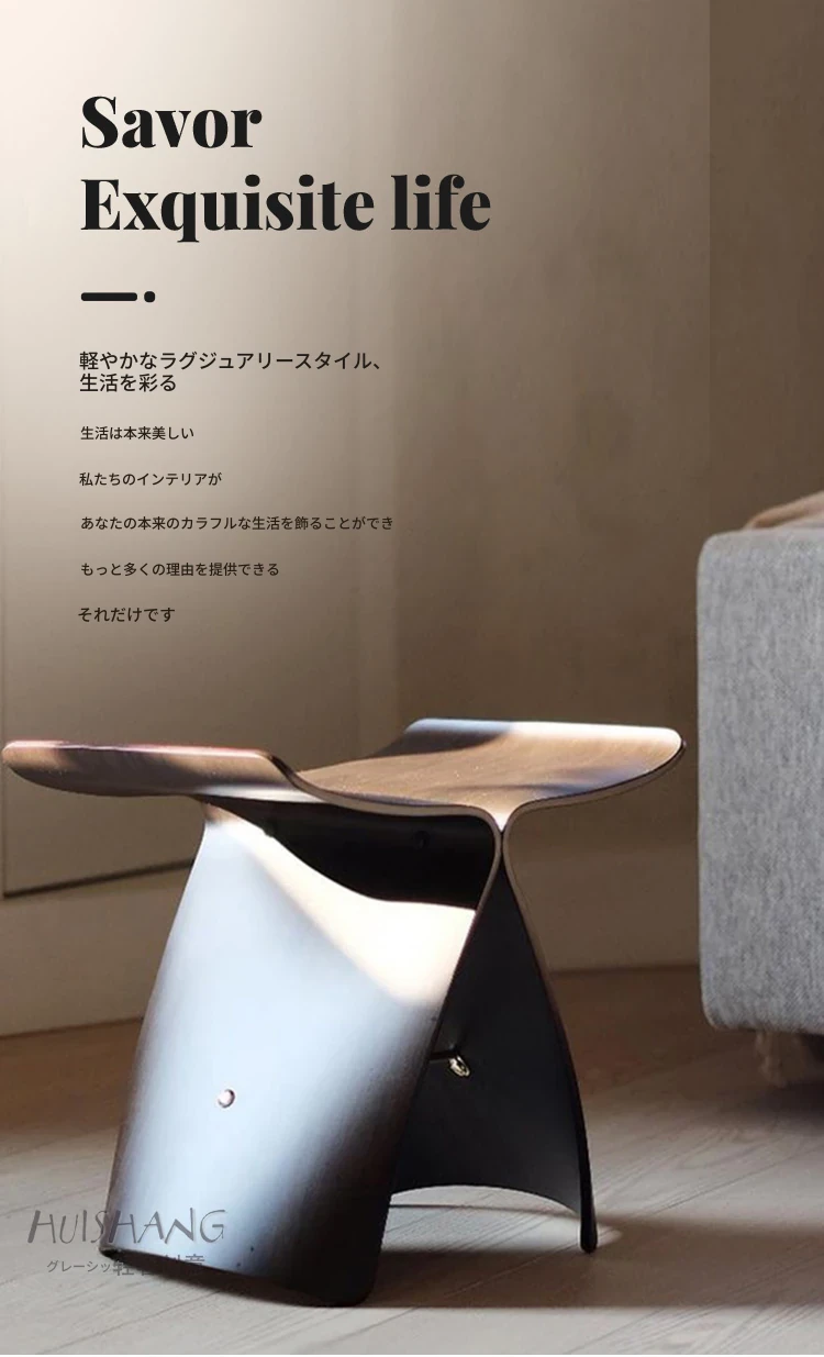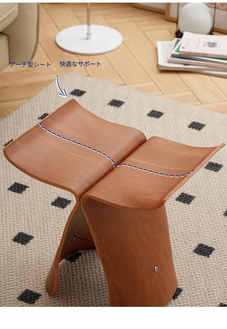 デンマークのクリエイティブデザイナーによるバタフライスツール!シンプルでスタイリッシュな北欧デザインの靴替え椅子、あなたのインテリアにぴったりのアイテムです。おしゃれな空間を演出しませんか?