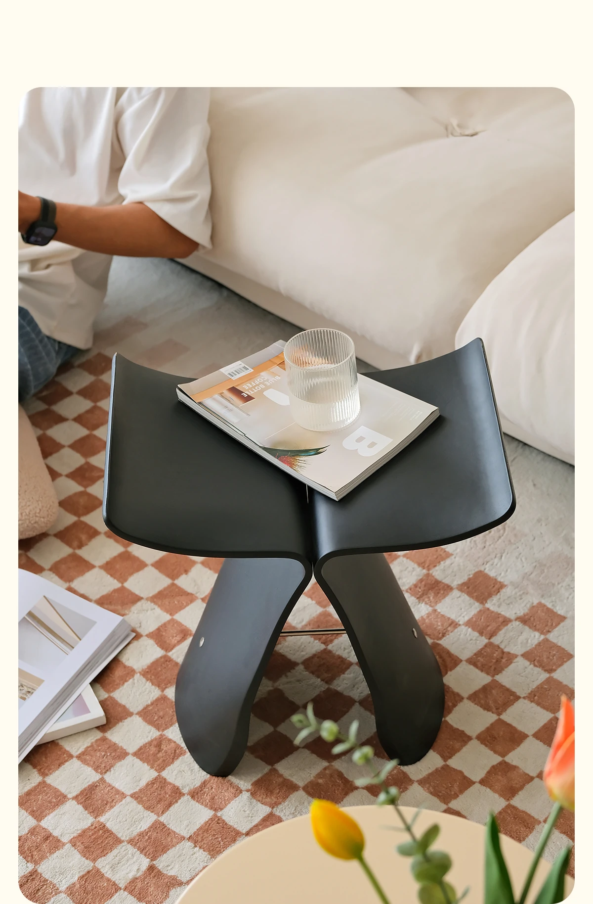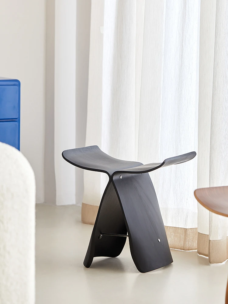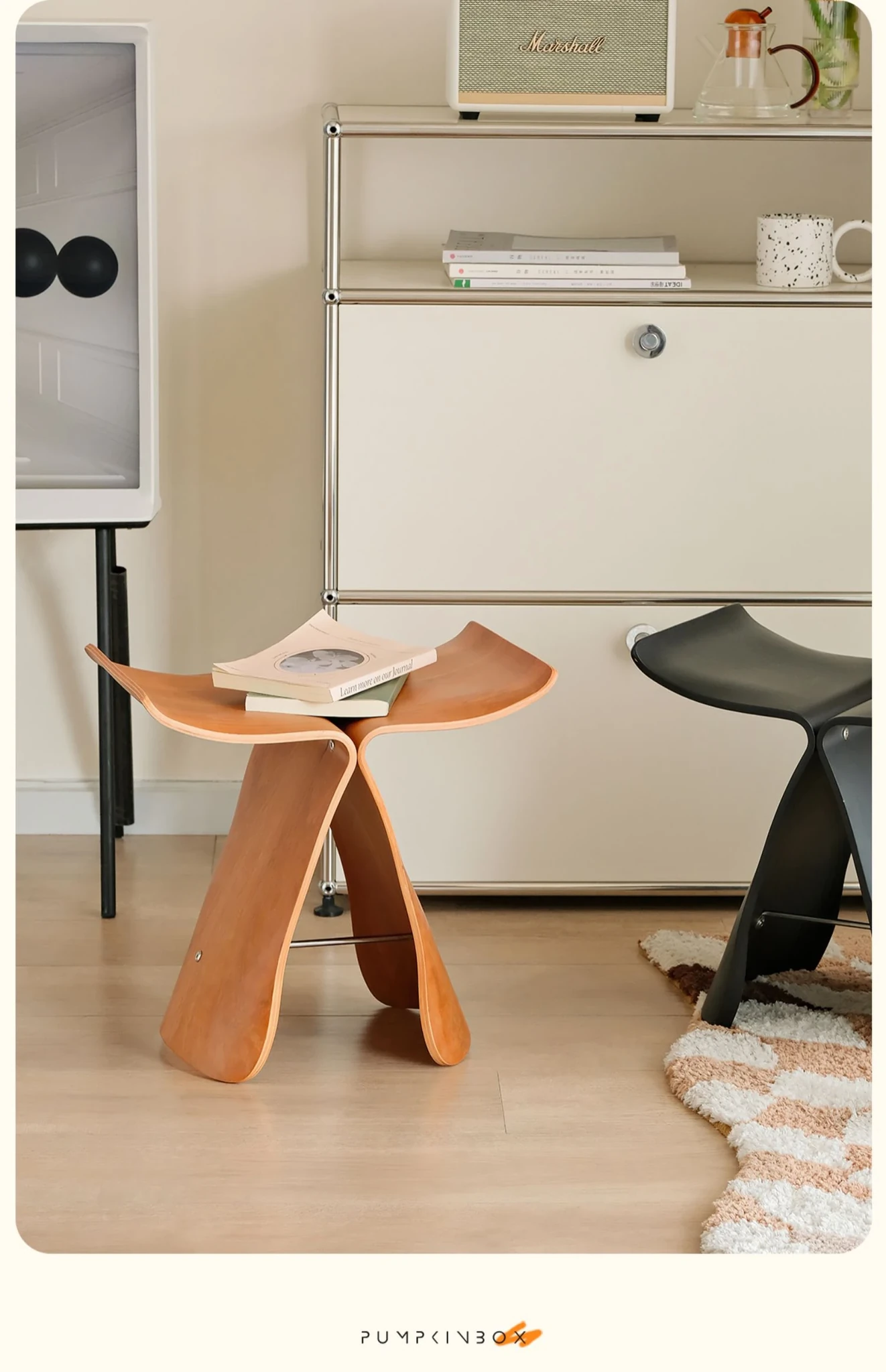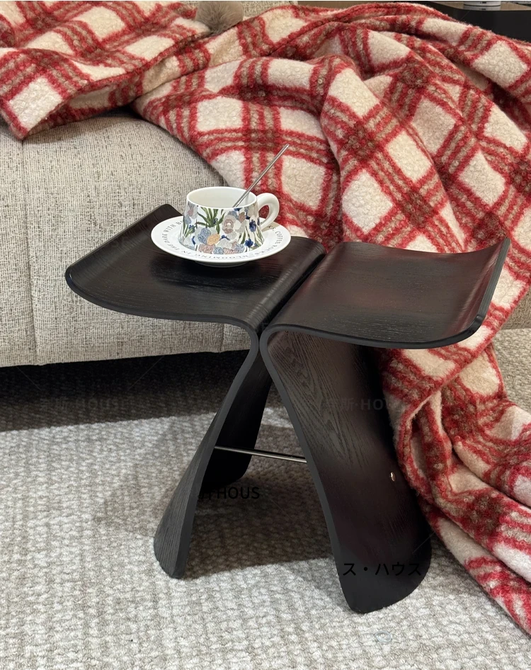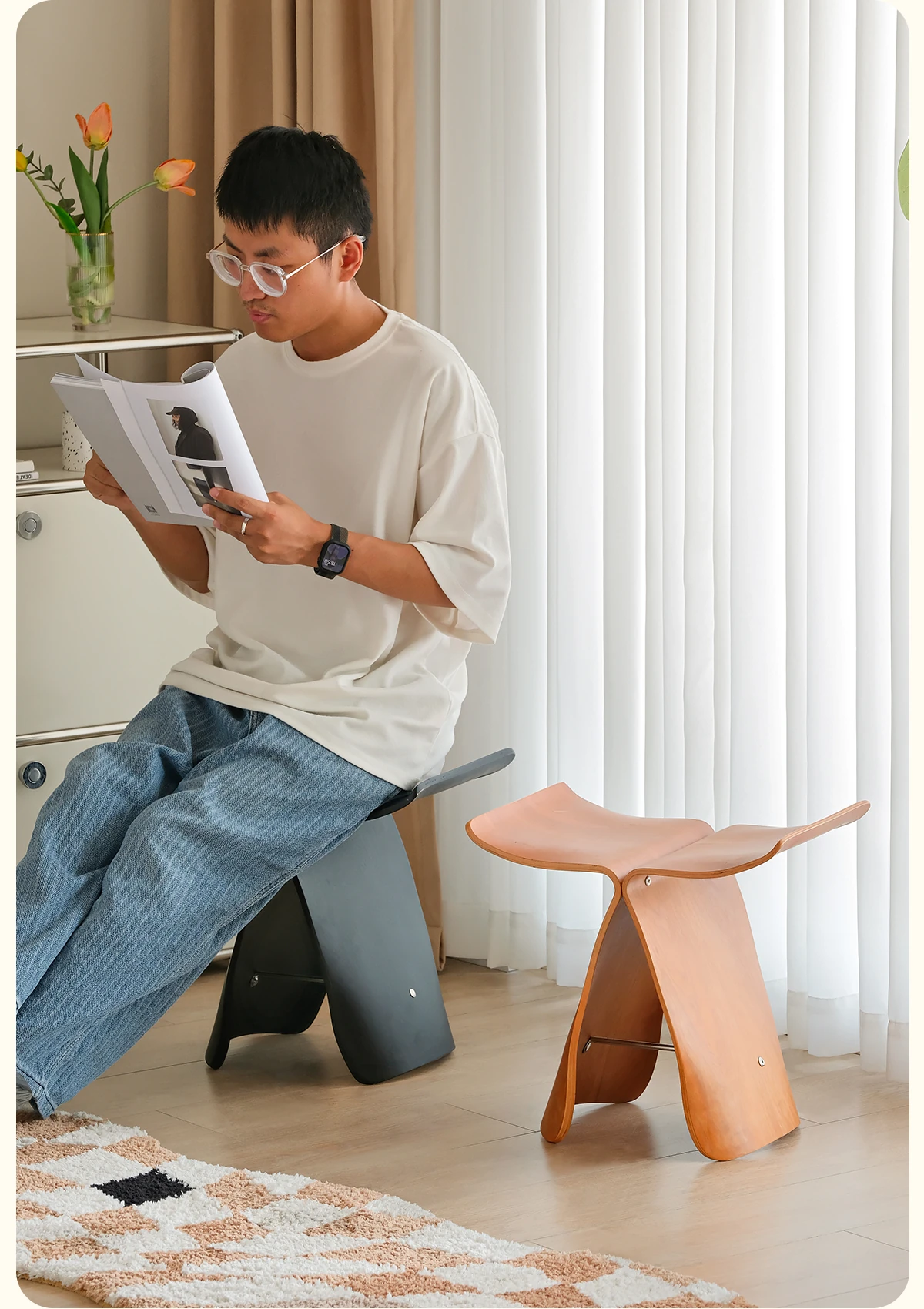 デンマークのクリエイティブデザイナーによるバタフライスツール!シンプルでスタイリッシュな北欧デザインの靴替え椅子、あなたのインテリアにぴったりのアイテムです。おしゃれな空間を演出しませんか?