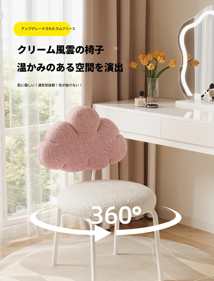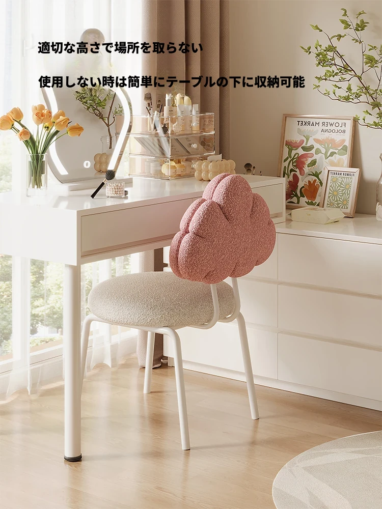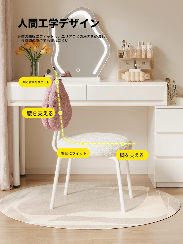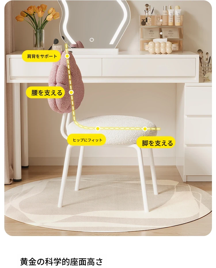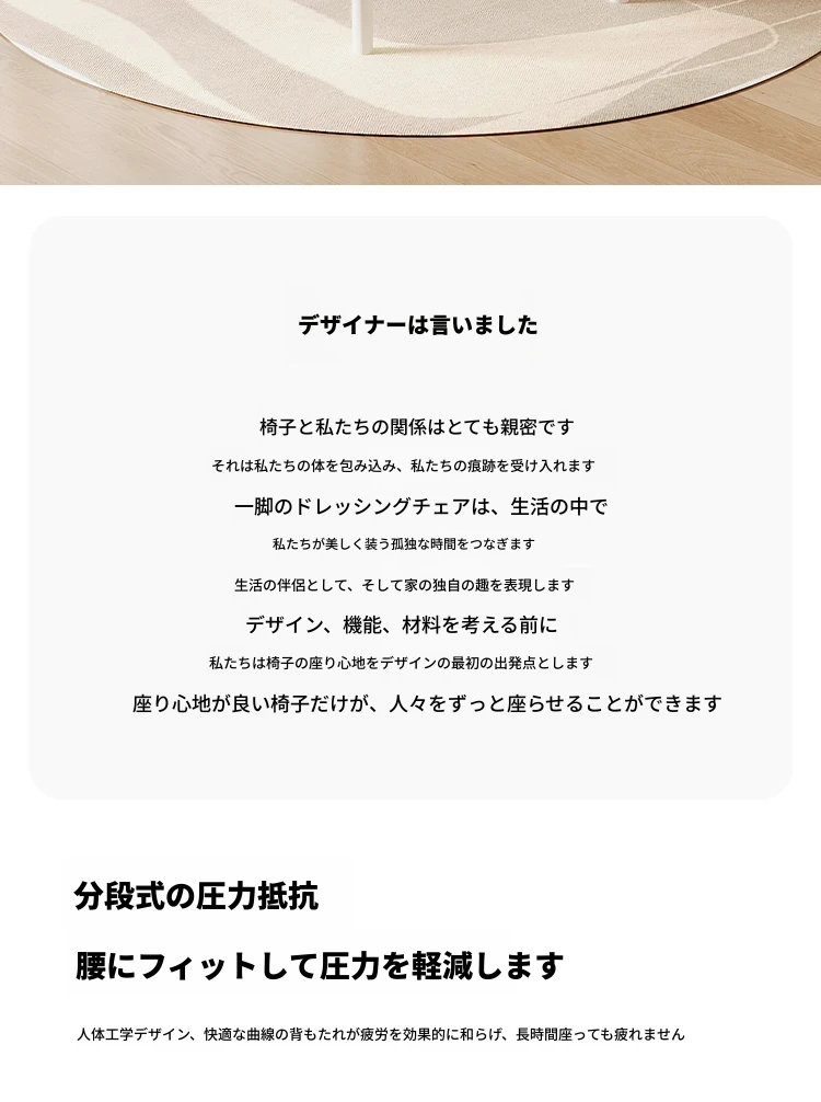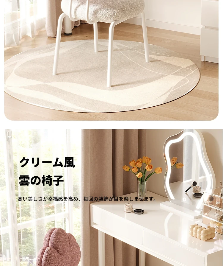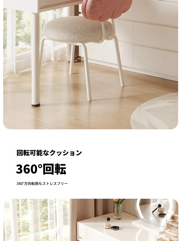 クリーム風の化粧台と化粧椅子セット - 高級感漂う回転式の背もたれ付きチェアで、女の子の夢の寝室を演出!自宅でのメイクアップタイムを特別なものに。