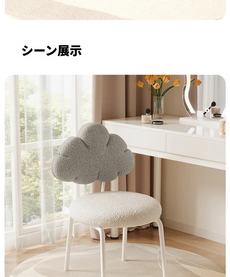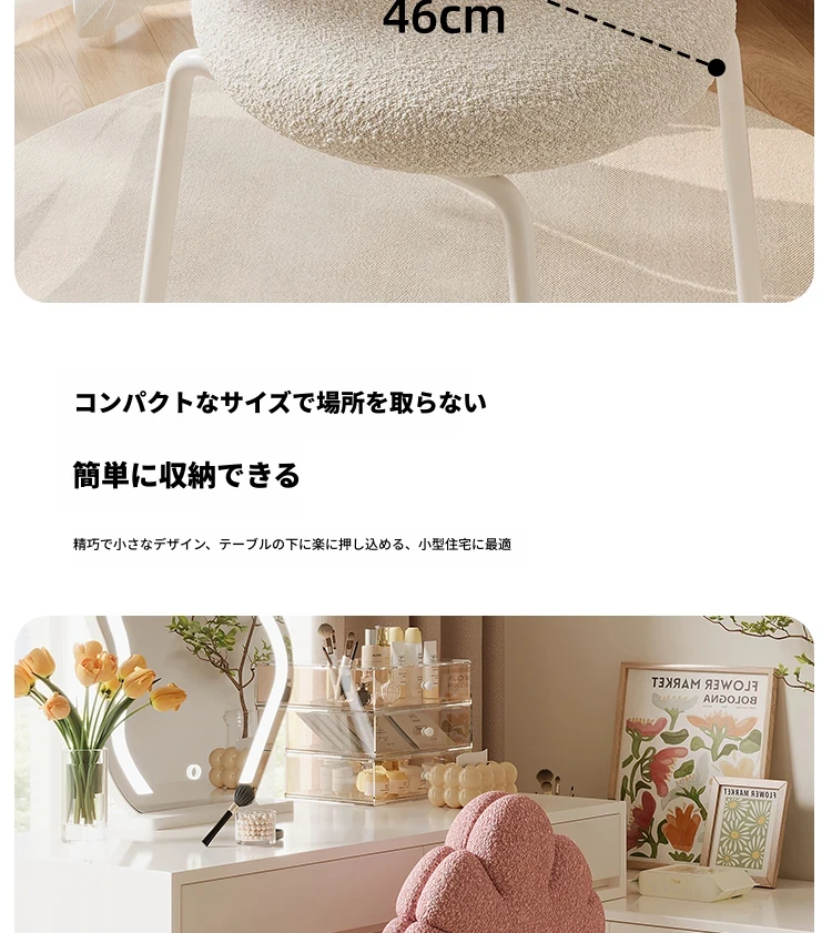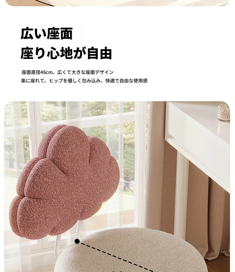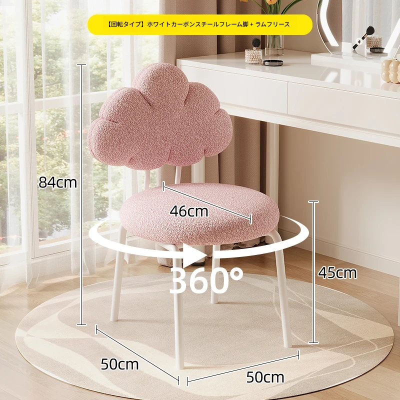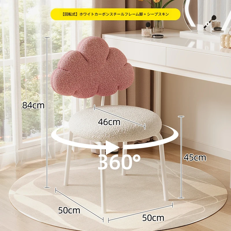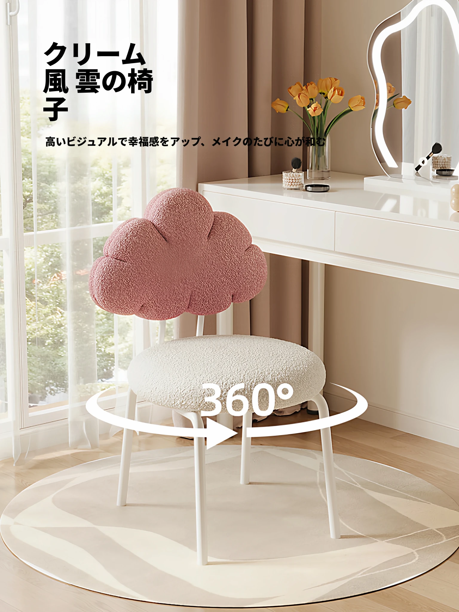 クリーム風の化粧台と化粧椅子セット - 高級感漂う回転式の背もたれ付きチェアで、女の子の夢の寝室を演出!自宅でのメイクアップタイムを特別なものに。
