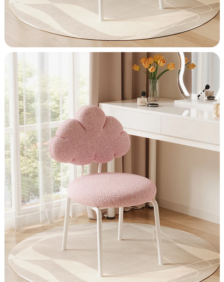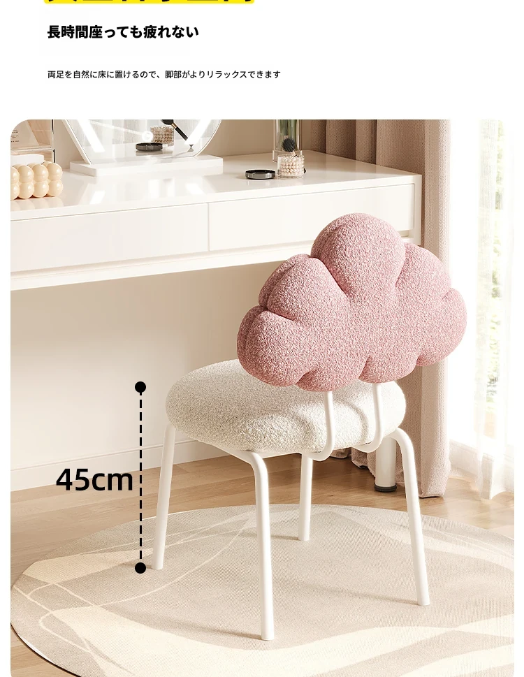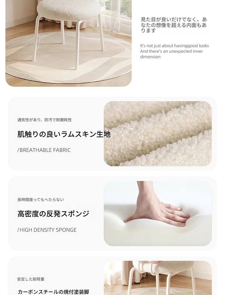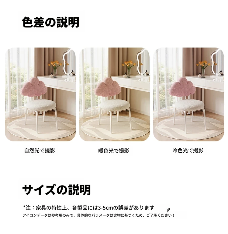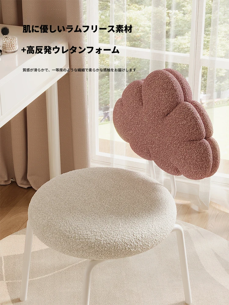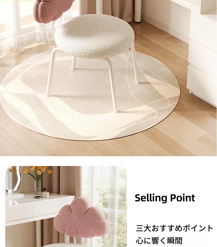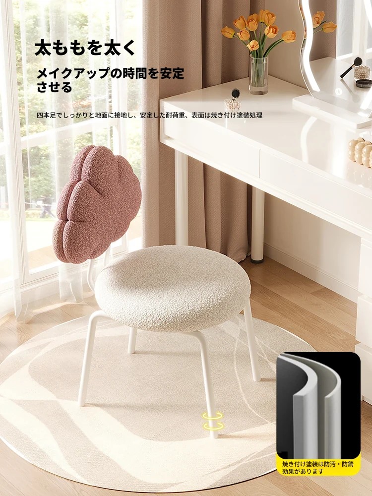 クリーム風の化粧台と化粧椅子セット - 高級感漂う回転式の背もたれ付きチェアで、女の子の夢の寝室を演出!自宅でのメイクアップタイムを特別なものに。
