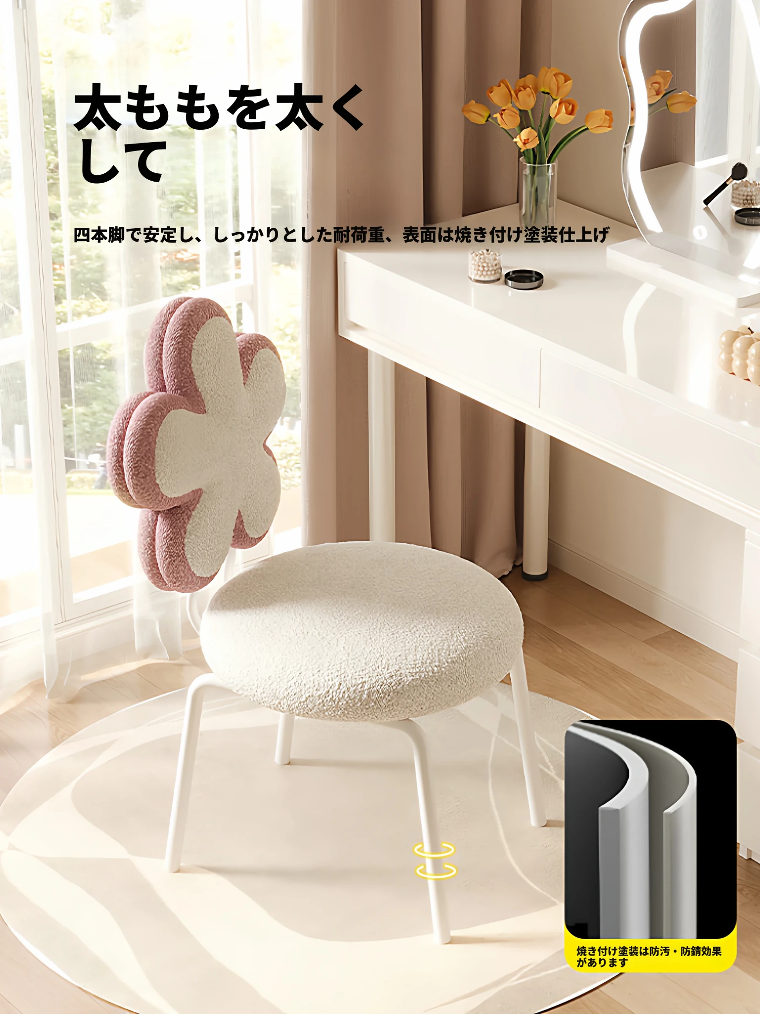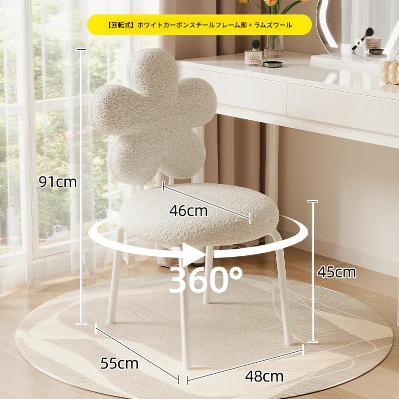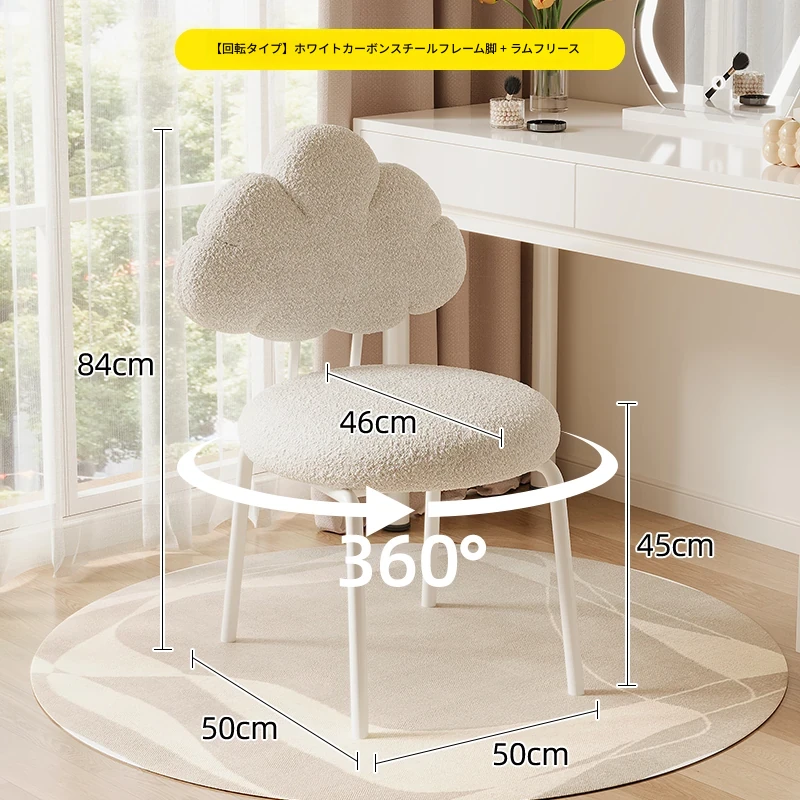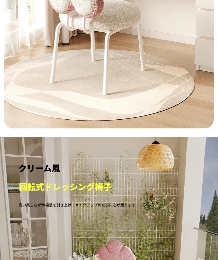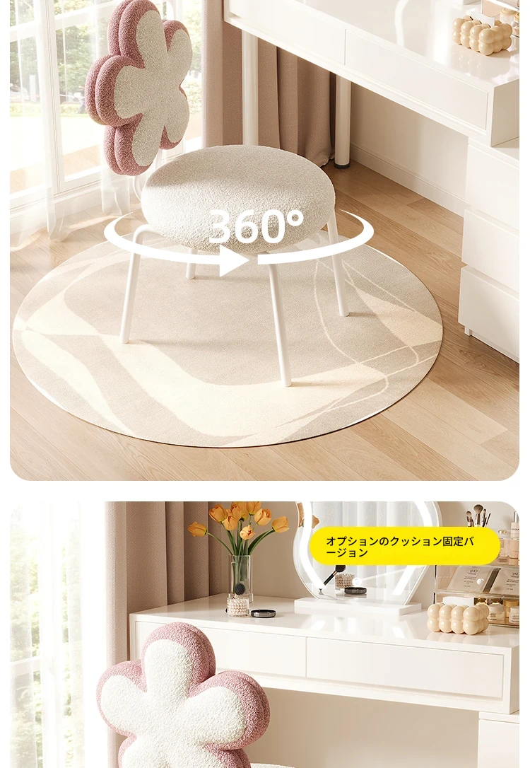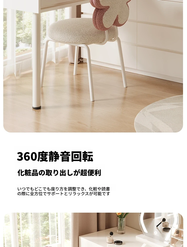 クリーム風化粧台&化粧椅子|軽奢感あふれる回転式バックレスト付き|女性のための素敵な寝室にぴったりのスタイリッシュチェア!