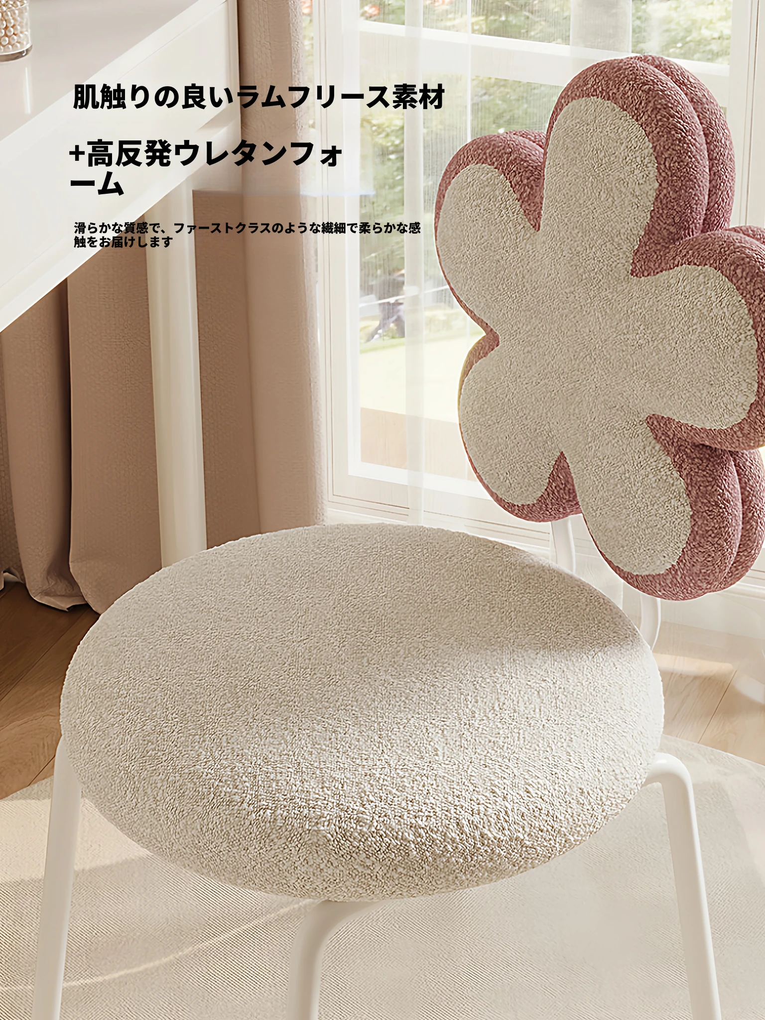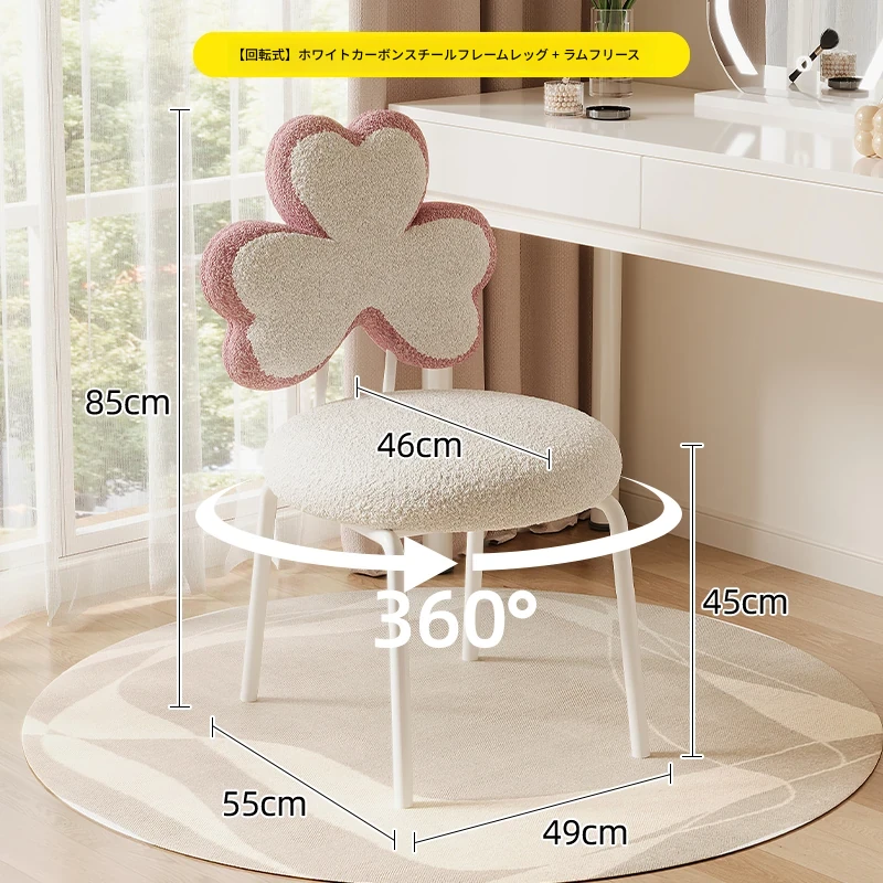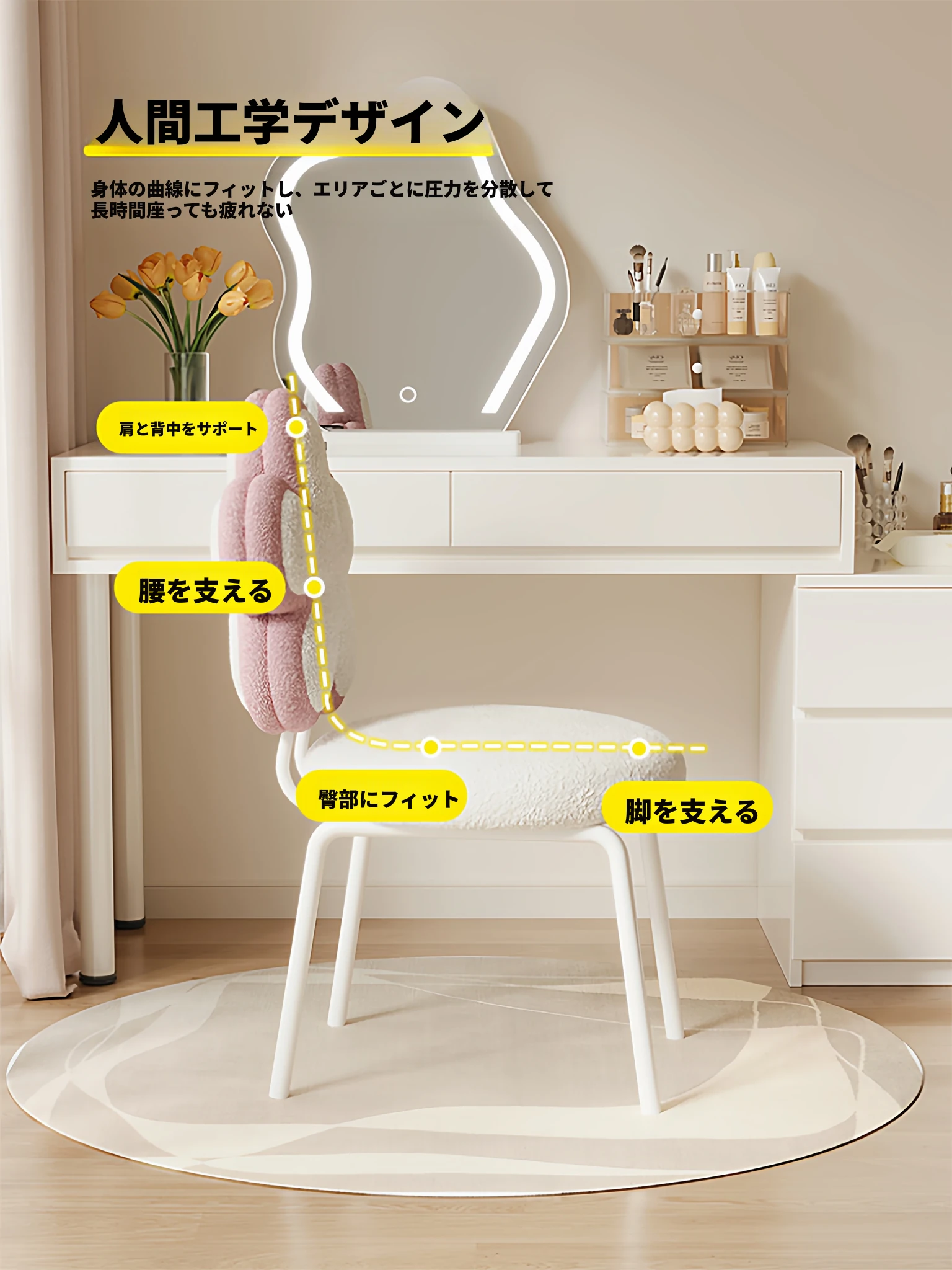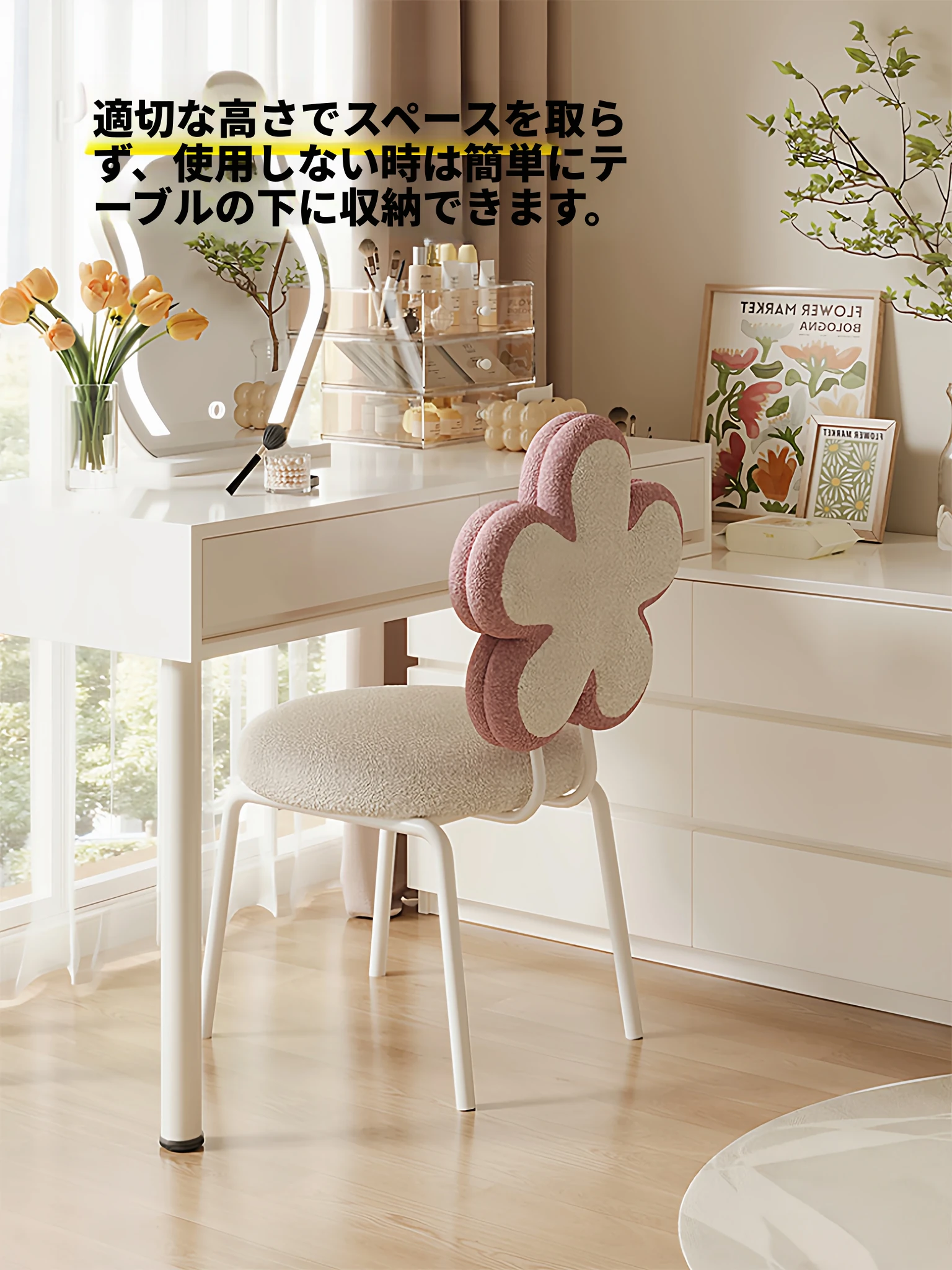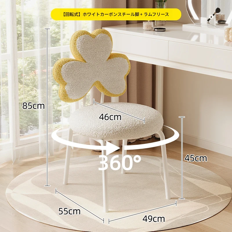 クリーム風化粧台&化粧椅子|軽奢感あふれる回転式バックレスト付き|女性のための素敵な寝室にぴったりのスタイリッシュチェア!