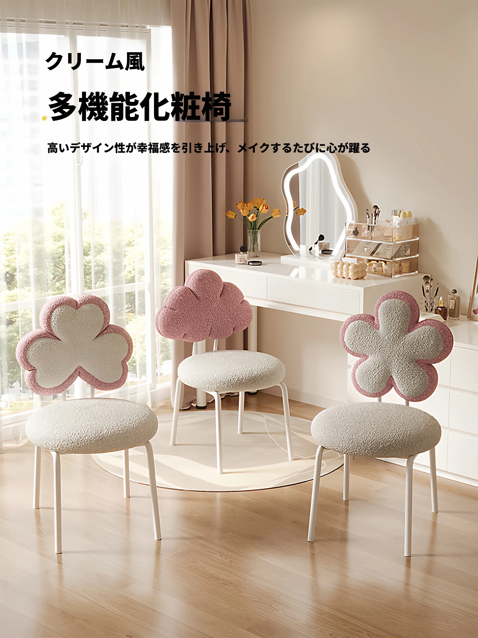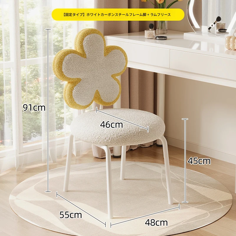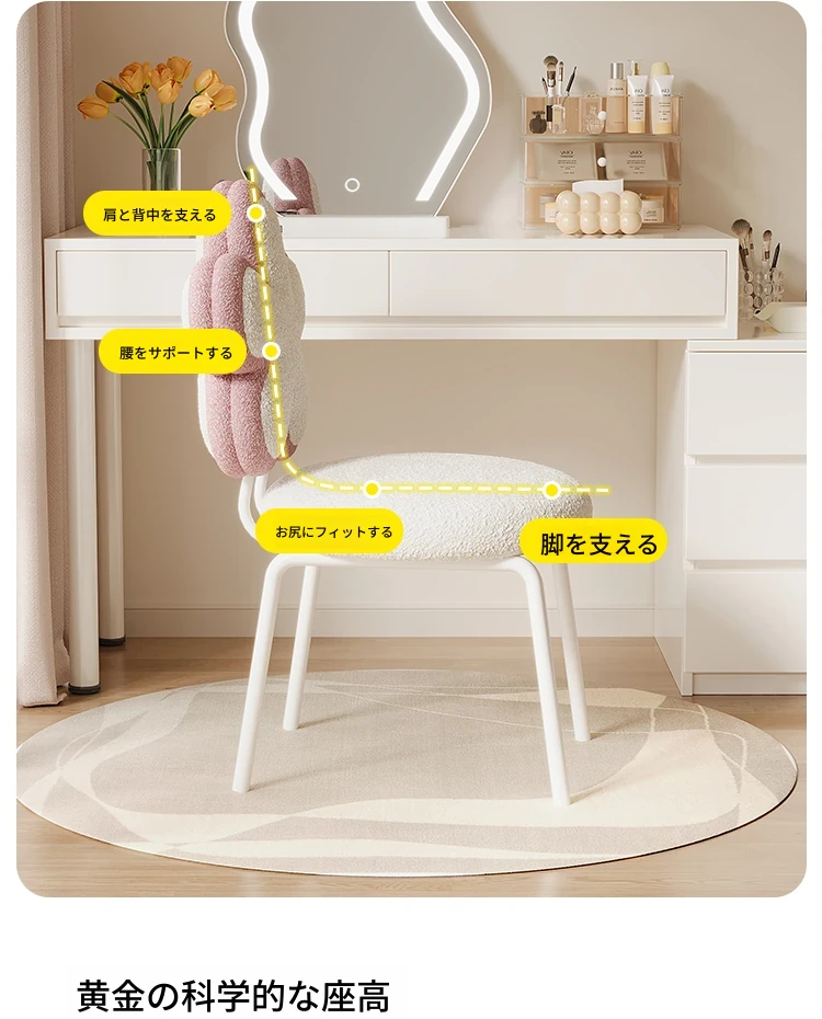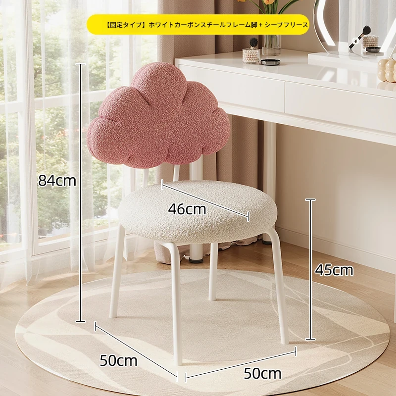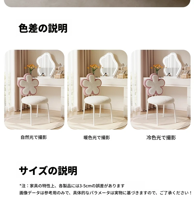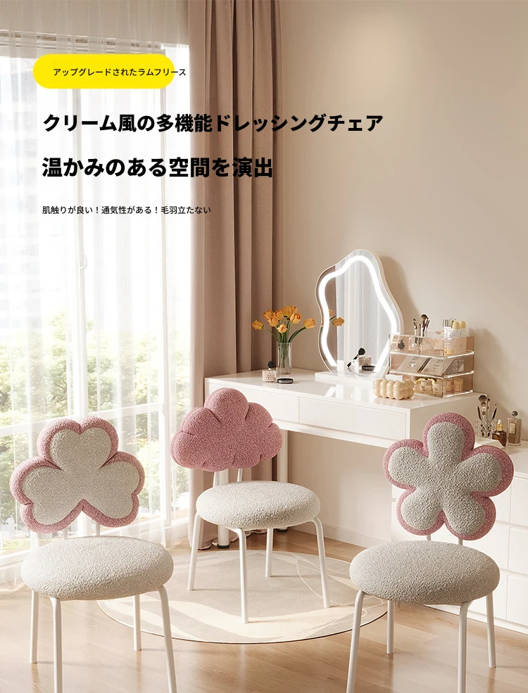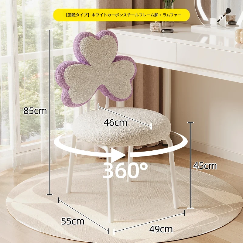 クリーム風化粧台&化粧椅子|軽奢感あふれる回転式バックレスト付き|女性のための素敵な寝室にぴったりのスタイリッシュチェア!