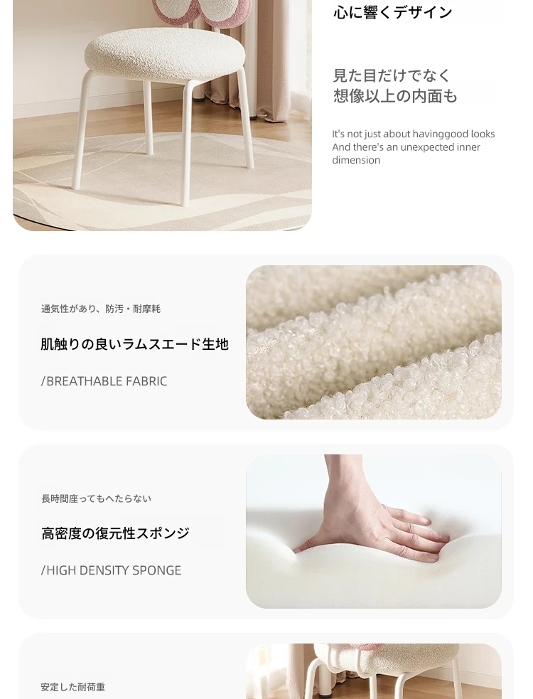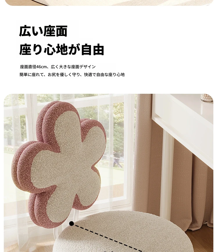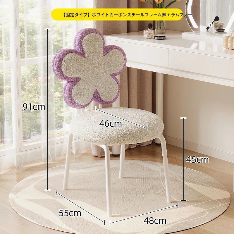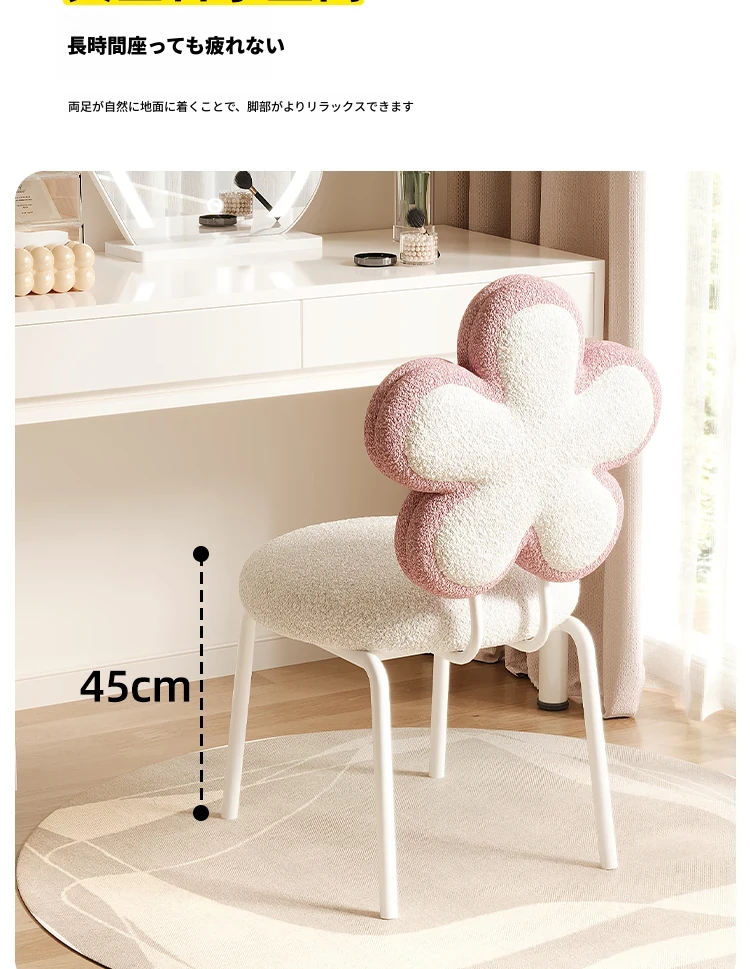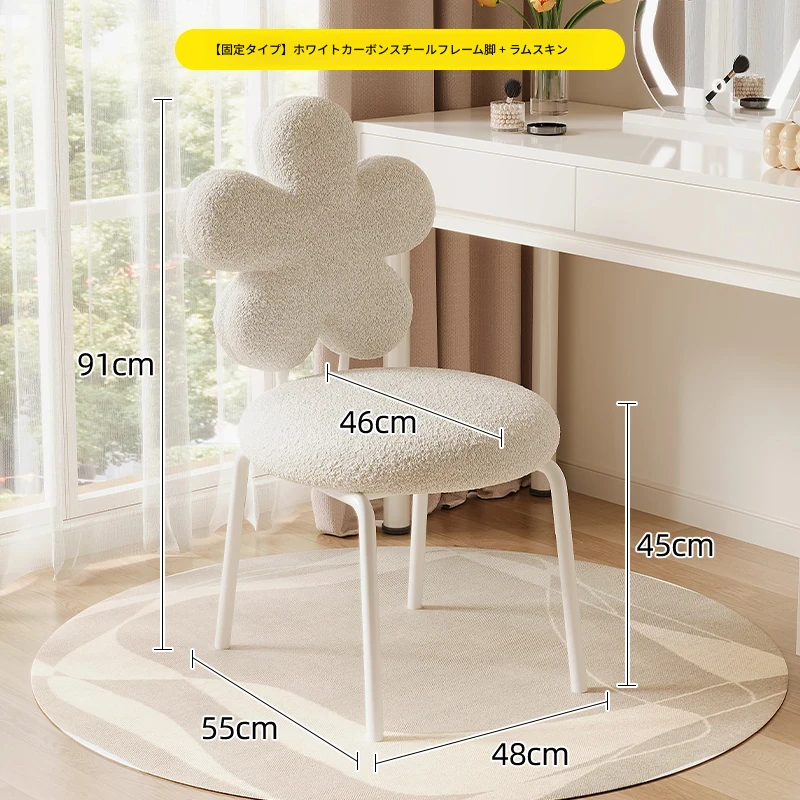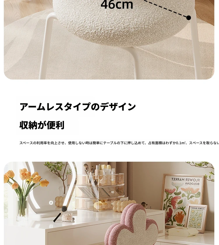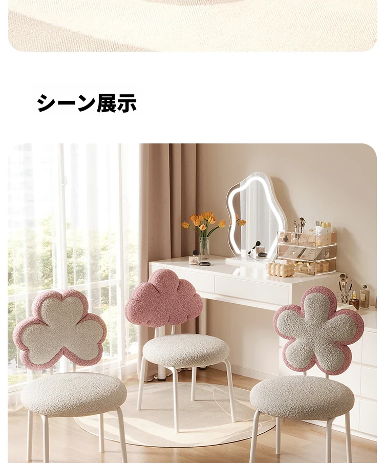 クリーム風化粧台&化粧椅子|軽奢感あふれる回転式バックレスト付き|女性のための素敵な寝室にぴったりのスタイリッシュチェア!