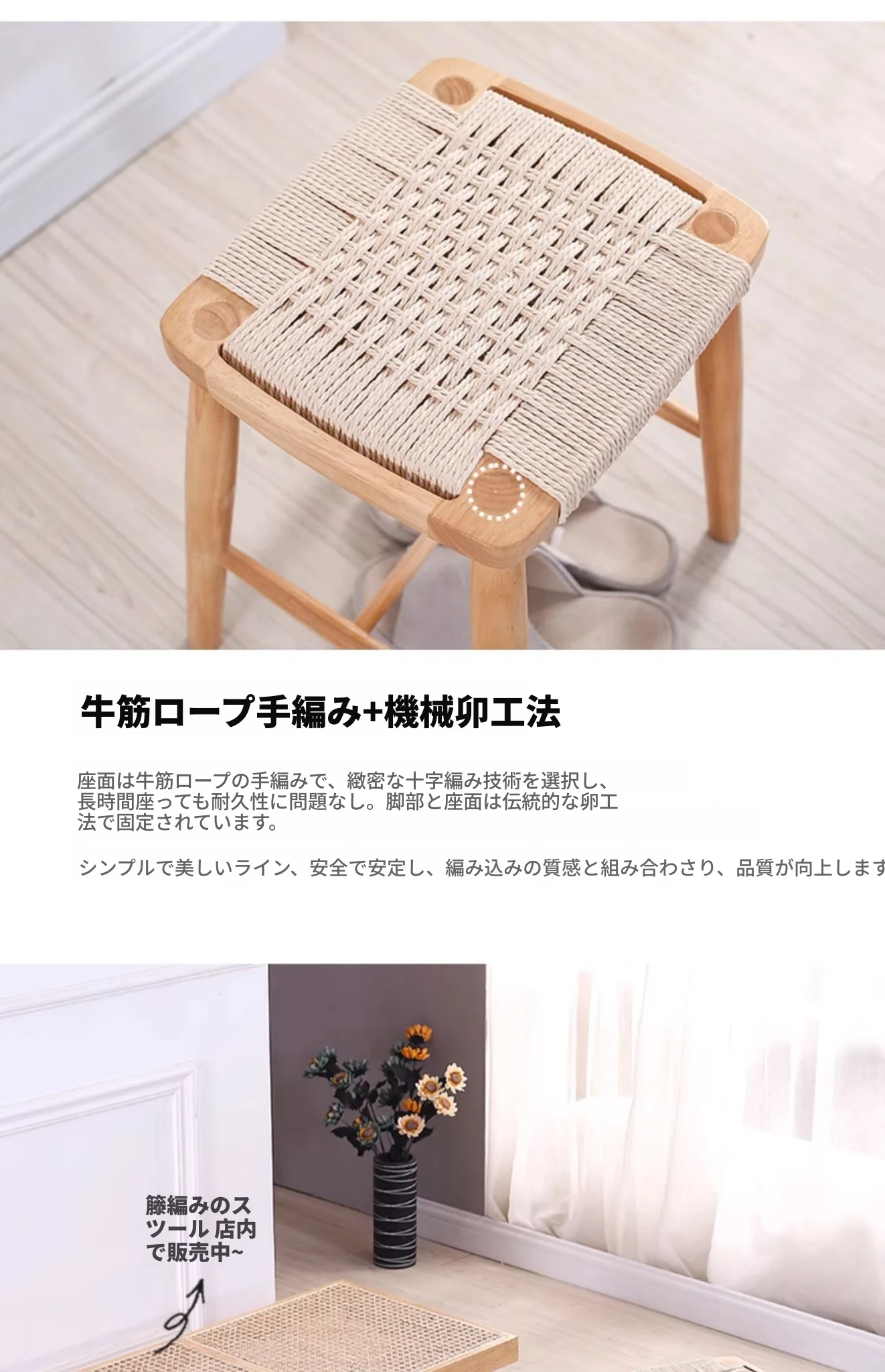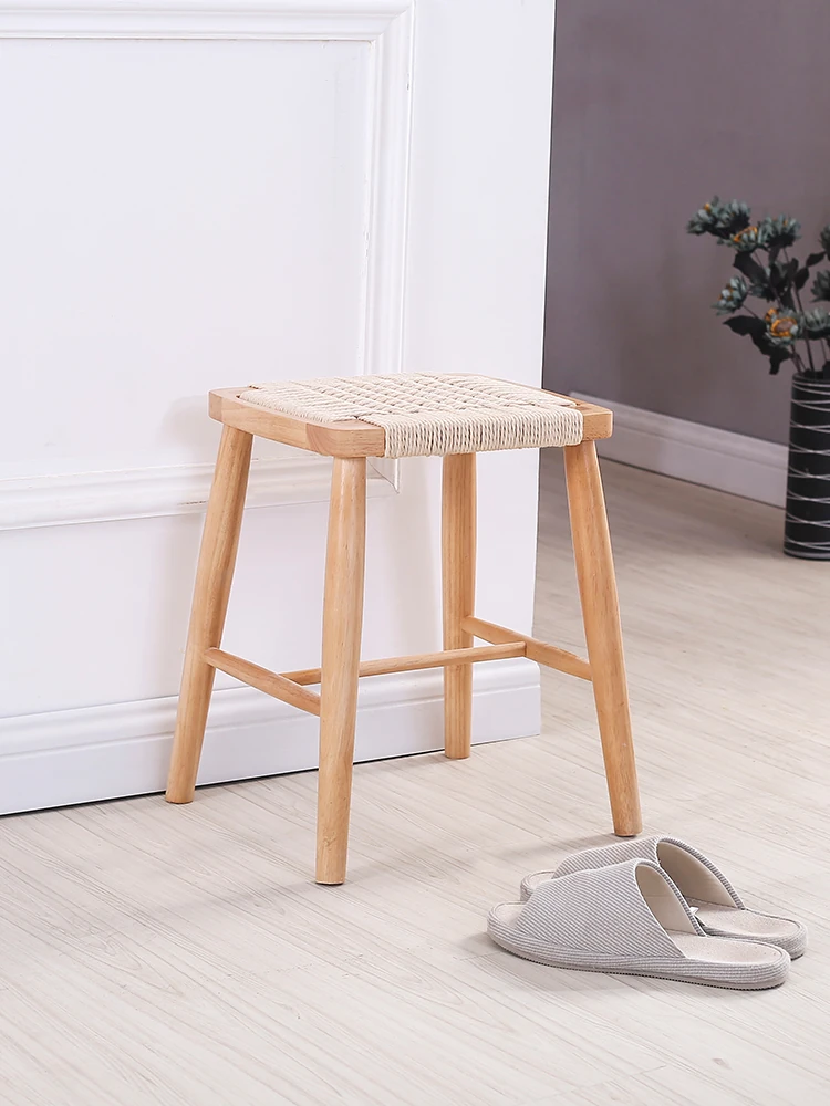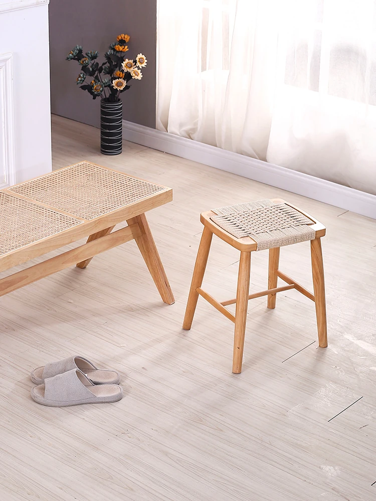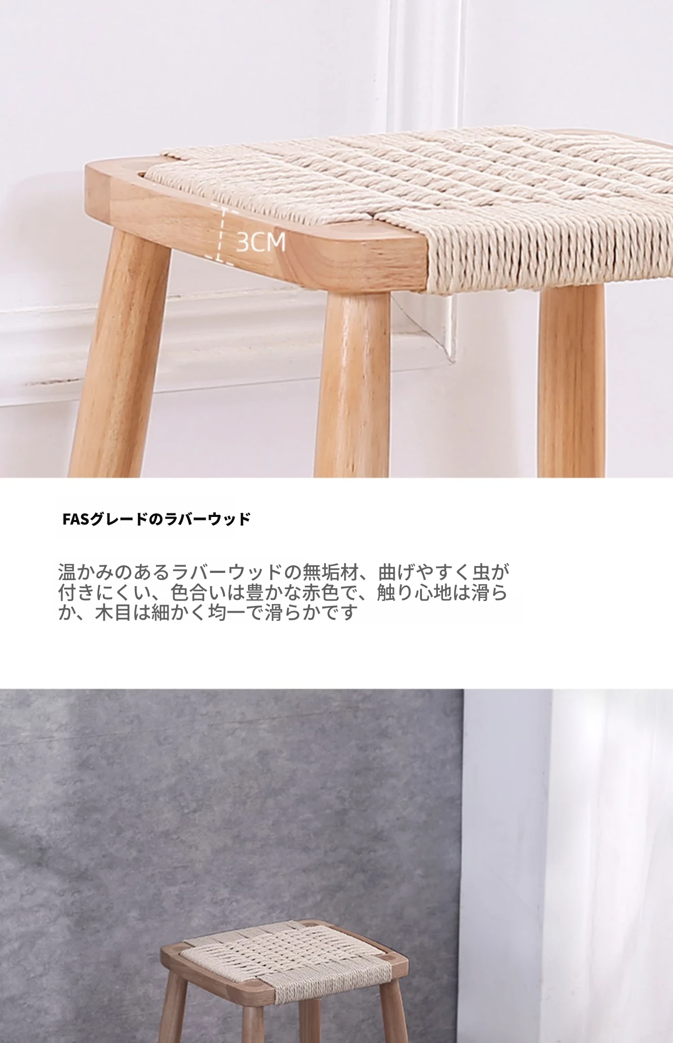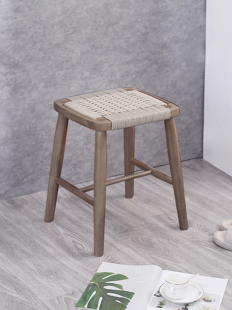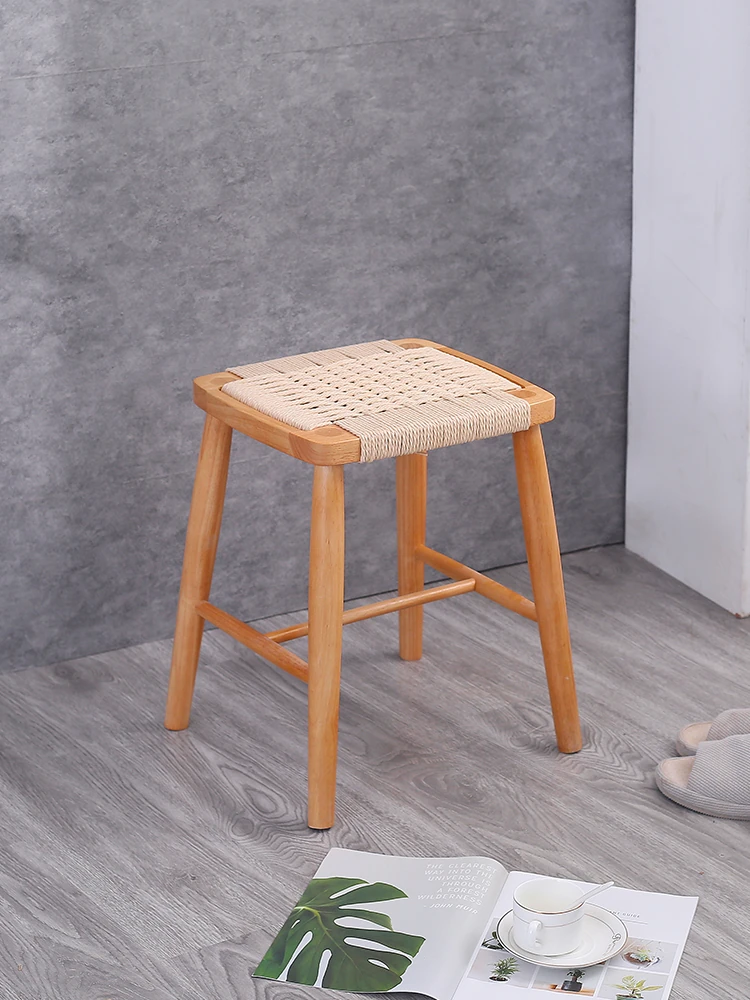 縄編みの四角いスツール - チェリーウッド製の実用的なダイニングスツール。北欧モダンデザインの家庭用小さな編みスツール、化粧台にも最適!おしゃれで機能的な空間を演出します。