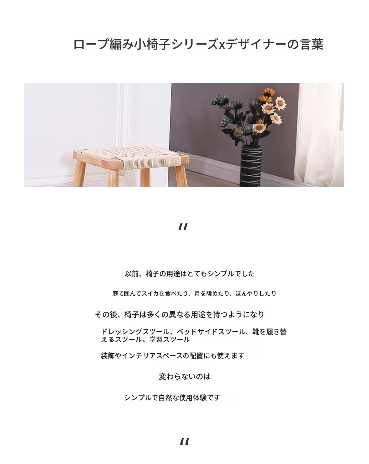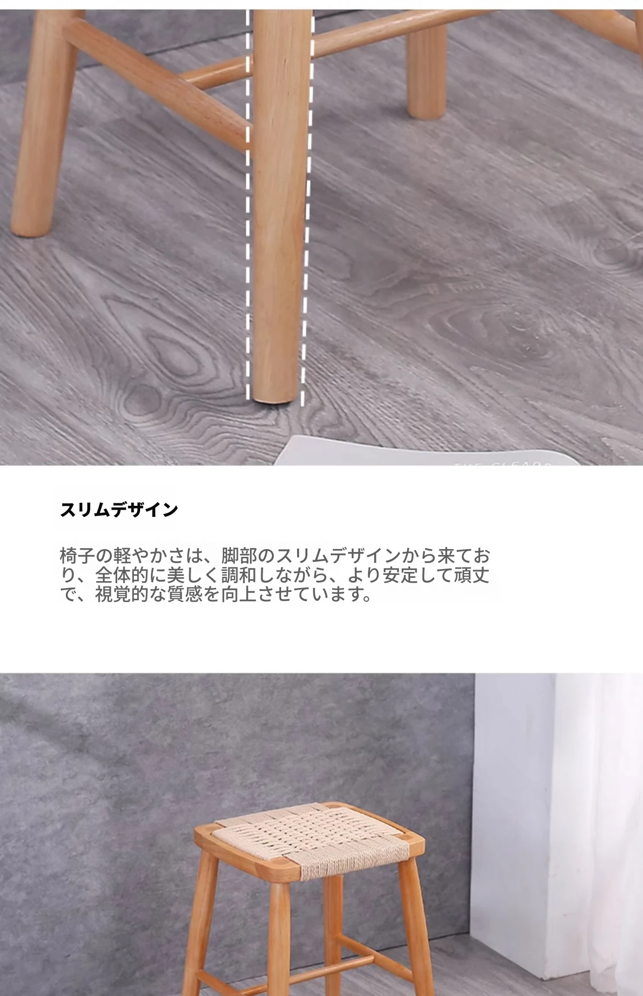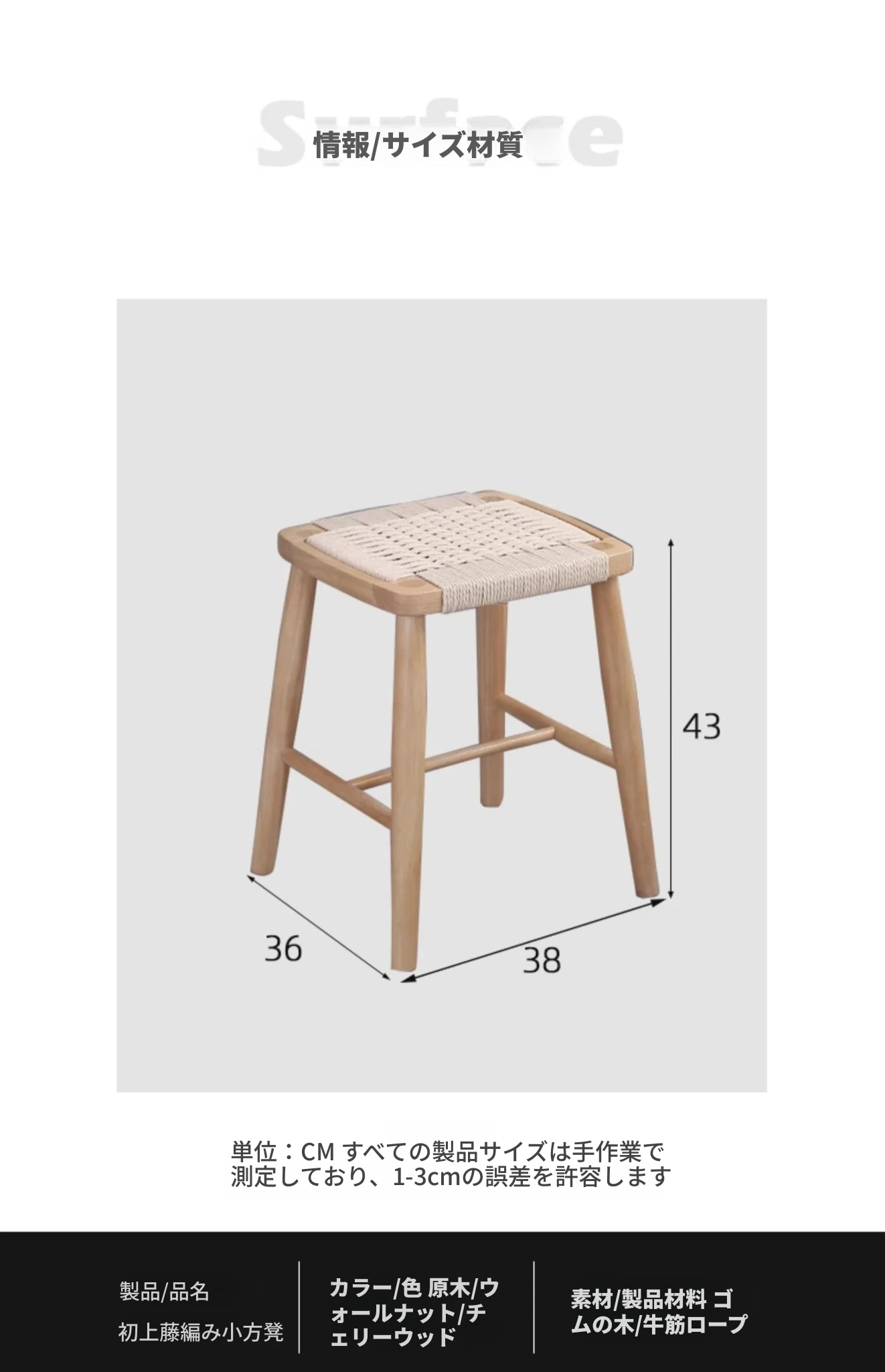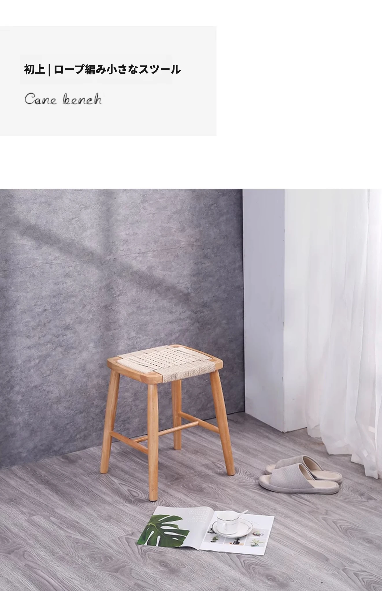縄編みの四角いスツール - チェリーウッド製の実用的なダイニングスツール。北欧モダンデザインの家庭用小さな編みスツール、化粧台にも最適!おしゃれで機能的な空間を演出します。