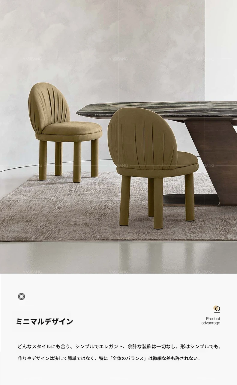 イタリアンミニマルデザインの布製ダイニングチェア - 高級感あふれる一人掛け椅子、別荘やレストランに最適!背もたれ付きで、デザイナー風の化粧椅子としても大活躍!あなたの空間を格上げするアイテムです。