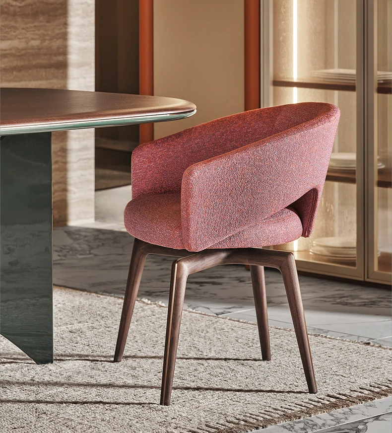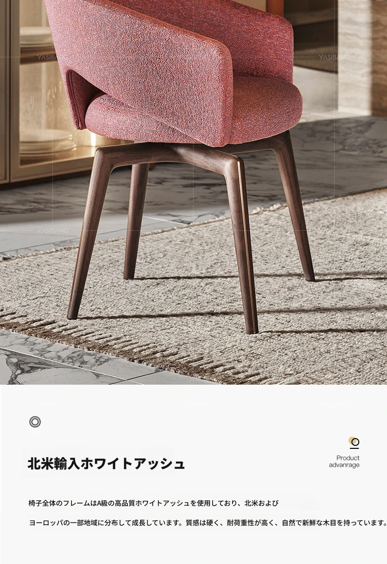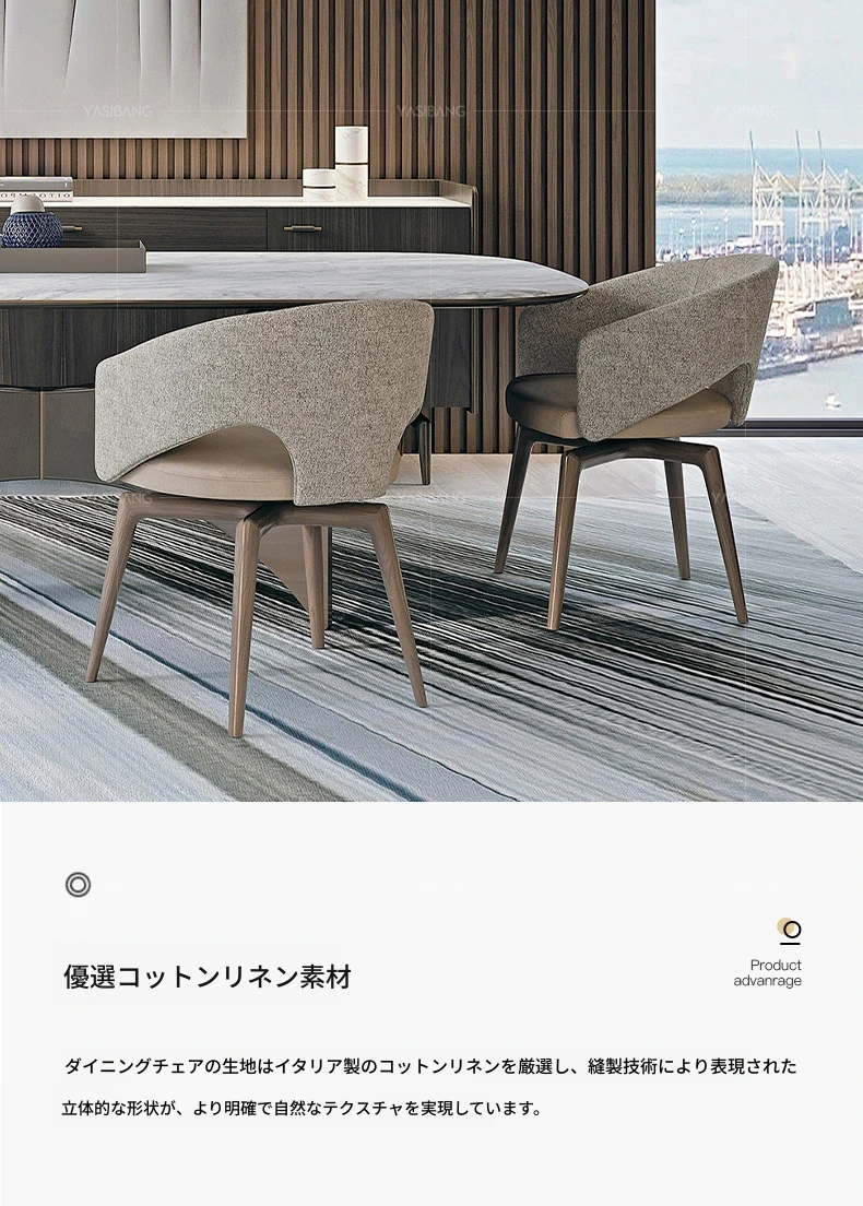 イタリアンミニマルファブリックダイニングチェア|家庭用無垢材使用|シンプルでモダンなデザイン|化粧台やリビングに最適|おしゃれで快適なリラックスチェア|書斎にもぴったり!