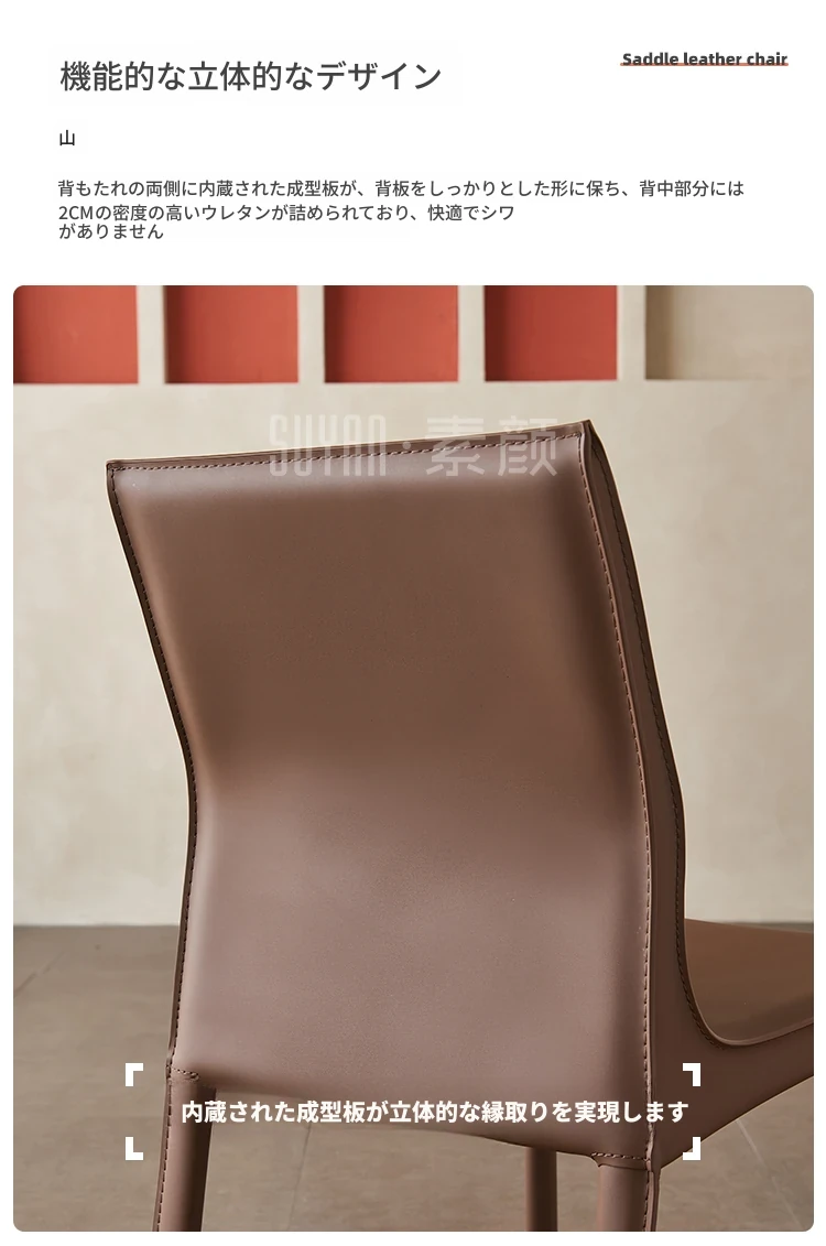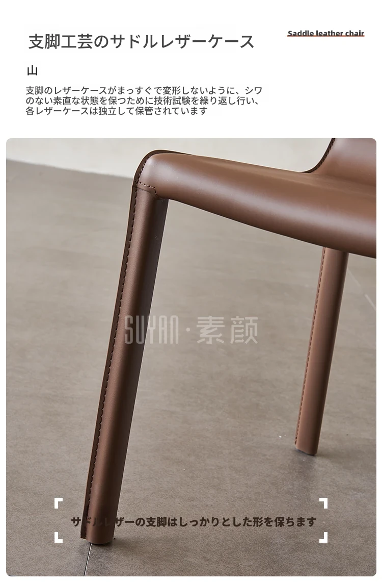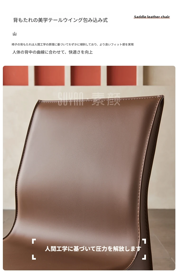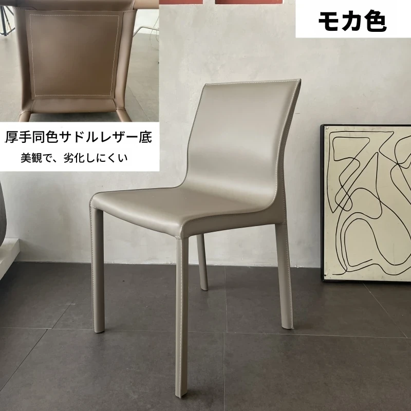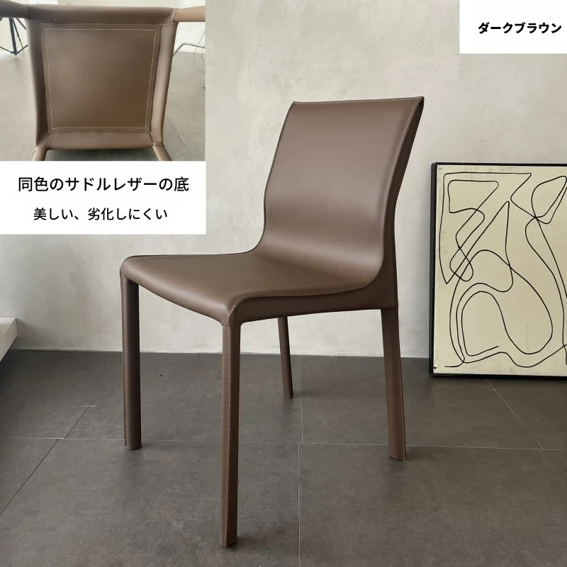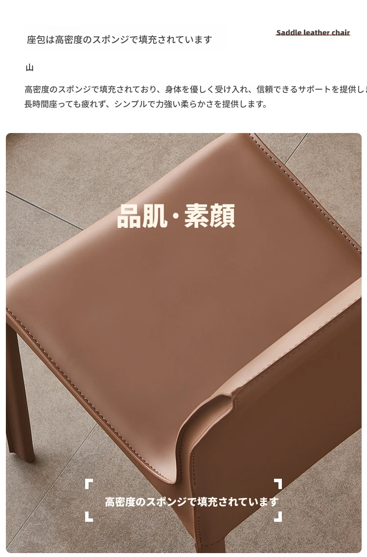 イタリアンミニマルデザインのサドルレザー食卓椅子 - 高級感あふれる背もたれ付き、ダイニングや書斎に最適な北欧スタイル!おしゃれで快適な空間を演出します。