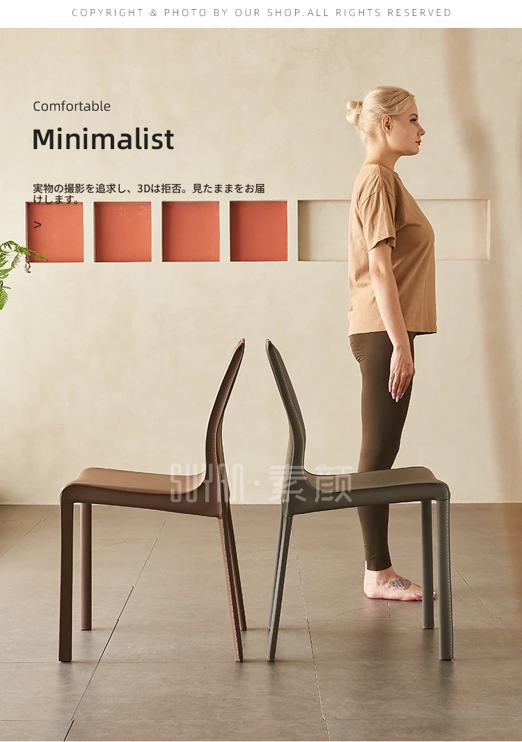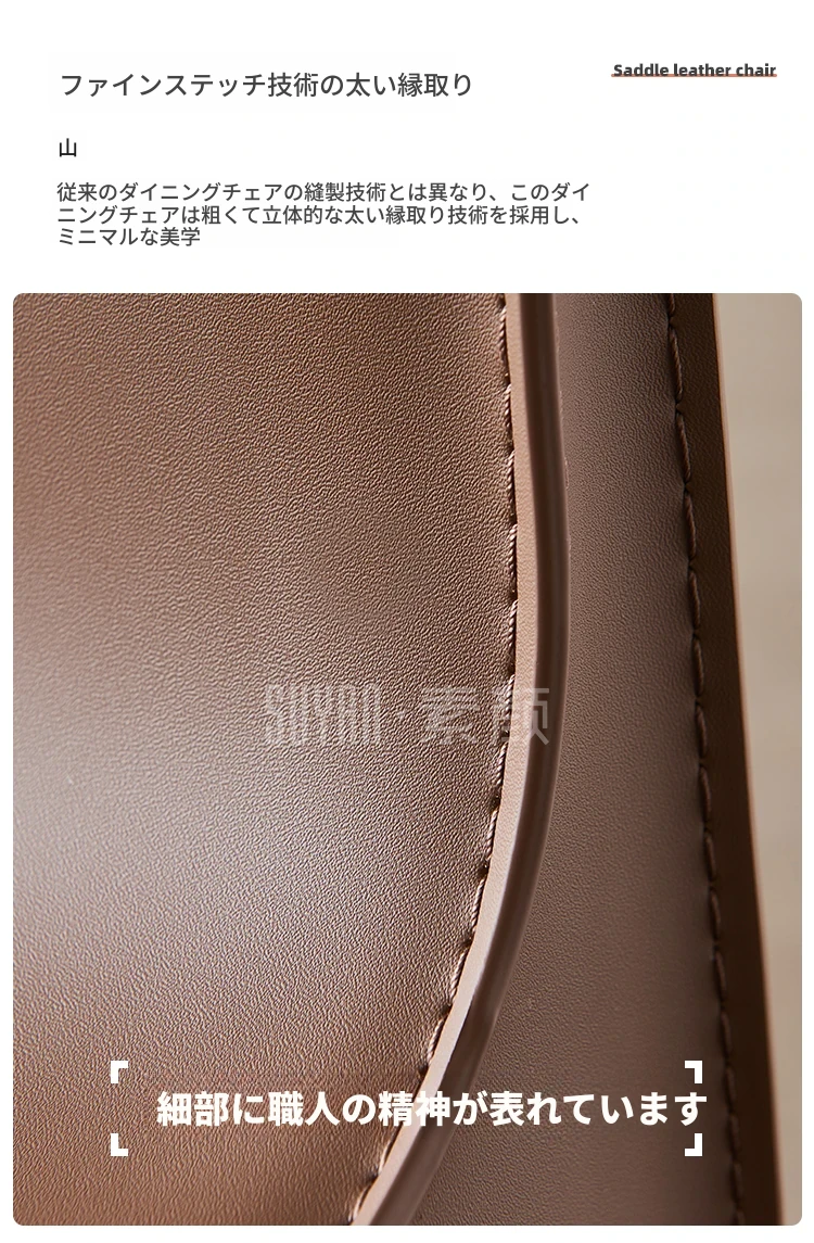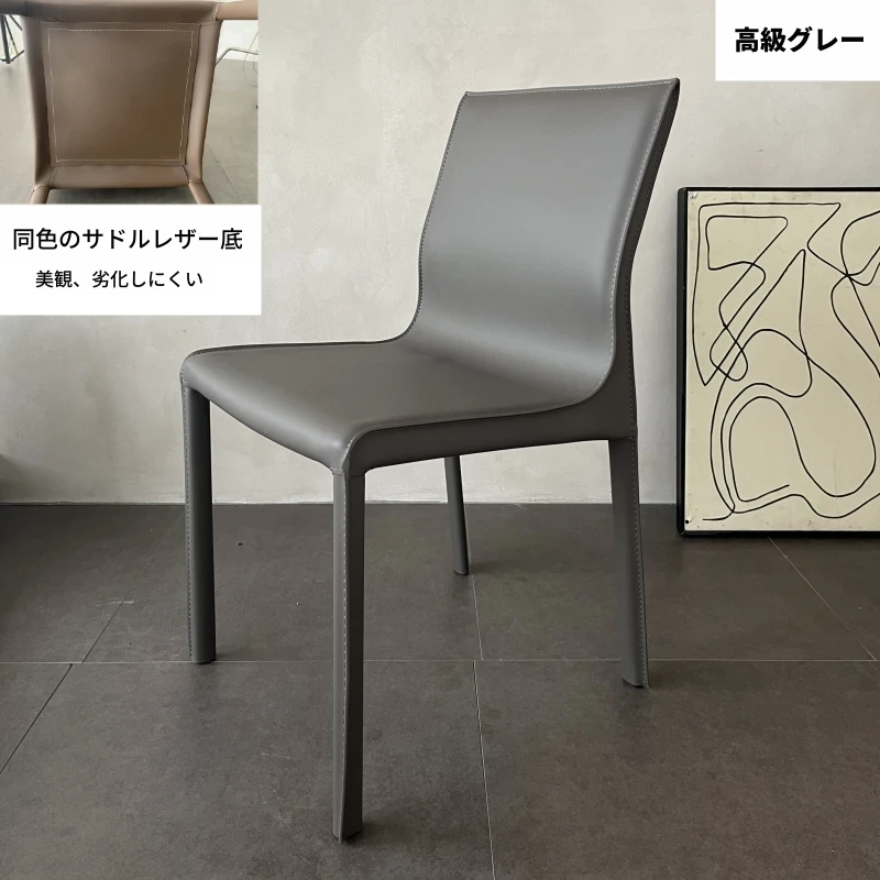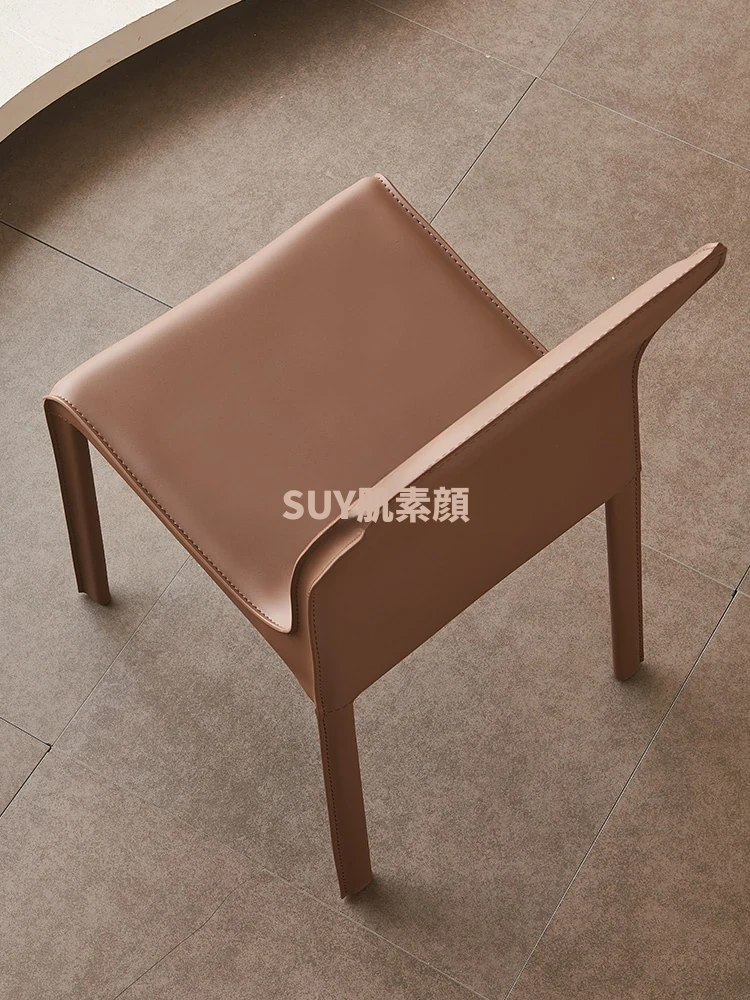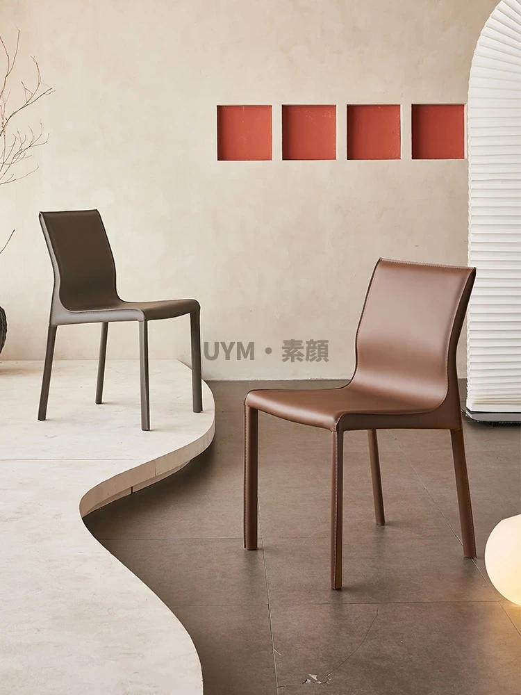 イタリアンミニマルデザインのサドルレザー食卓椅子 - 高級感あふれる背もたれ付き、ダイニングや書斎に最適な北欧スタイル!おしゃれで快適な空間を演出します。