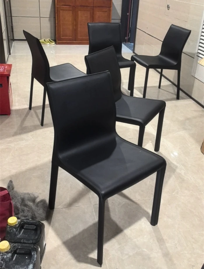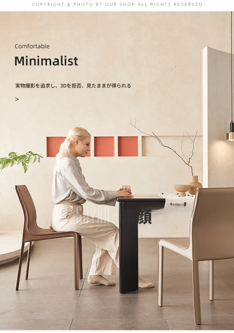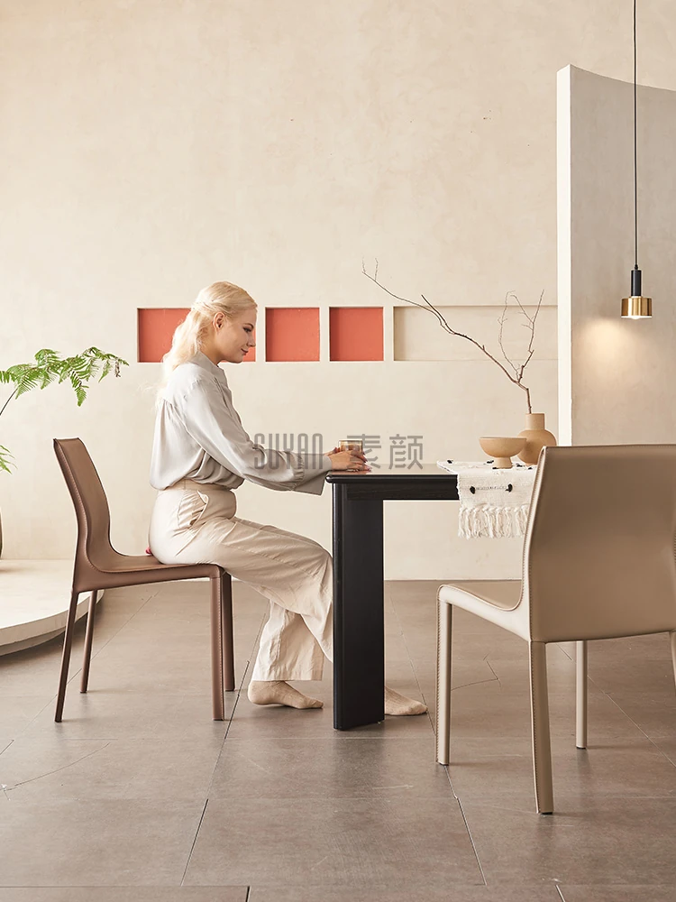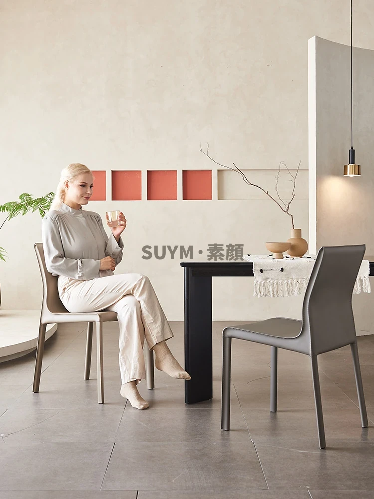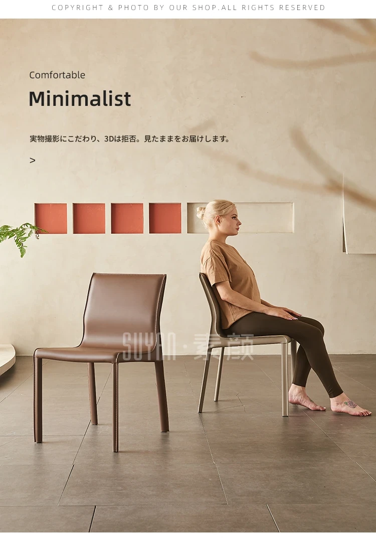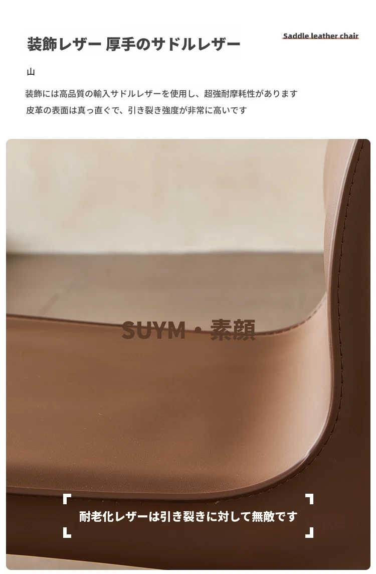 イタリアンミニマルデザインのサドルレザー食卓椅子 - 高級感あふれる背もたれ付き、ダイニングや書斎に最適な北欧スタイル!おしゃれで快適な空間を演出します。