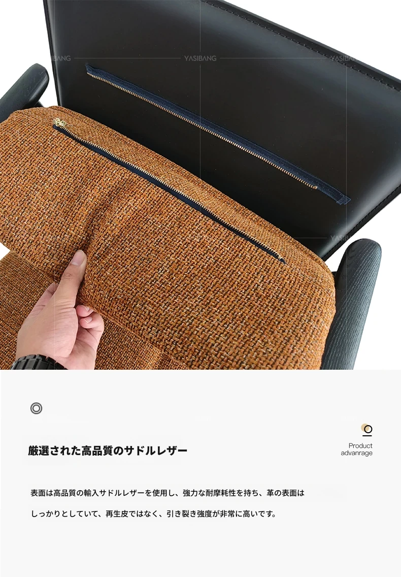 Verna ダイニングチェア(62*66*80cm)サドルレザー+コットンリネン