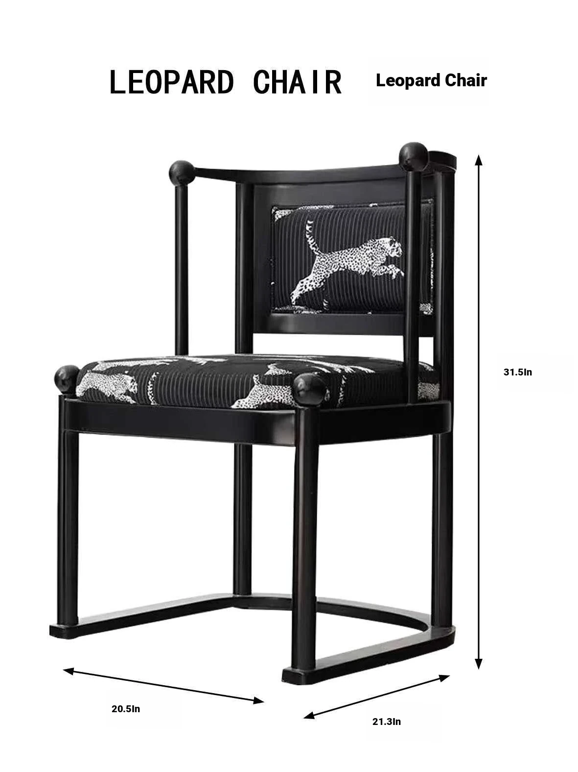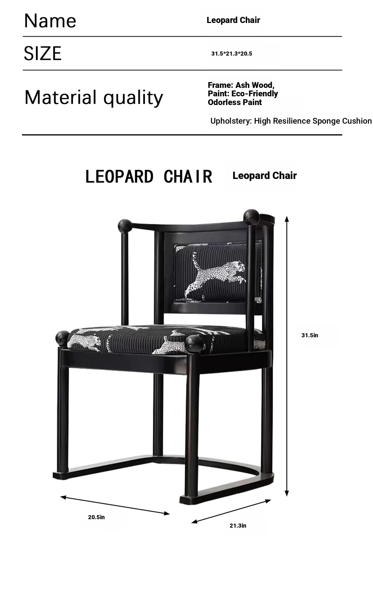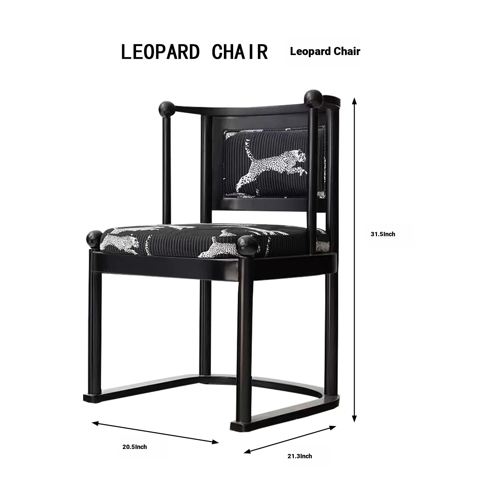 Leopard Designer Solid Wood Dining Chair - French Vintage Armchair for Home Use, Retro Backrest Dining Chair, Perfect for Your Dining Room