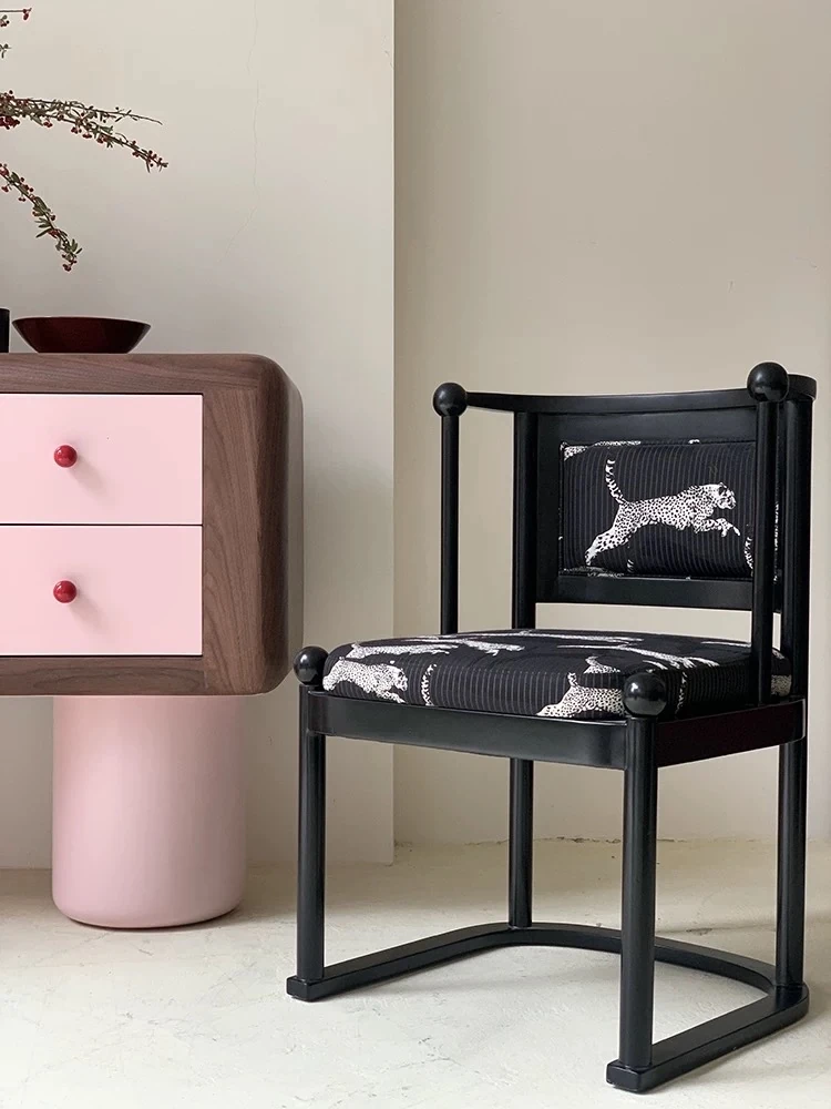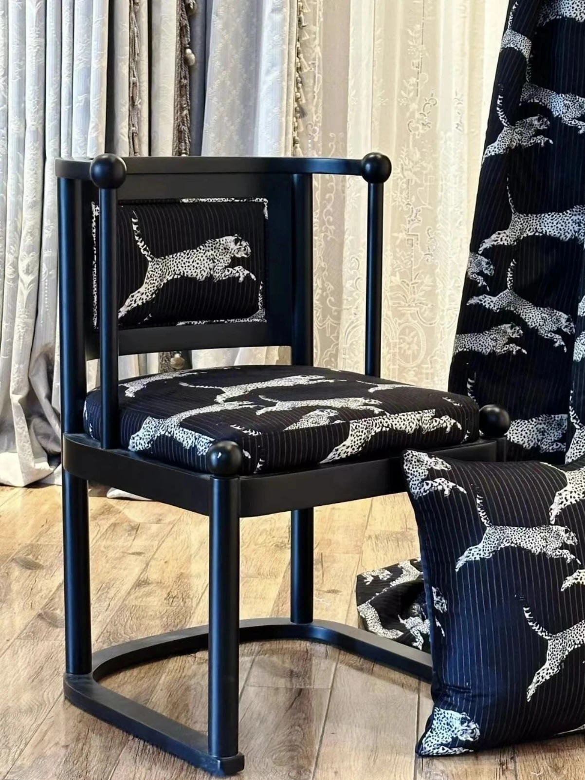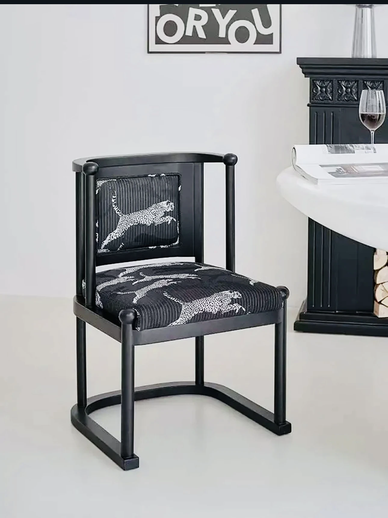 Leopard Designer Solid Wood Dining Chair - French Vintage Armchair for Home Use, Retro Backrest Dining Chair, Perfect for Your Dining Room