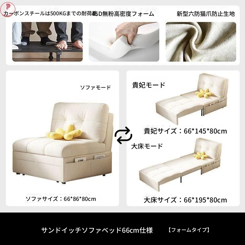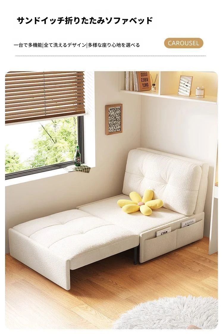 高級折りたたみベッド!クリーム風のシュークリームソファベッド、シングルサイズ、小さな部屋にも最適。多機能で折りたたみ可能、リビングにぴったりなアイテムです!