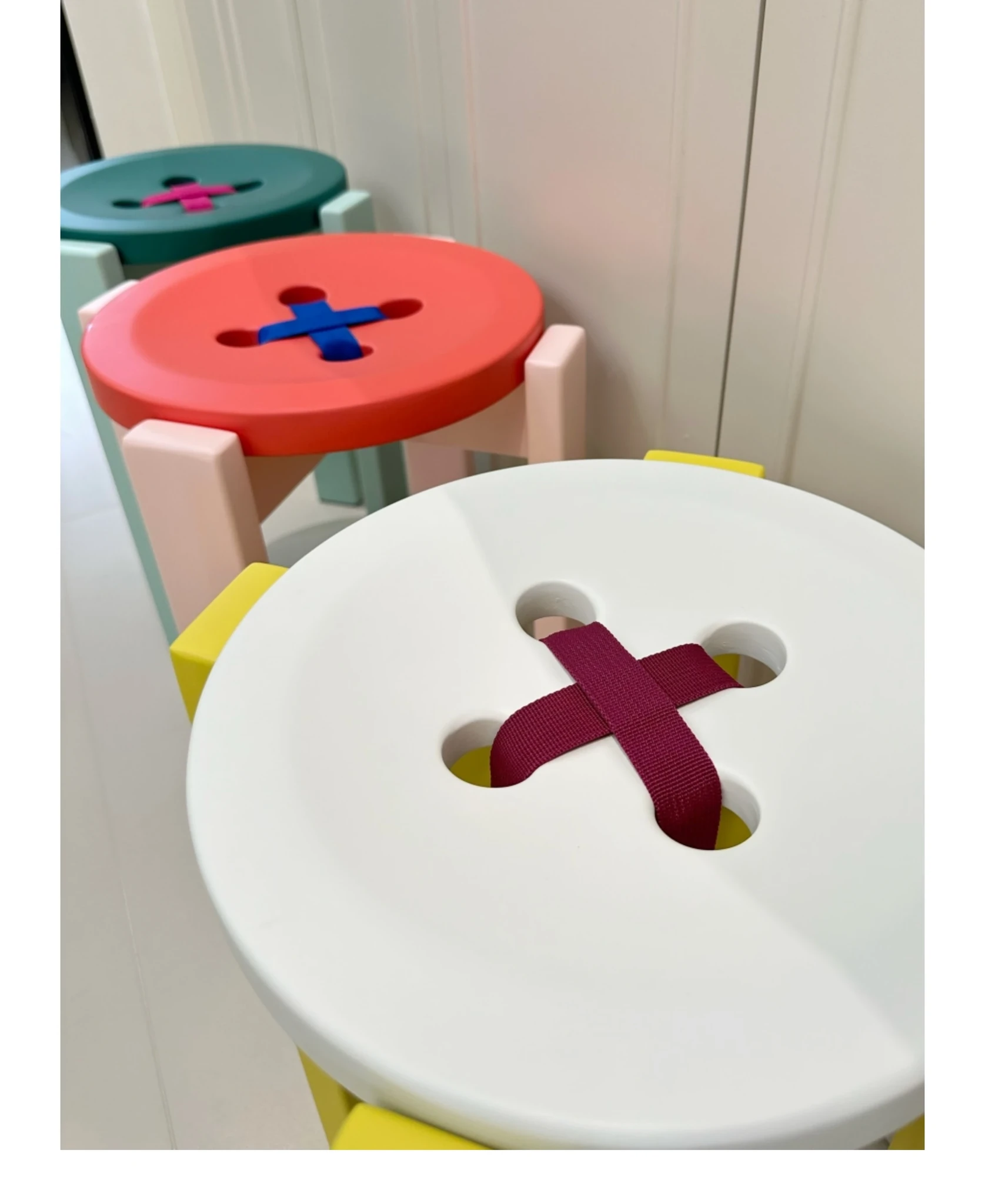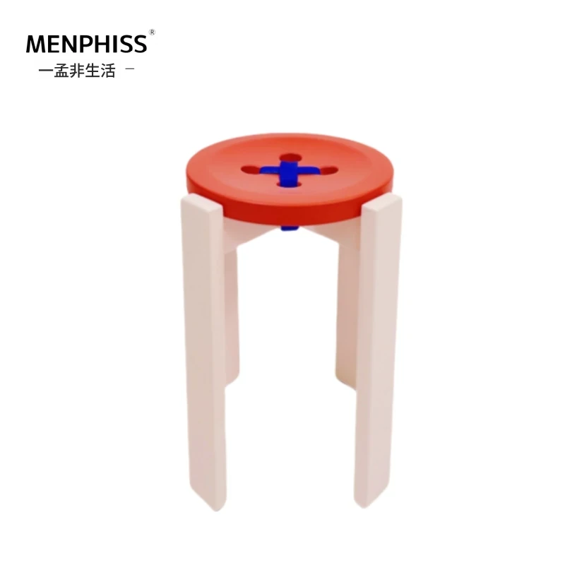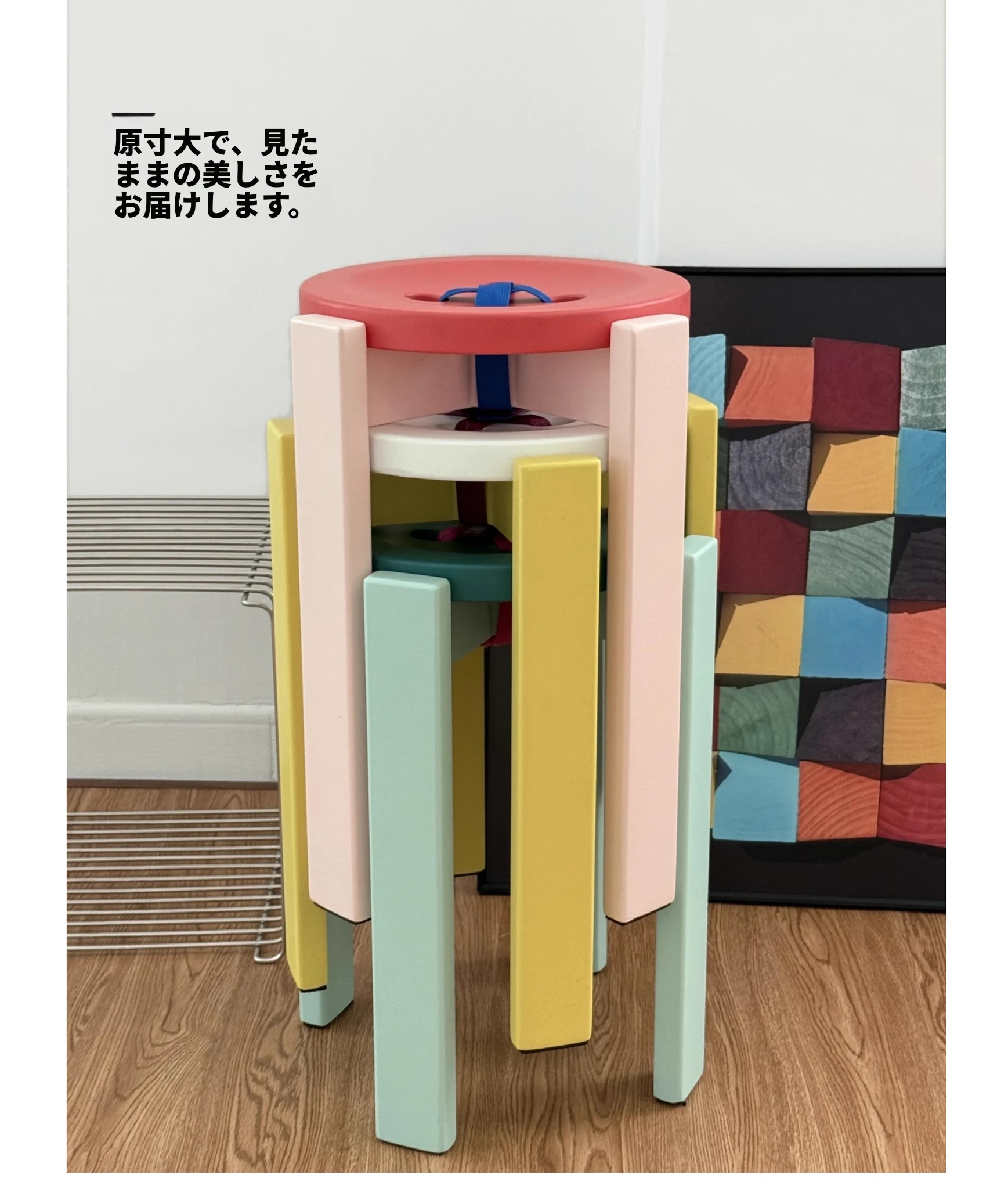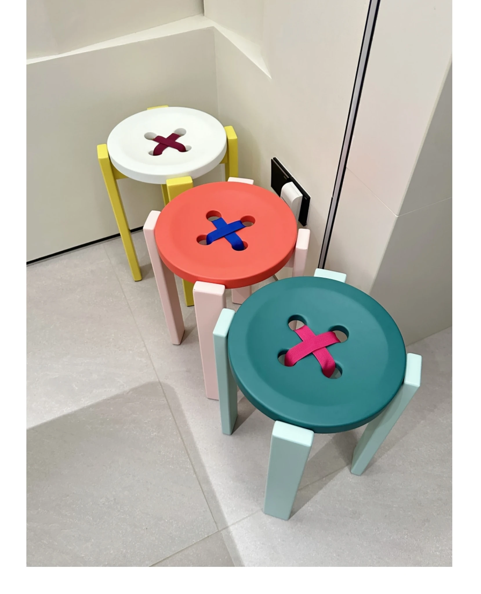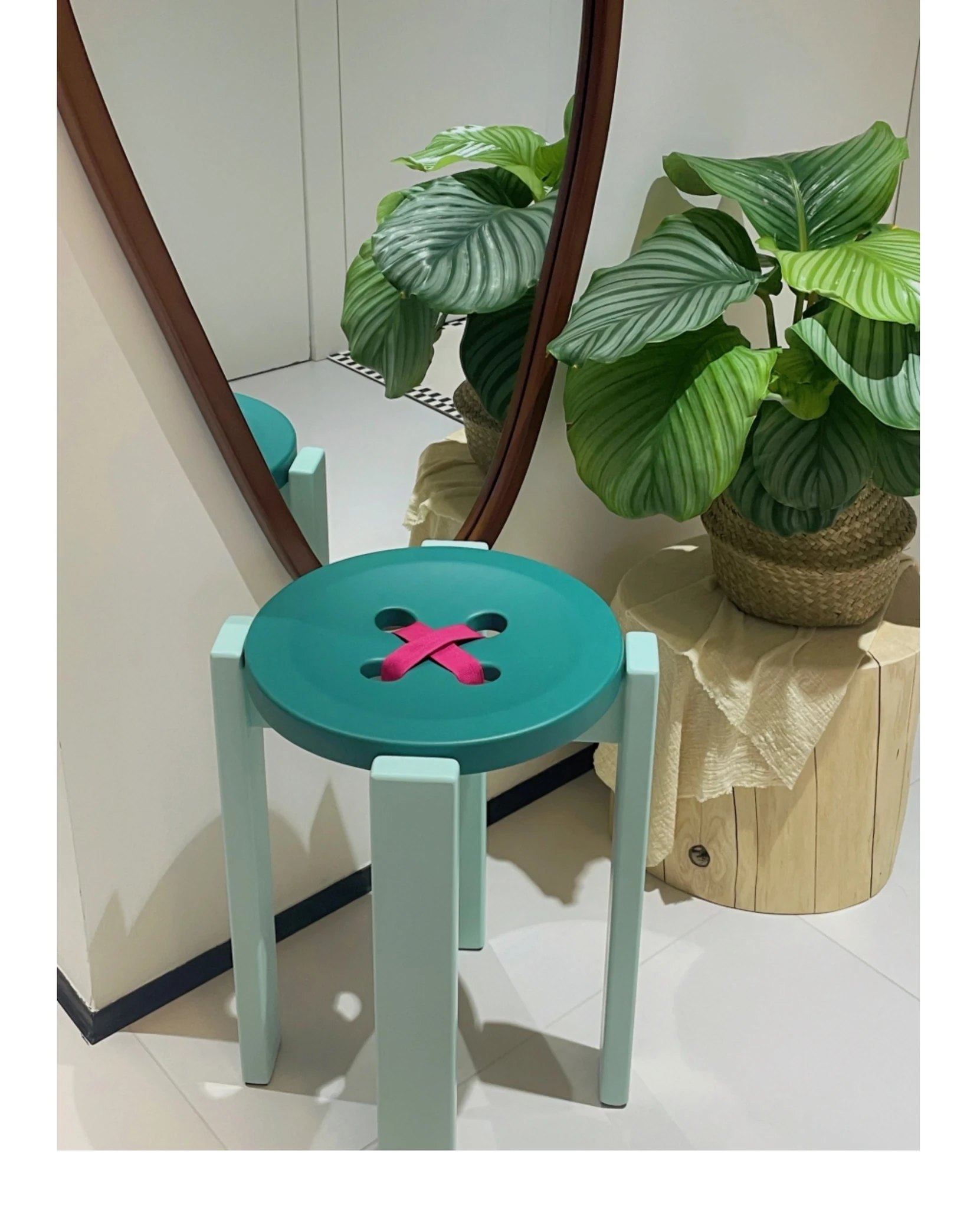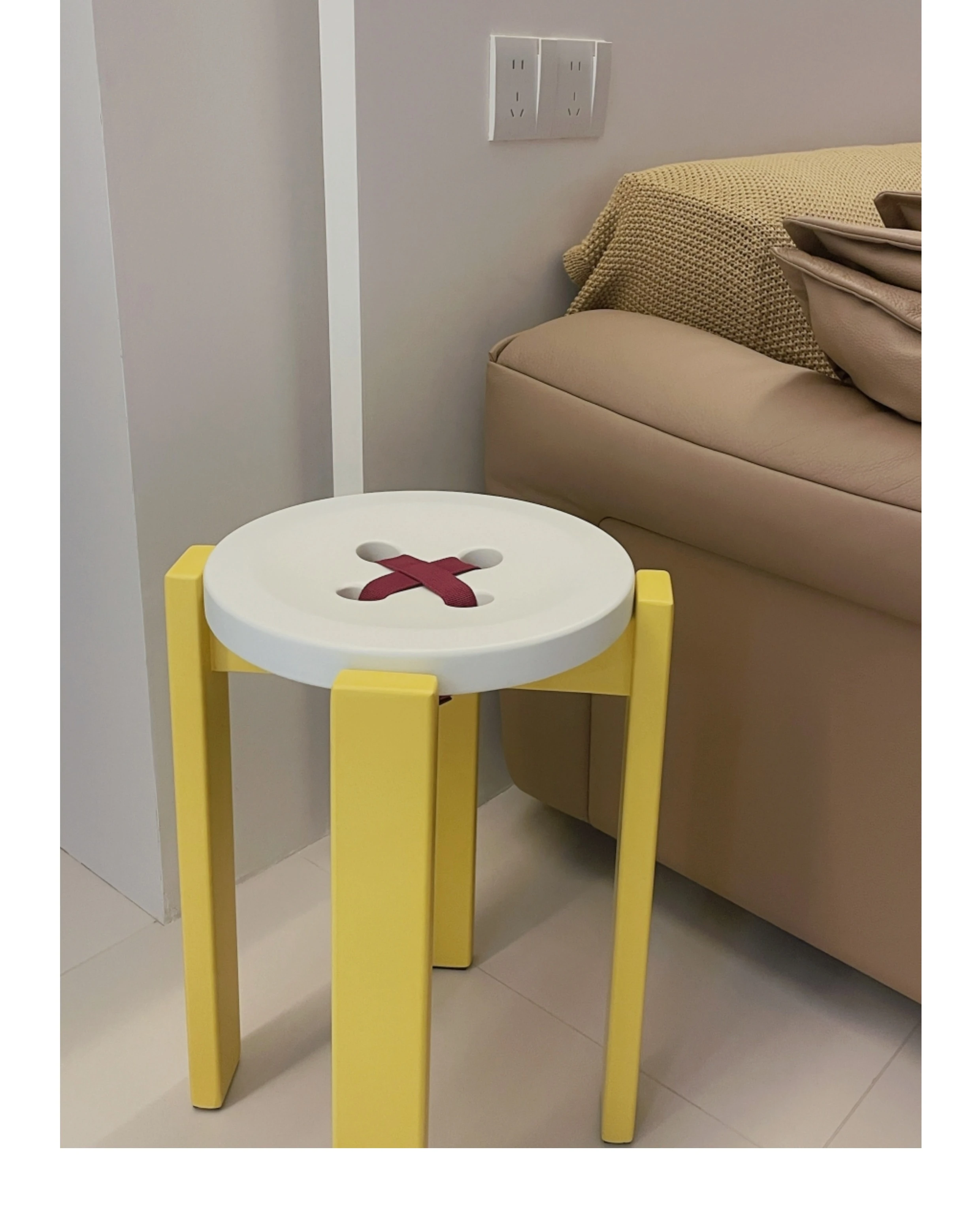 孟非デザインの木製クリエイティブボタンスツール - スタッキング可能な多用途ダイニングチェア!おしゃれで実用的なインテリアアイテム、あなたの生活空間を明るく彩ります。