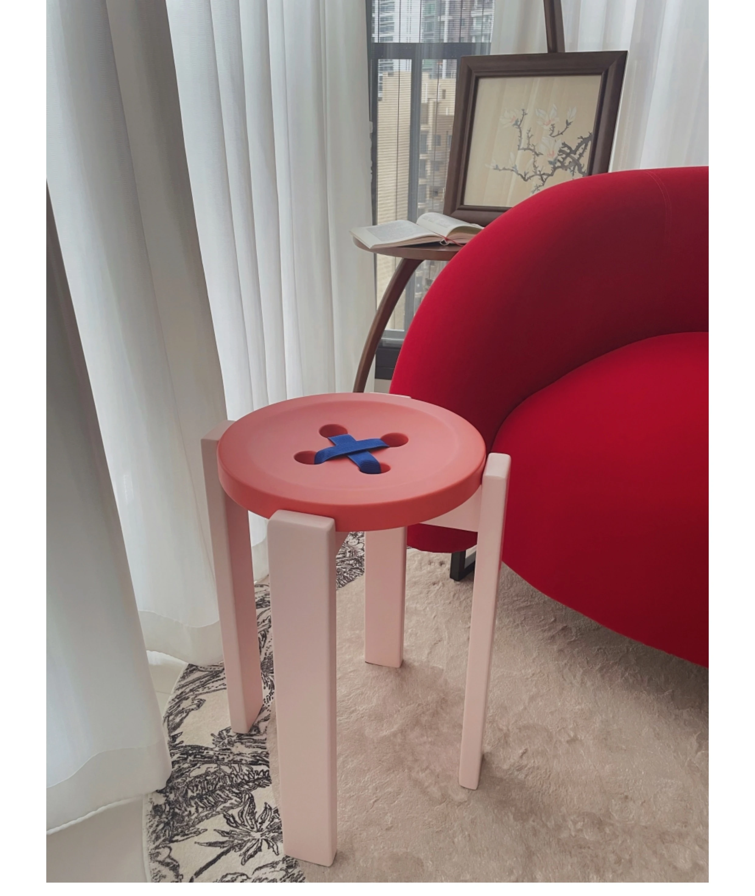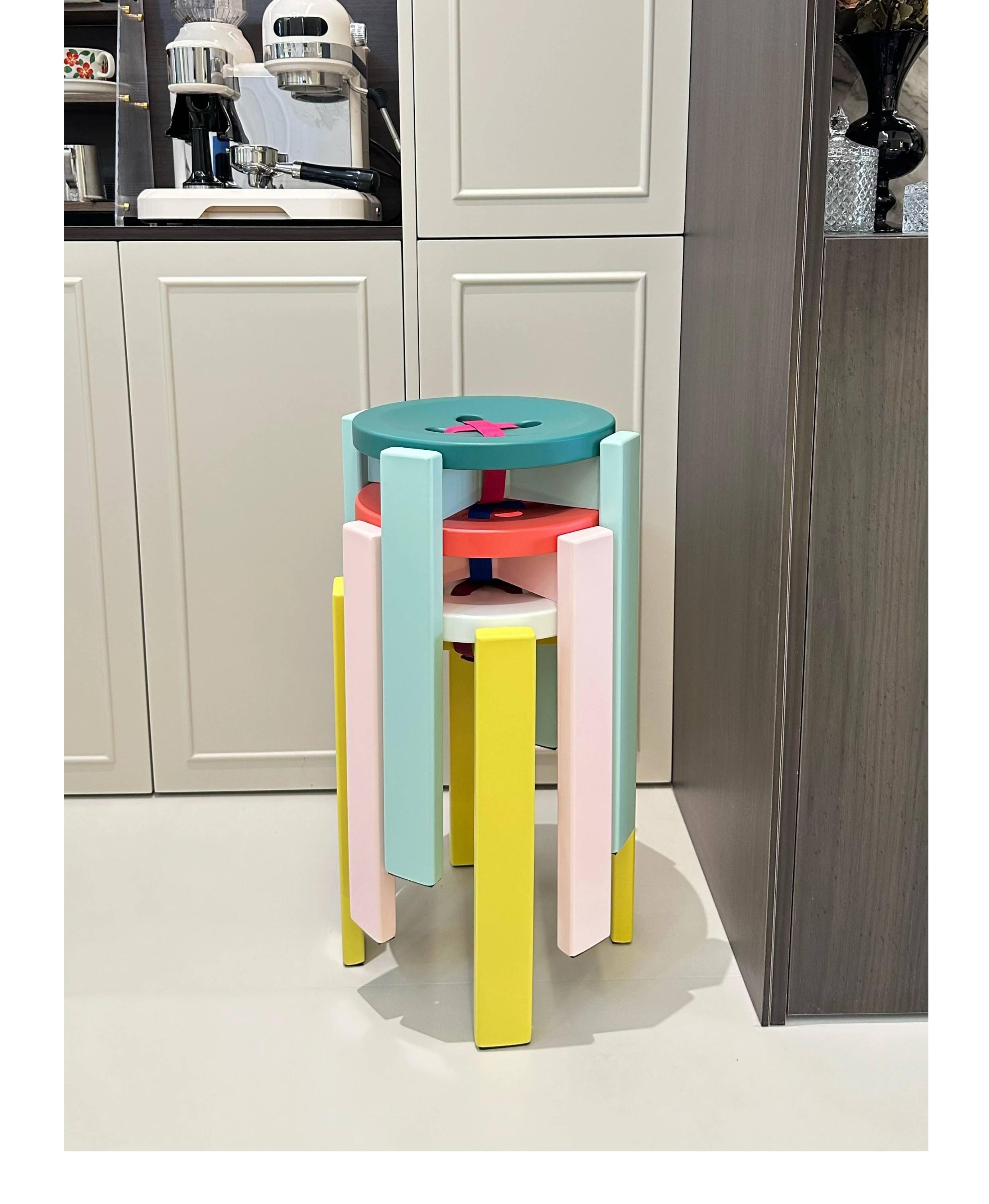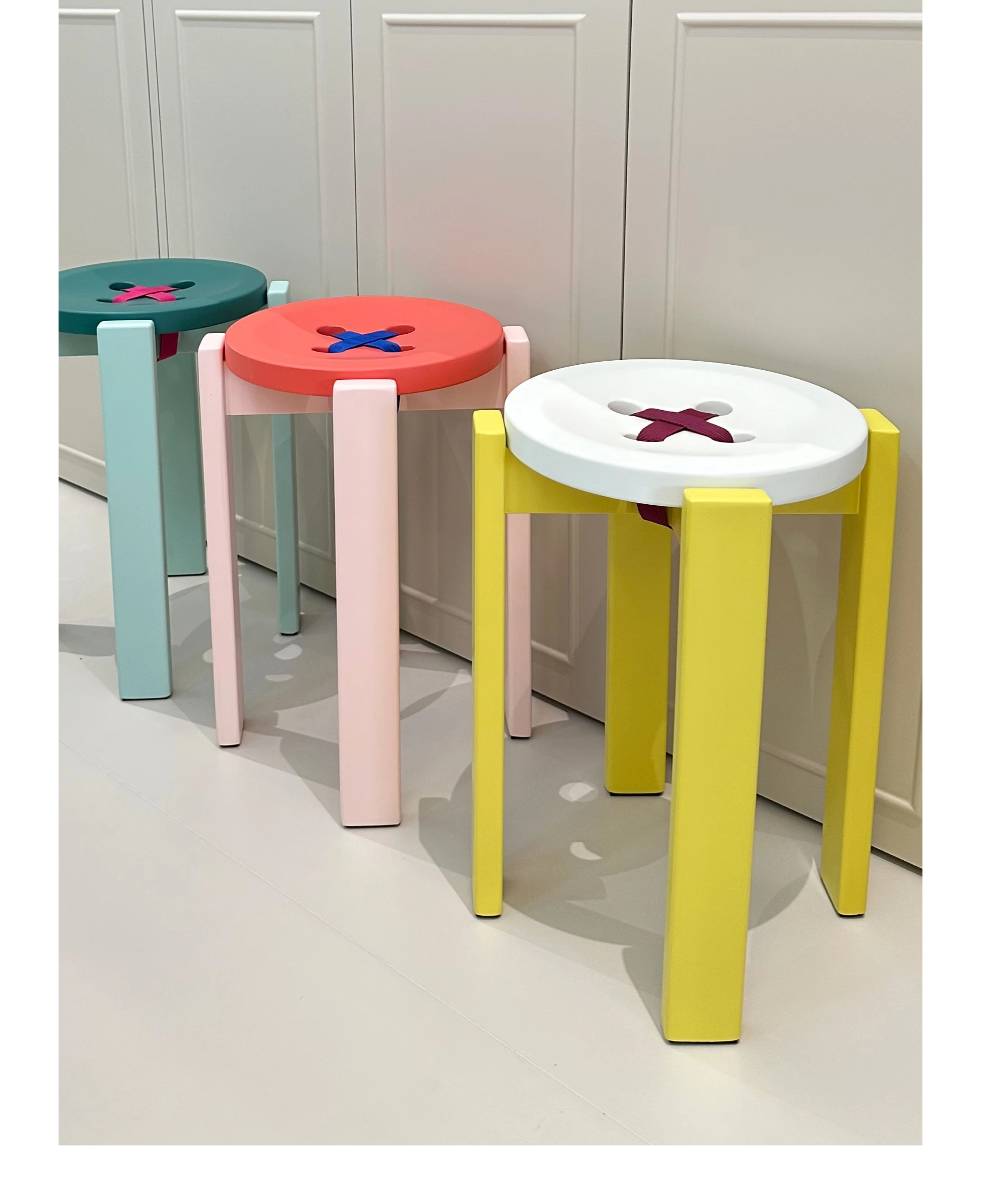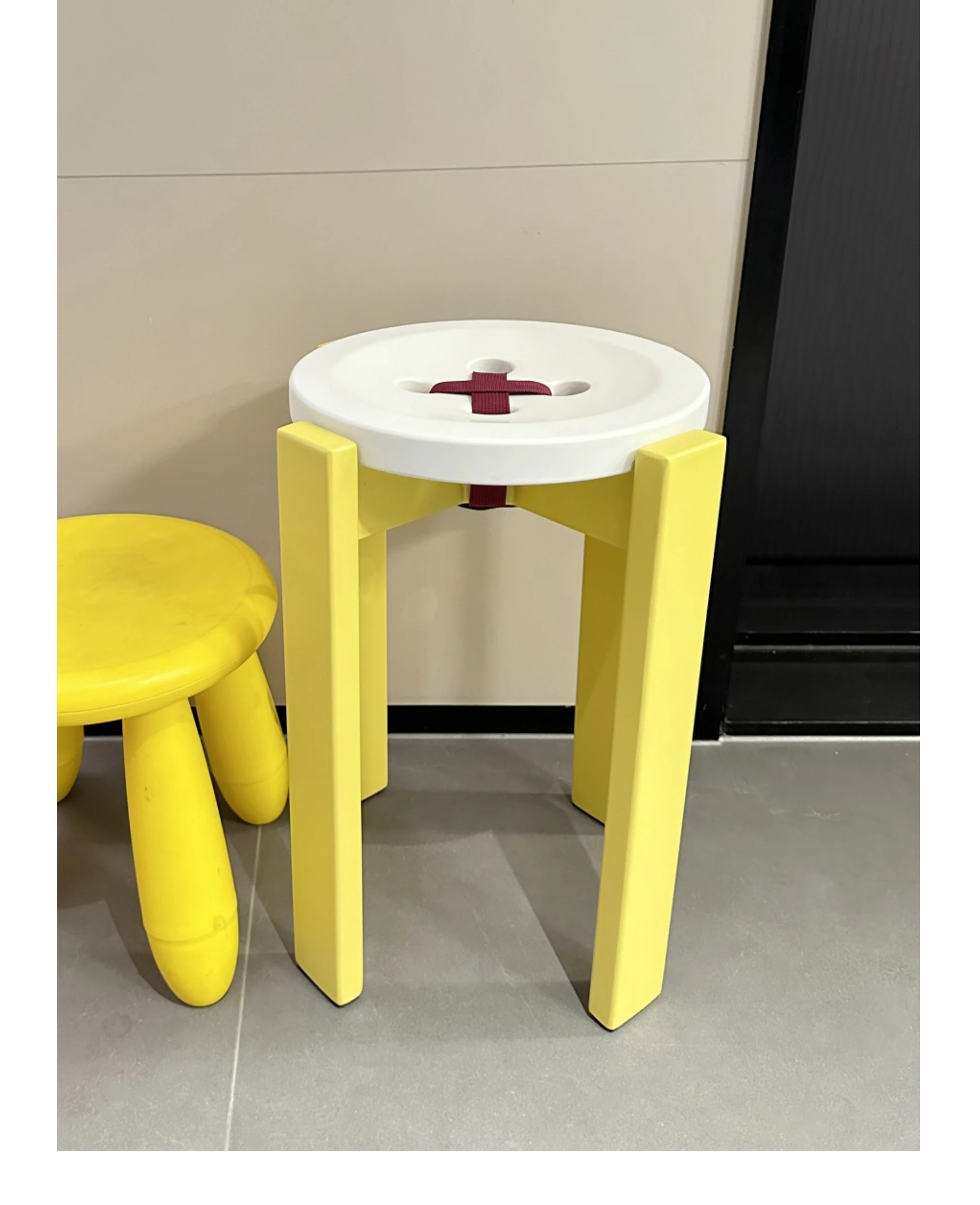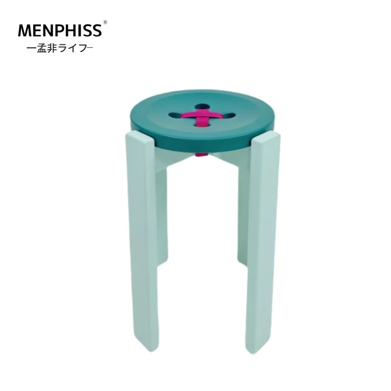 孟非デザインの木製クリエイティブボタンスツール - スタッキング可能な多用途ダイニングチェア!おしゃれで実用的なインテリアアイテム、あなたの生活空間を明るく彩ります。