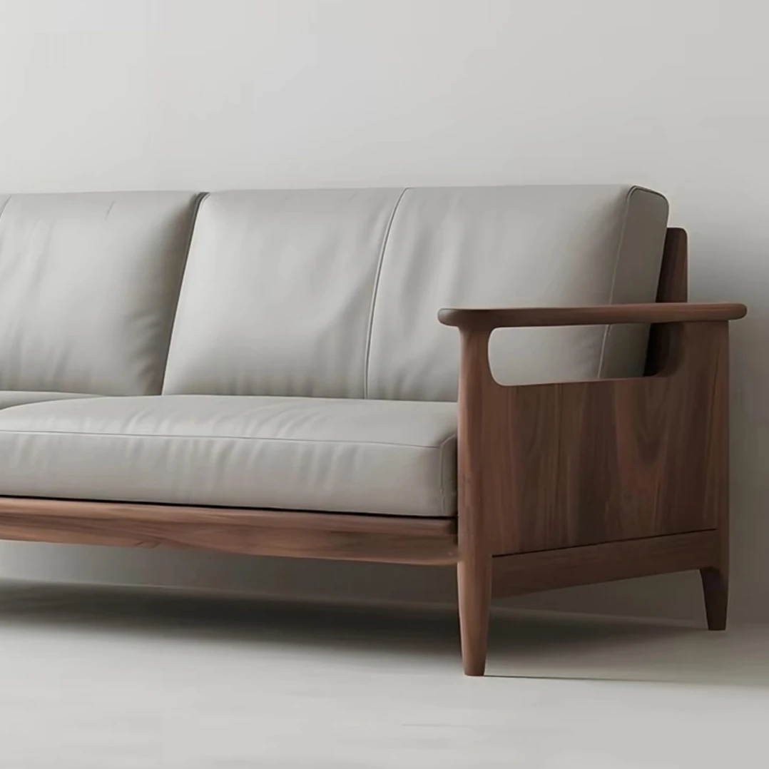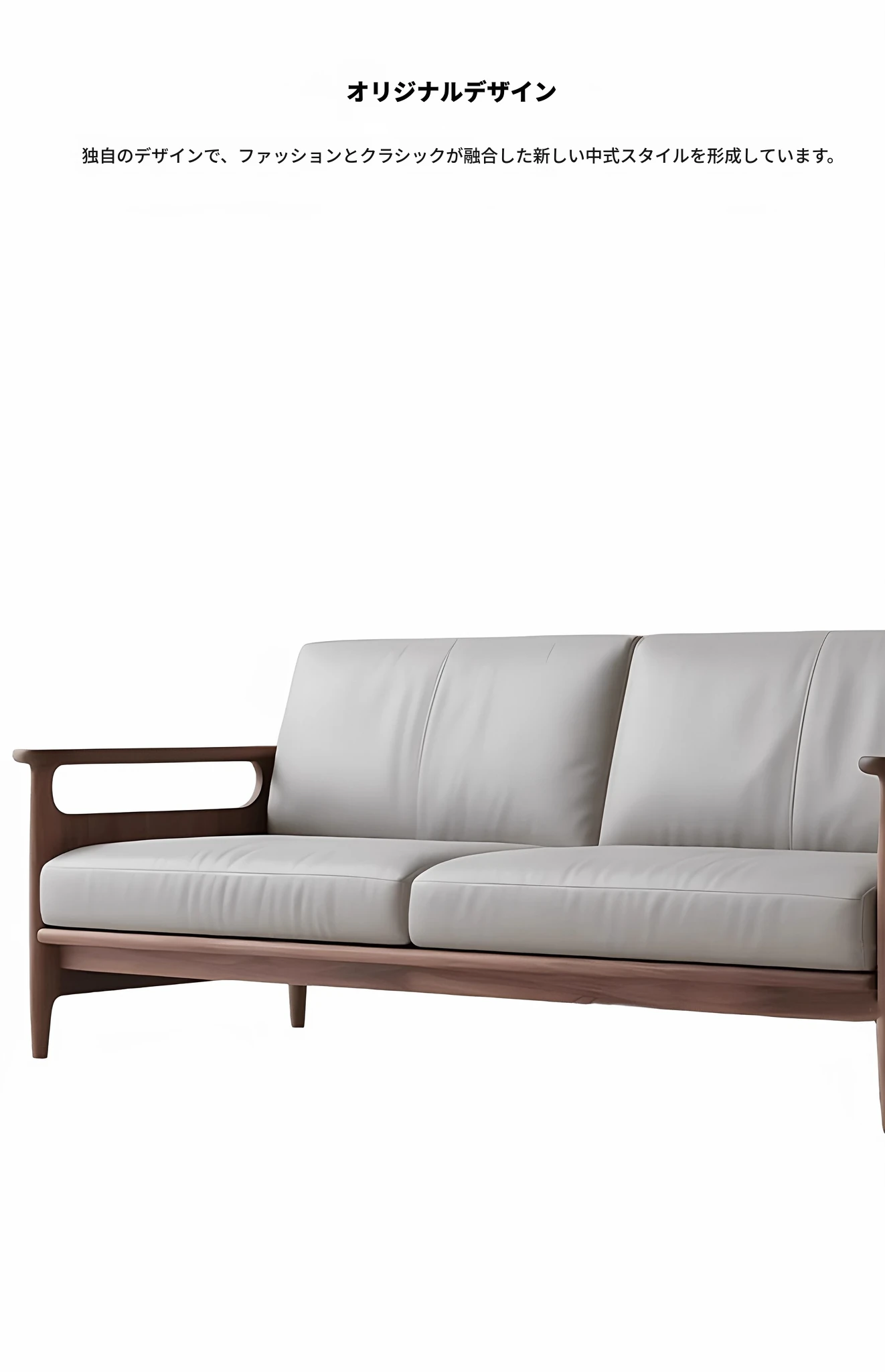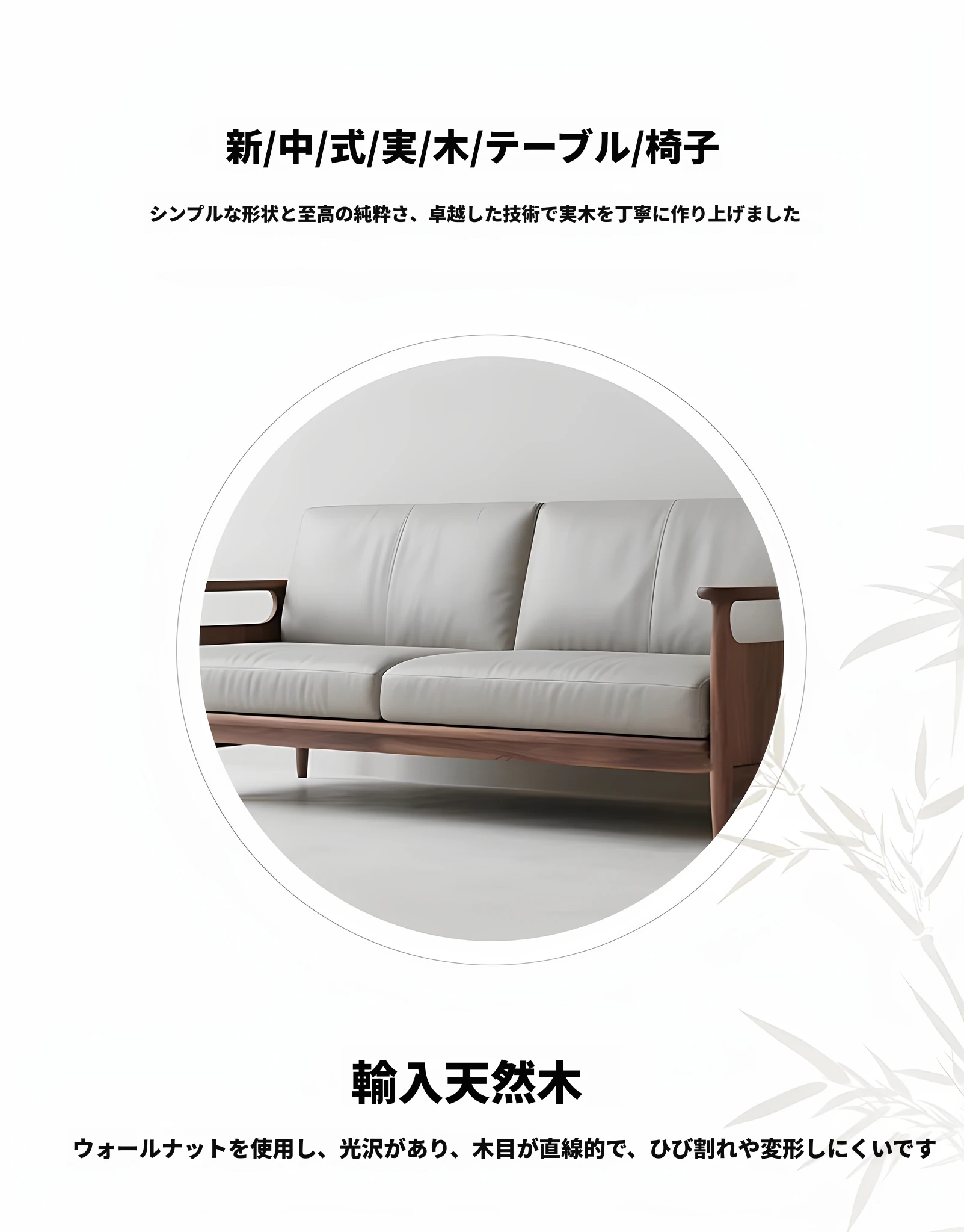 新中式デザインの北米産ブラックウォールナット製、モダンでシンプルな軽奢ソファ。ホワイトアッシュ材を使用した高級リビング家具で、洗練された空間を演出します。